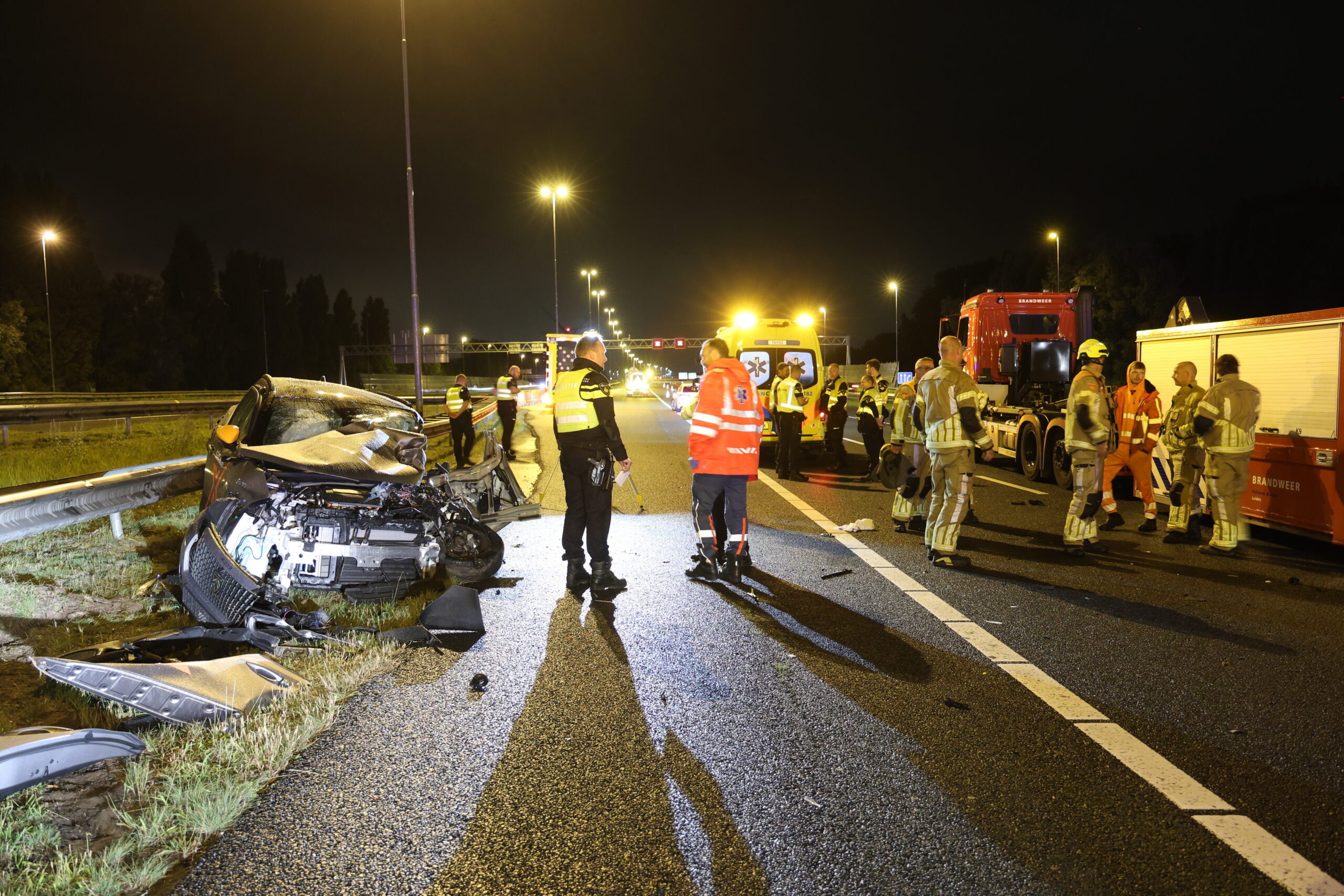 Een automobilist is in de nacht van donderdag op vrijdag met een enorme klap op een pijlwagen gebotst. De bestuurder raakte daarbij zwaargewond. Het slachtoffer is door de brandweer uit het compleet vernielde voertuig geknipt en is met spoed naar het ziekenhuis overgebracht. De botsing vond even na 2.20 uur ’s nacht plaats op de A4 bij Leiden.