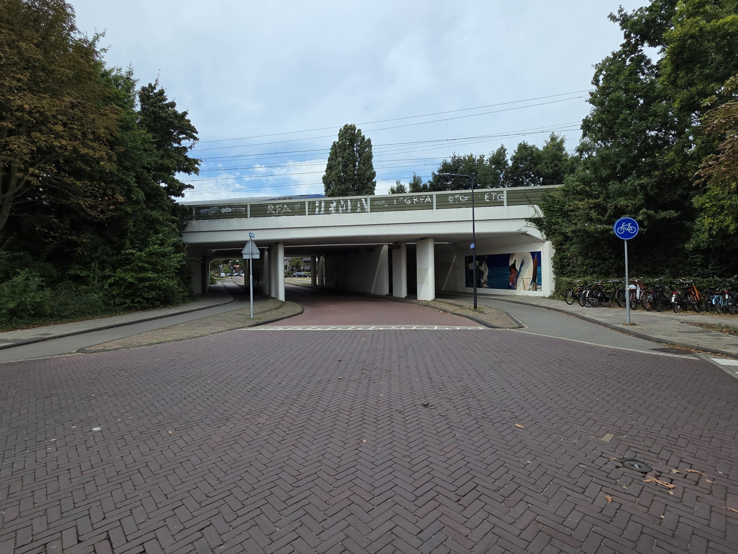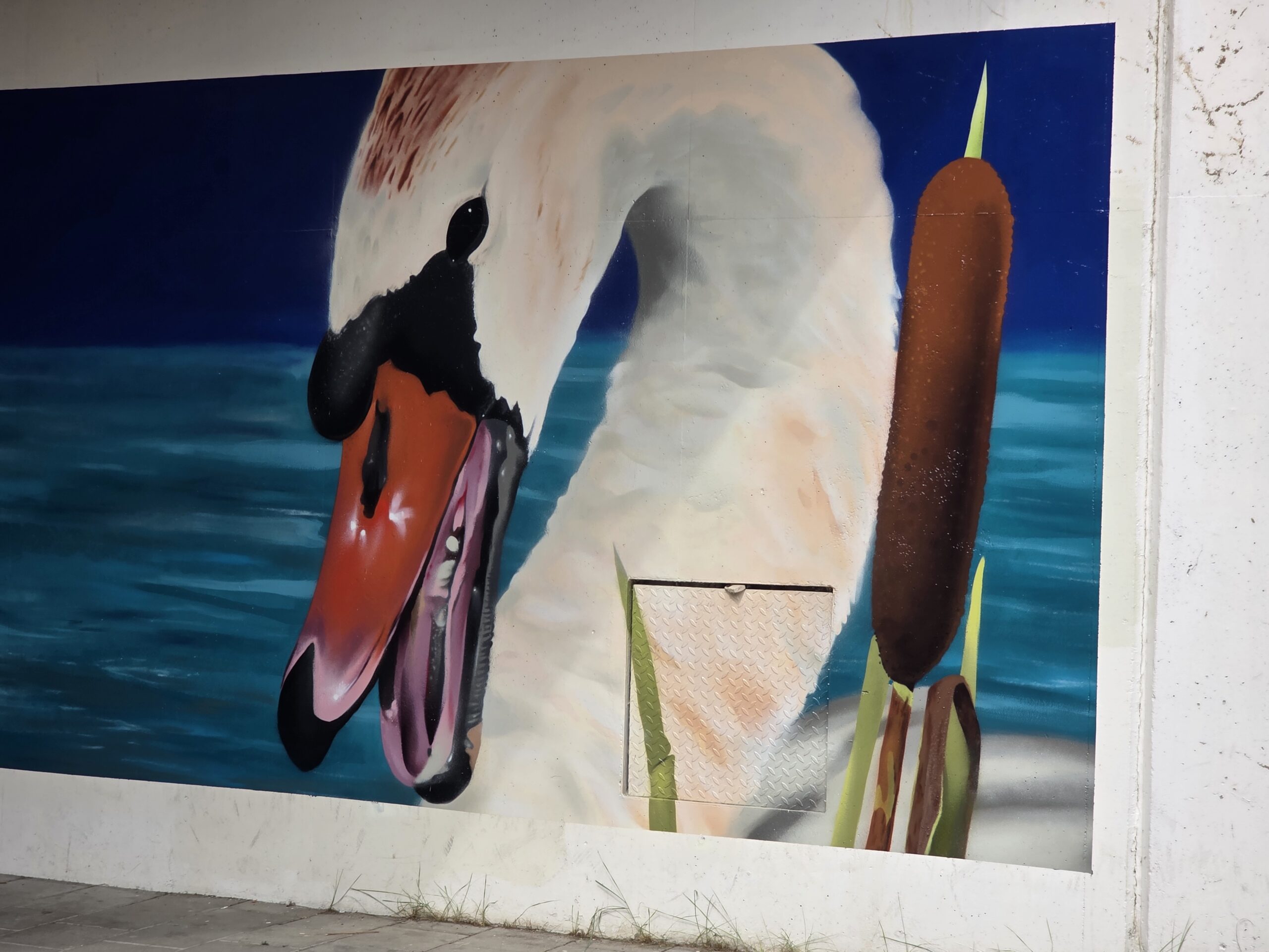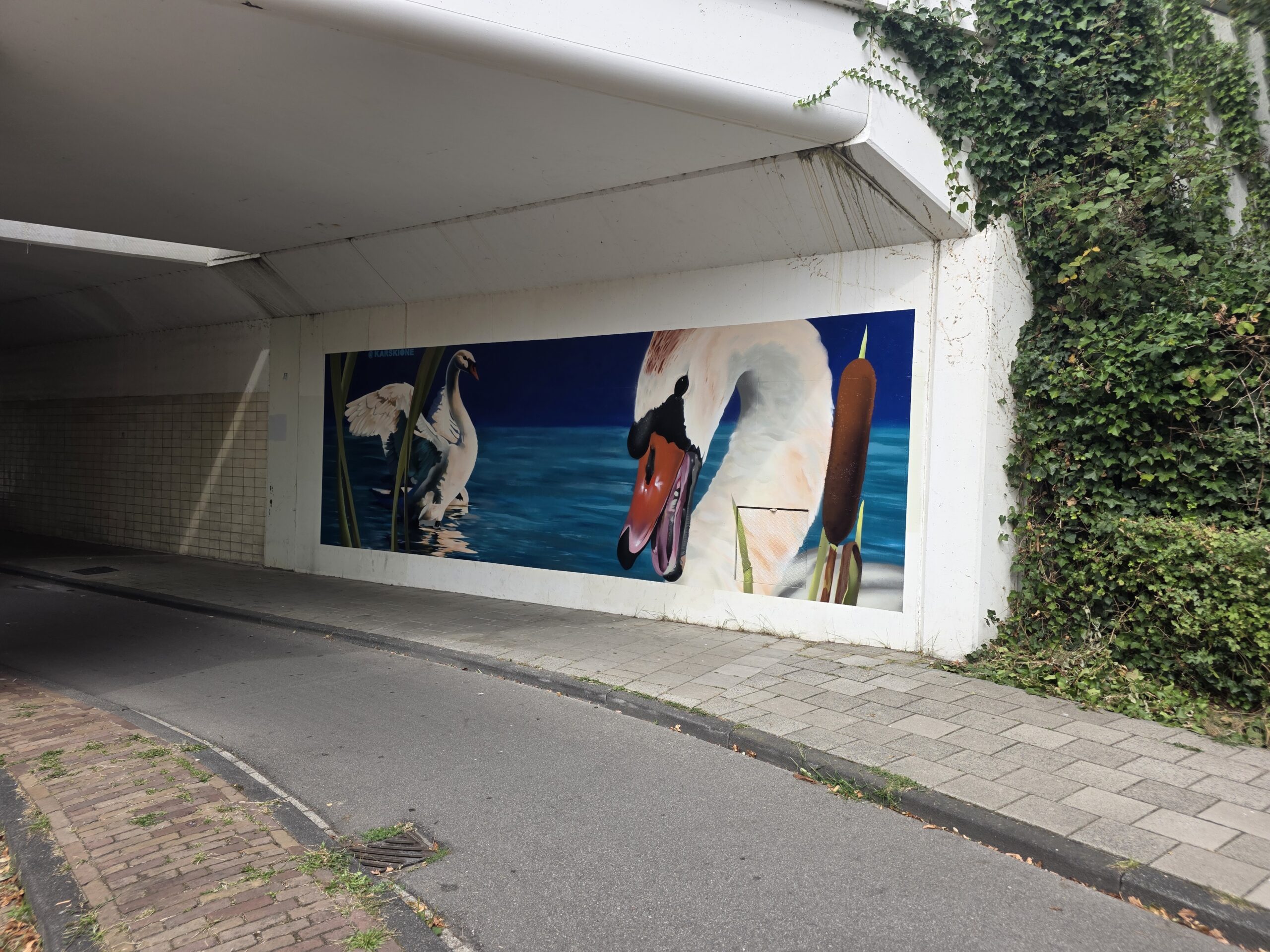 Karski, de ‘artiestennaam’ van straatkunstenaar Roy Valk, heeft onder het treinviaduct bij de Lage Morsweg een muurschildering aangebracht van twee zwanen.
