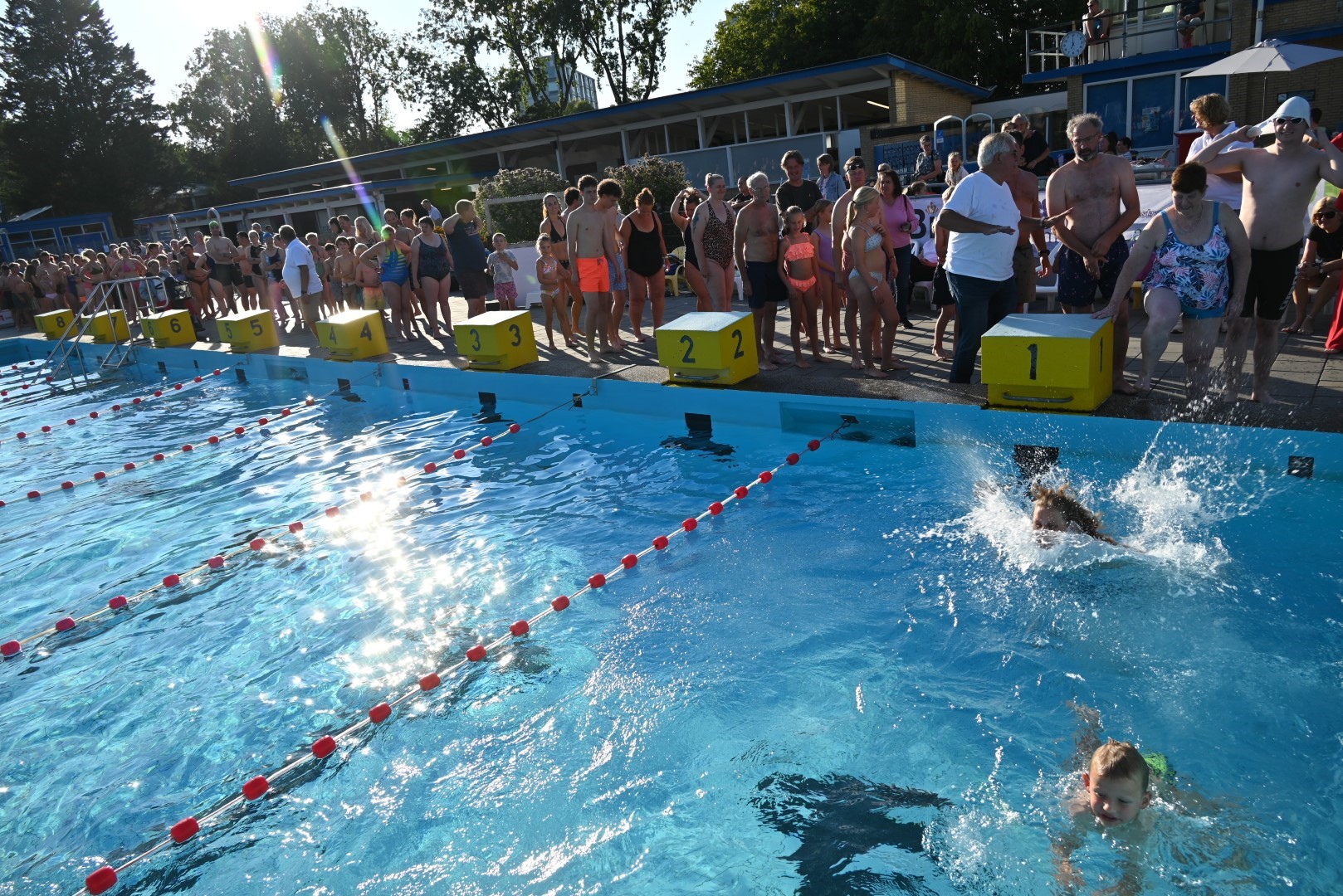 Vrijdagavond wordt de zwemvierdaagse afgesloten met het eerste Leids Kampioenschap Bommetje. Iedereen met een zwemdiploma – jong of oud – mag meedoen, het liefst in een opvallende en flamboyante zwemoutfit. Van klassieke bommetjes tot creatieve sprongen: alles mag. Hoe origineler, hoe beter. Een deskundige jury beoordeelt de sprongen op hoogte, splashfactor en originaliteit. De winnaar gaat naar huis met een unieke trofee en natuurlijk de eeuwige roem!