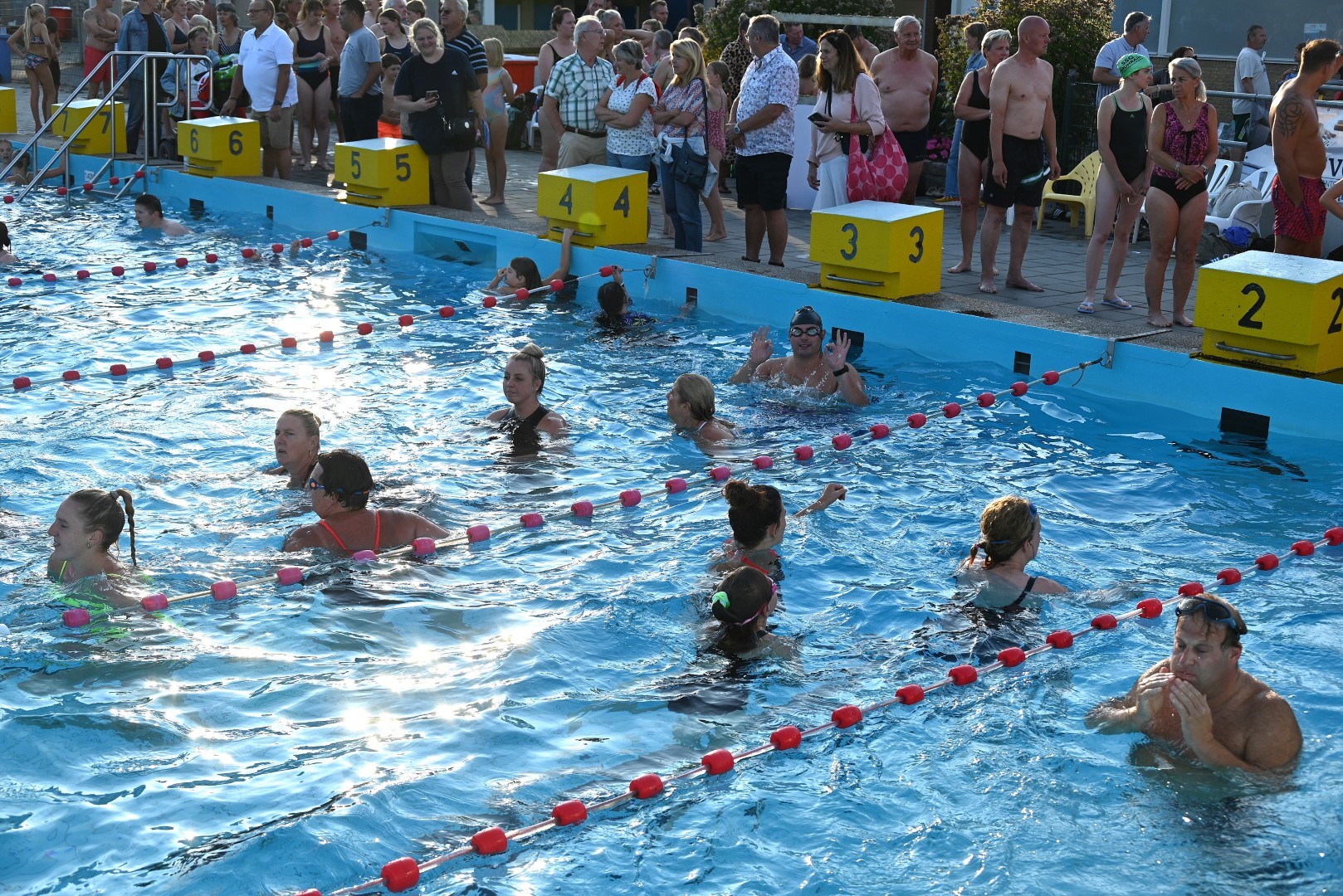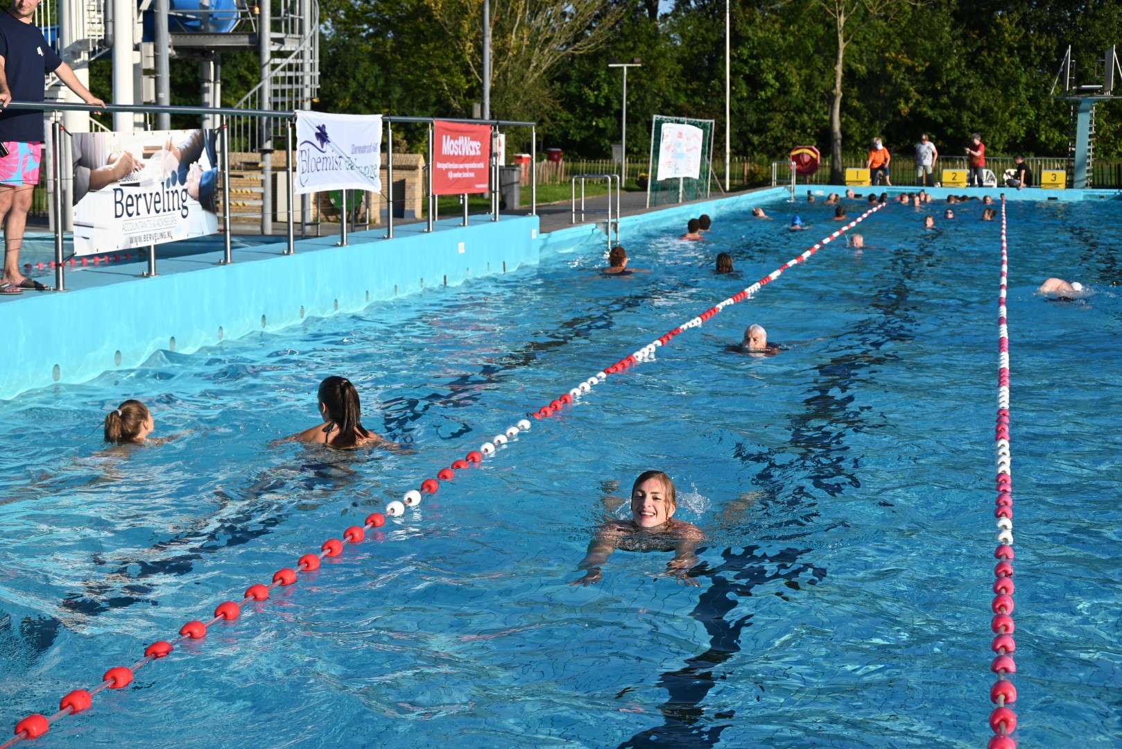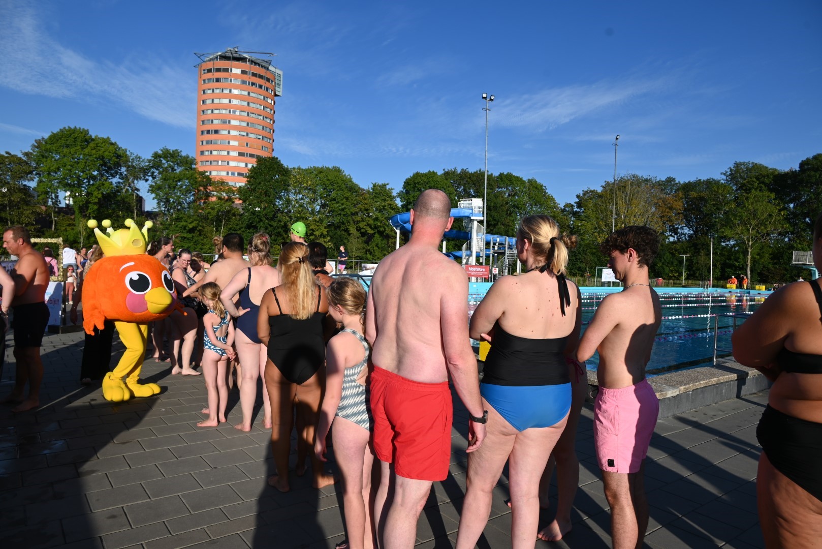 Nadat sportwethouder Wietske Veltman het startsein had gegeven, sprongen of doken de honderden deelnemers het water in om tien baantjes te zwemmen. Elke avond wordt er vijfhonderd meter gezwommen, zodat na vier avonden iedereen twee kilometer gezwommen heeft. De zwemvierdaagse telt bewust vijf avonden, zodat iedereen eventueel een avond over kan slaan of zelfs tweeënhalve kilometer kan zwemmen.