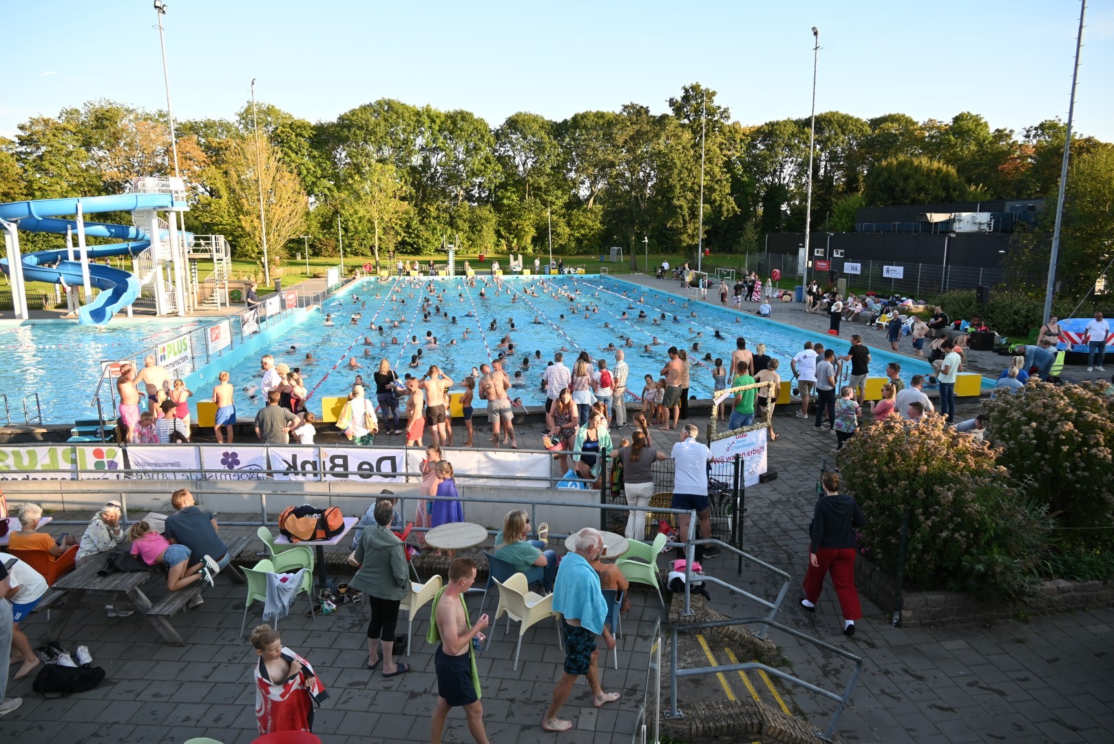 Onder ideale weersomstandigheden begonnen maandagavond 650 deelnemers aan de 49e Leidse zwemvierdaagse, georganiseerd door de Stichting Sport in Beeld. Vrijdagavond is de laatste avond en dat betekent dat er ook dinsdagavond nog begonnen worden aan de zwemvierdaagse.