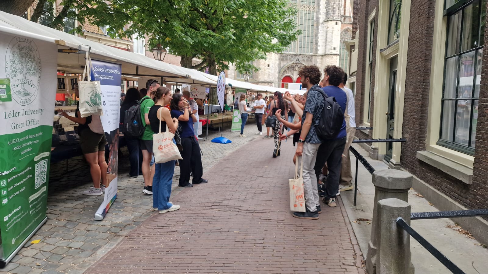 Ruim 1.300 buitenlandse studenten verkennen deze week de straten van Leiden om de stad én Nederland te leren kennen. Om ze daarbij te helpen, organiseerde de internationale introductieweek OWL (Orientation Week Leiden) woensdag een informatiemarkt aan de Hooglandse Kerkgracht.
