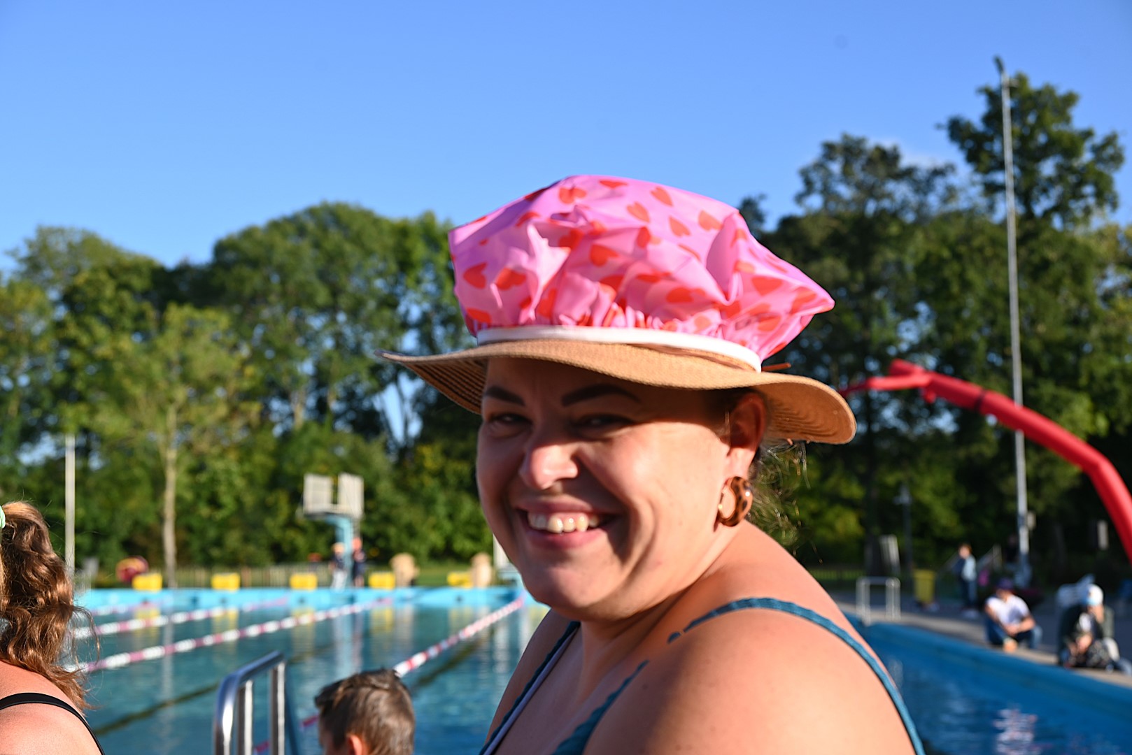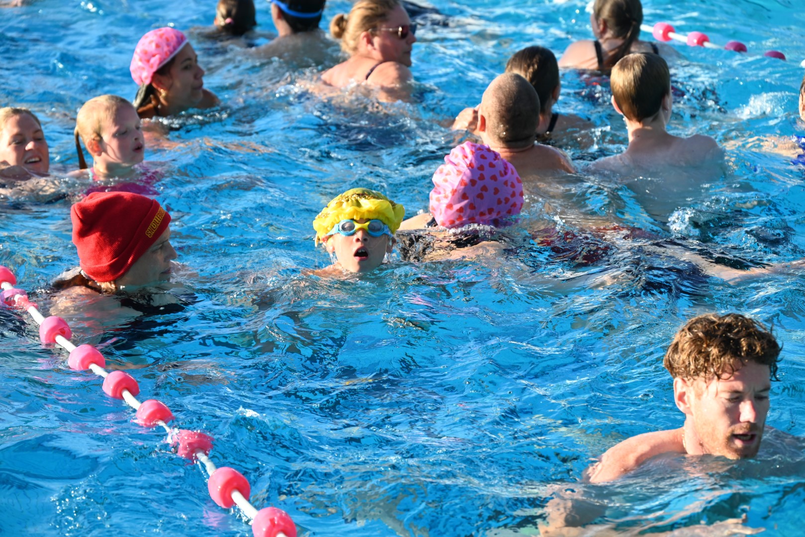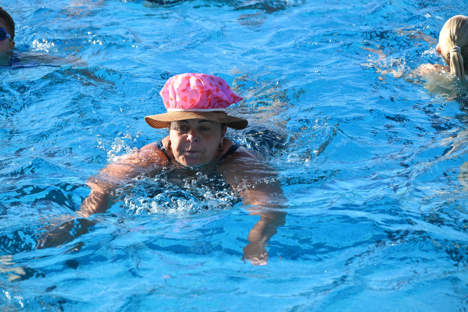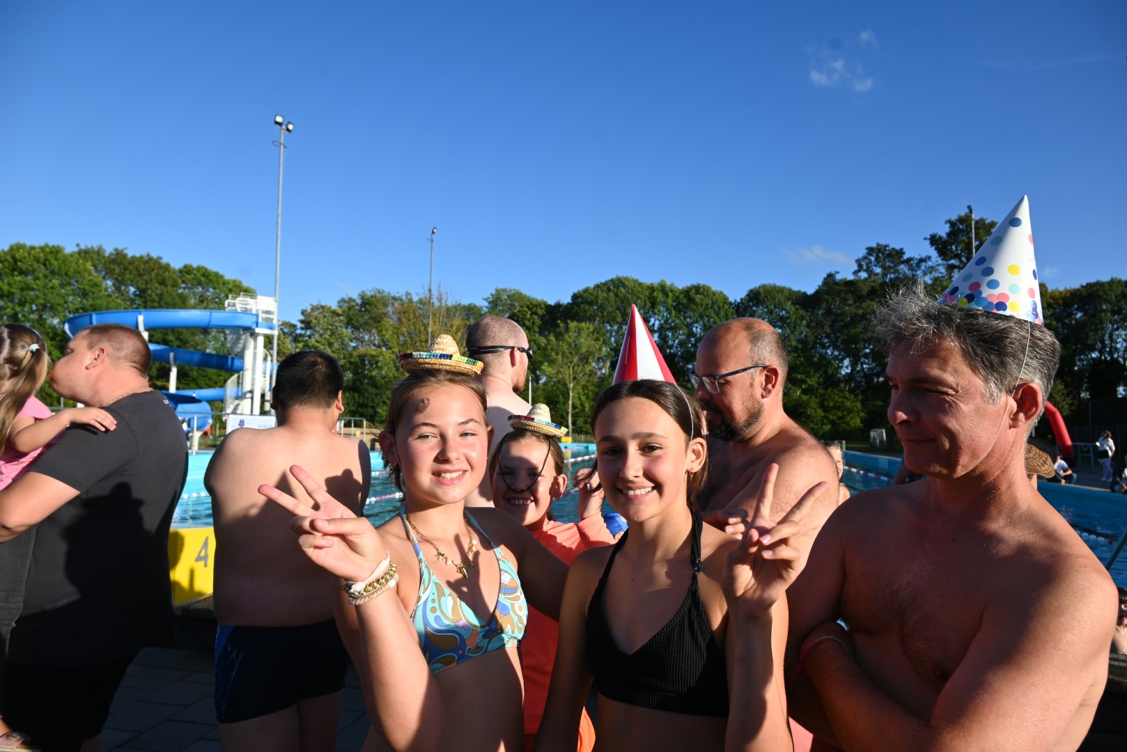 Namens de Stichting Sport in Beeld is Carola de Vogel verantwoordelijk voor de Zwemvierdaagse. Eerder deze week was ze al erg blij met het aantal deelnemers. Door omstandigheden kon ze er donderdagavond niet bij zijn, maar toen ze hoorde hoeveel deelnemers er te gekke mutsen, pruiken en petten op hadden gezet kon haar week niet meer kapot.