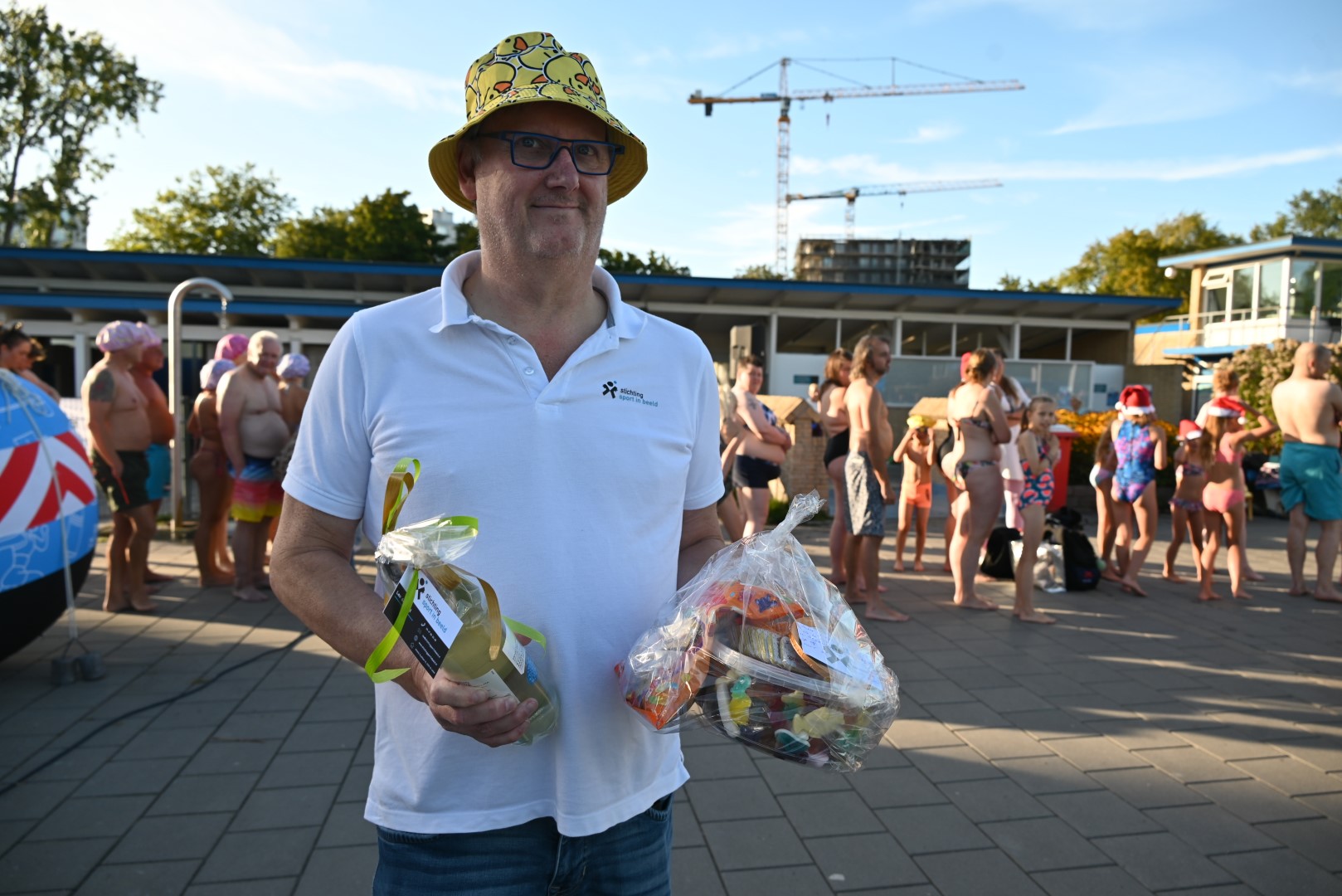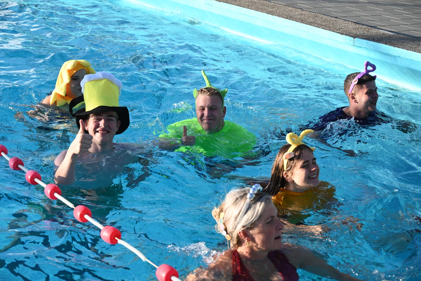 Veel deelnemers hadden goed hun best gedaan er zo origineel mogelijk uit te zien. Naast mensen met gekke gekleurde badmutsen, zwommen er deelnemers met pruiken, bierpullen, feesthoedjes en zelfs bontmutsen op. Bij de kinderen werd de krokodil winnaar, bij de volwassenen gingen de nonnen met de prijs aan de haal. De winnaars kunnen vrijdag hun prijs afhalen bij de organisatie.