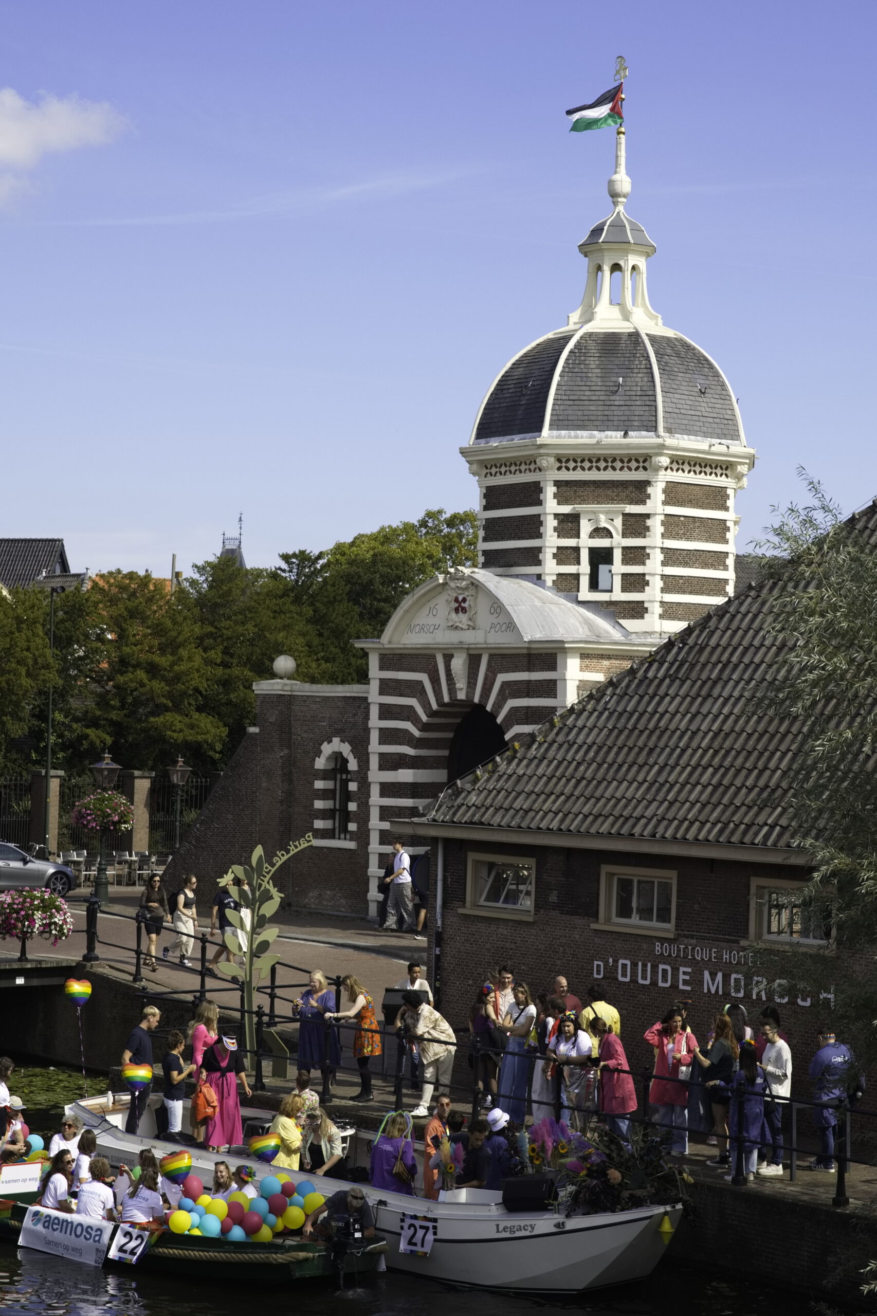 De vlag van Palestina hangt in top bij de Leidse Morspoort. Hij is daar opgehangen door het ‘Kunst-activisme collectief regio Leiden’ dat eerder een soortgelijke vlagactie uitvoerde bij de Zijlpoort. Die vlag werd binnen enkele dagen op last van de gemeente Leiden door de brandweer weggehaald.