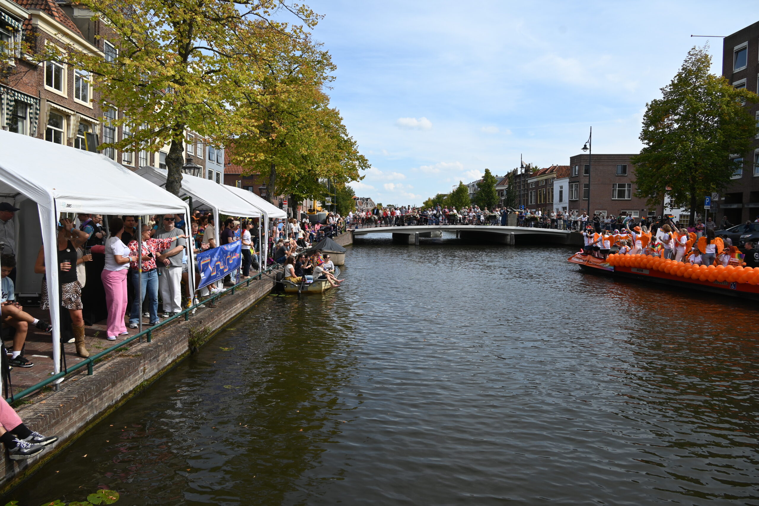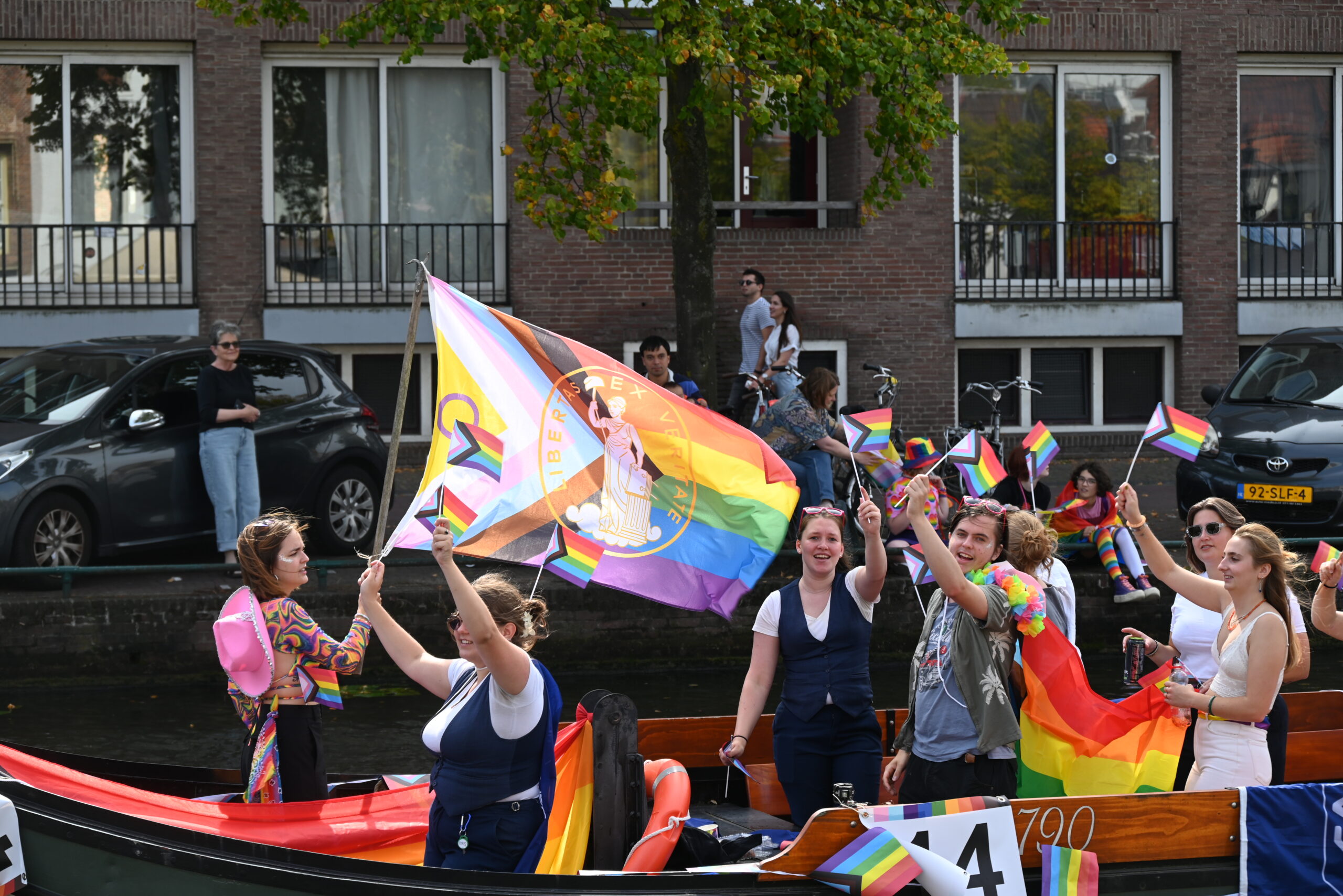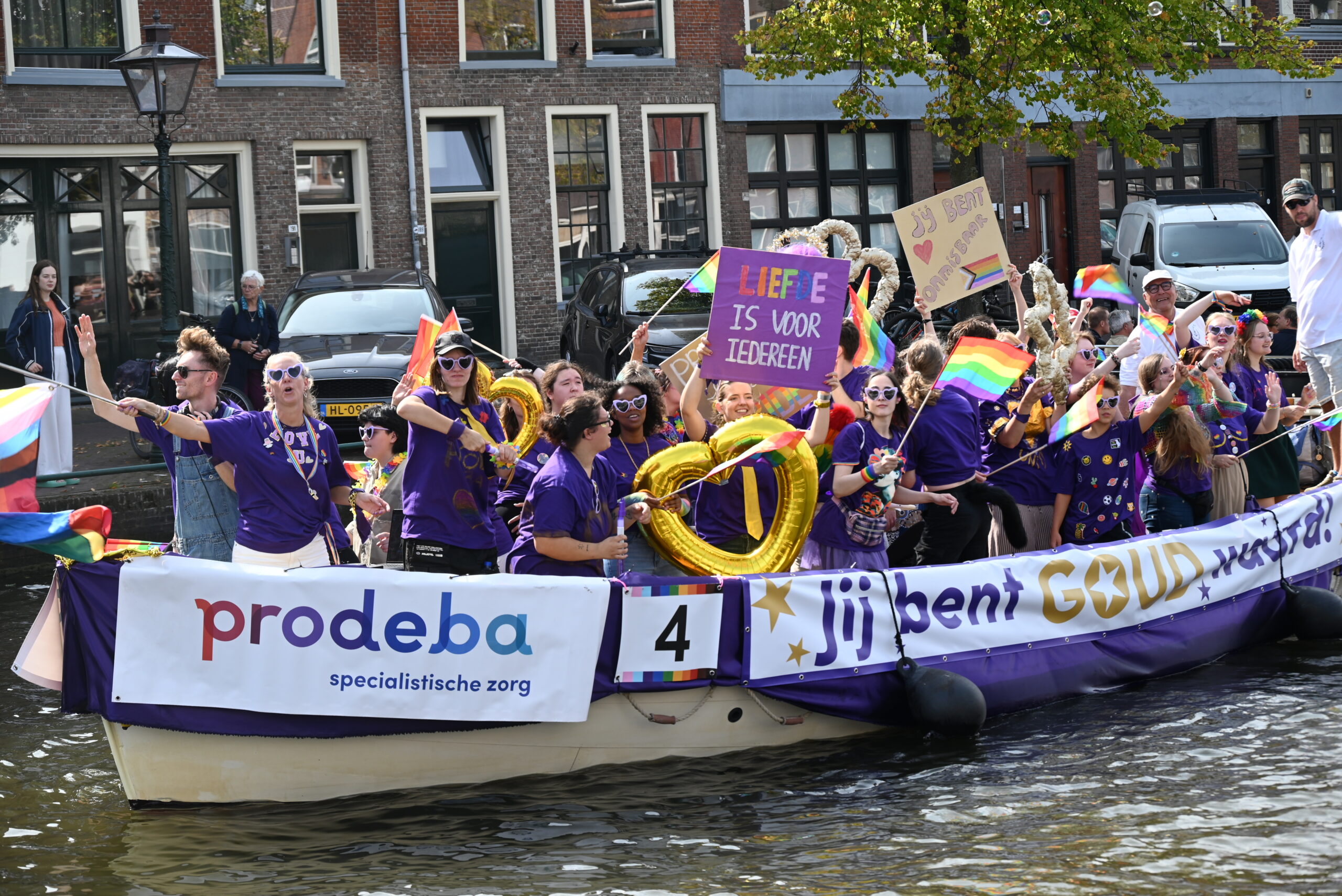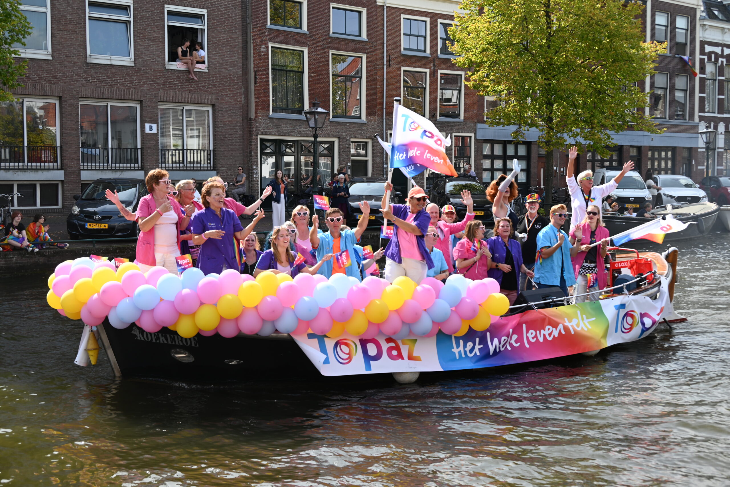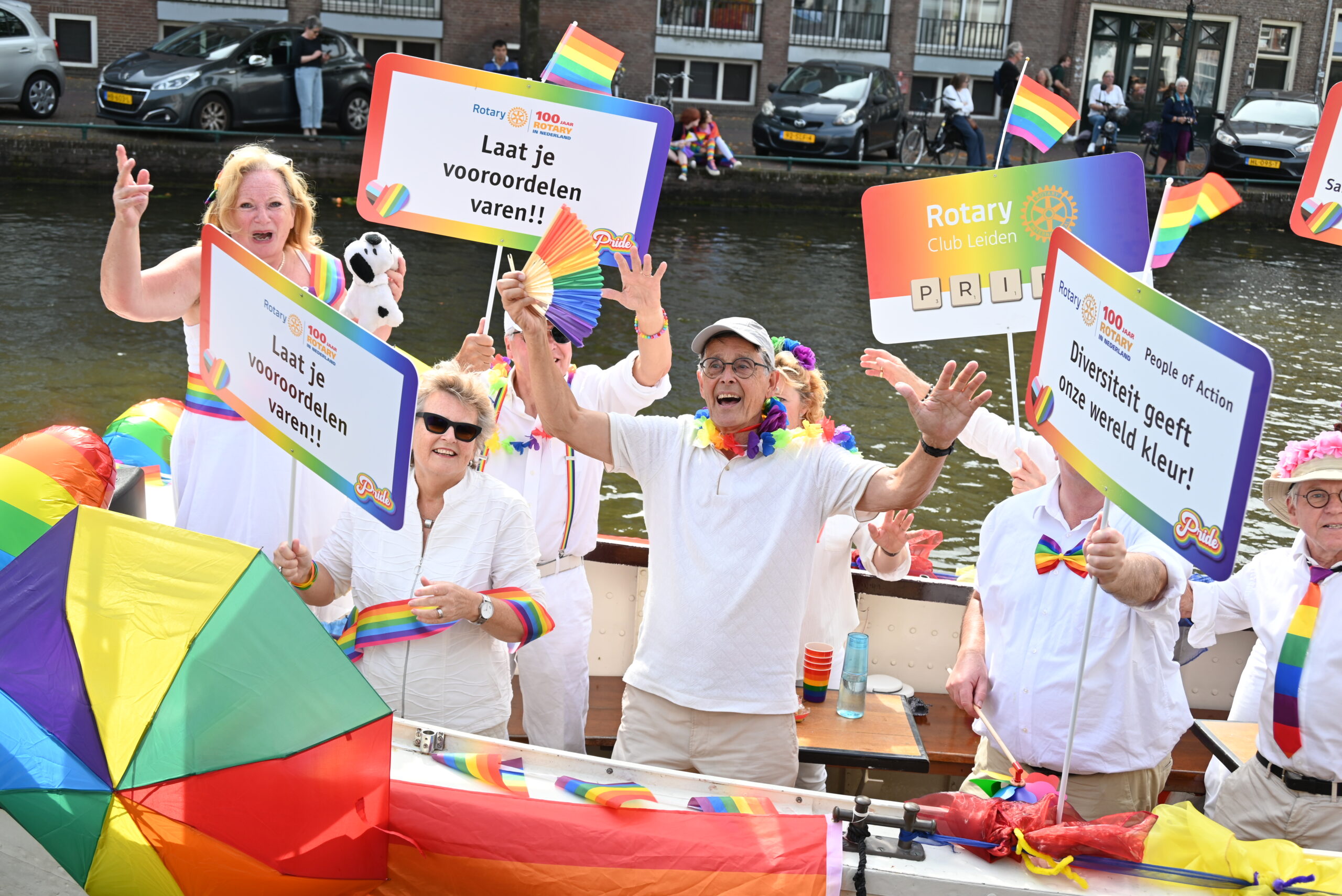 Dit keer voeren zo’n vijftig deelnemers mee in de kleurige vaartstoet door de Leidse grachten. Net als vorig jaar werkte het weer goed mee en vierden deelnemers en publiek het feest van gelijkheid uitbundig mee.