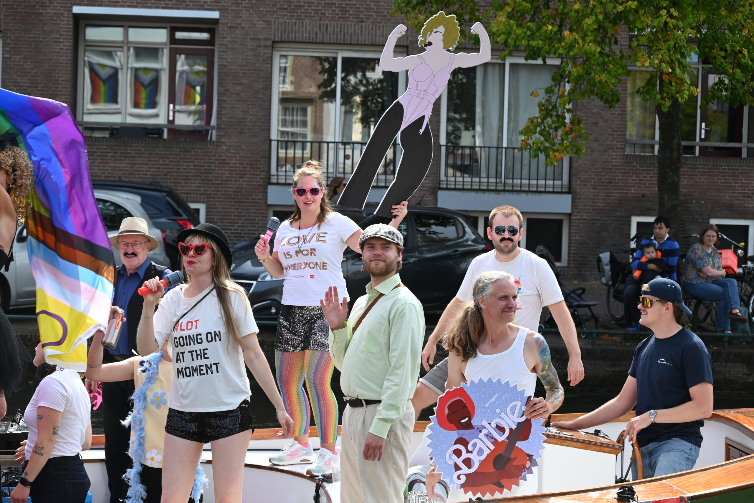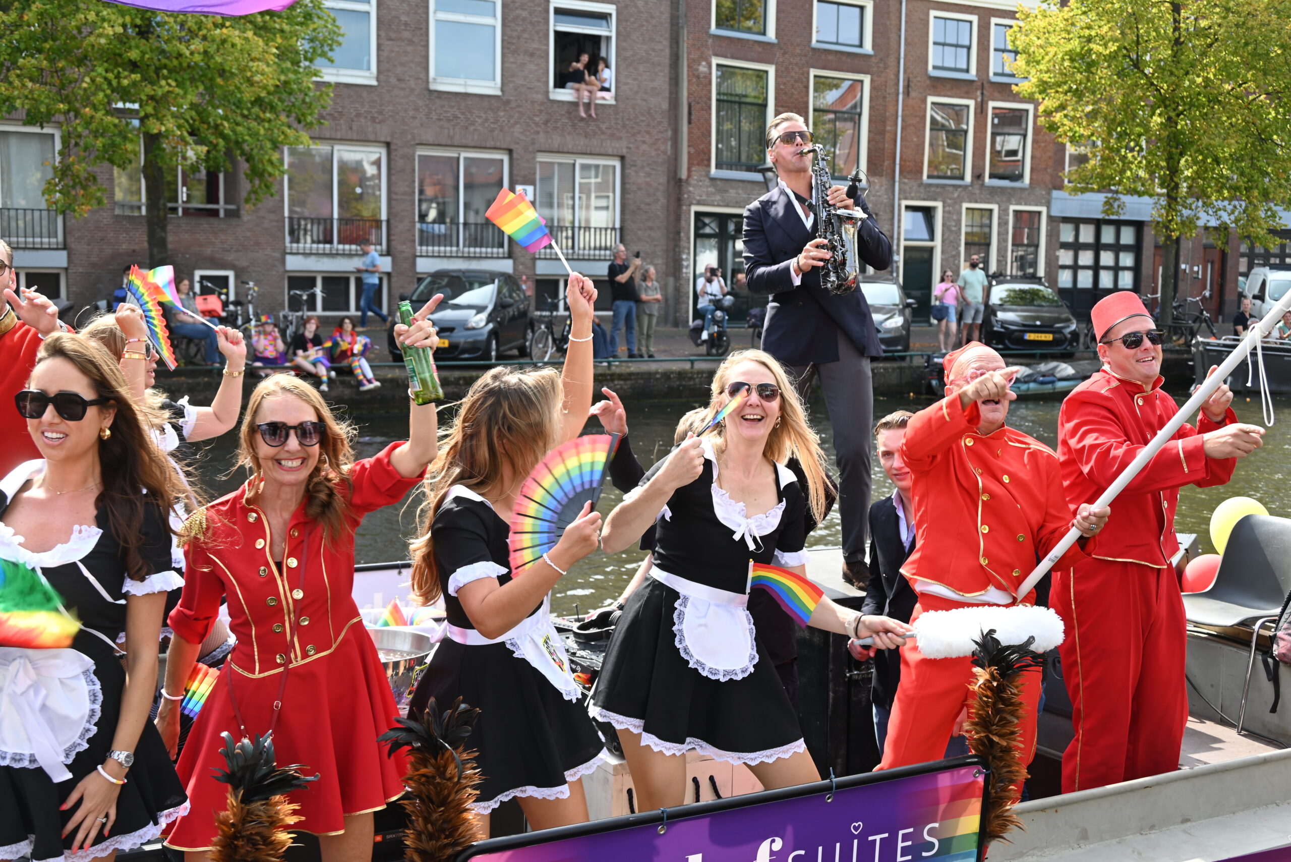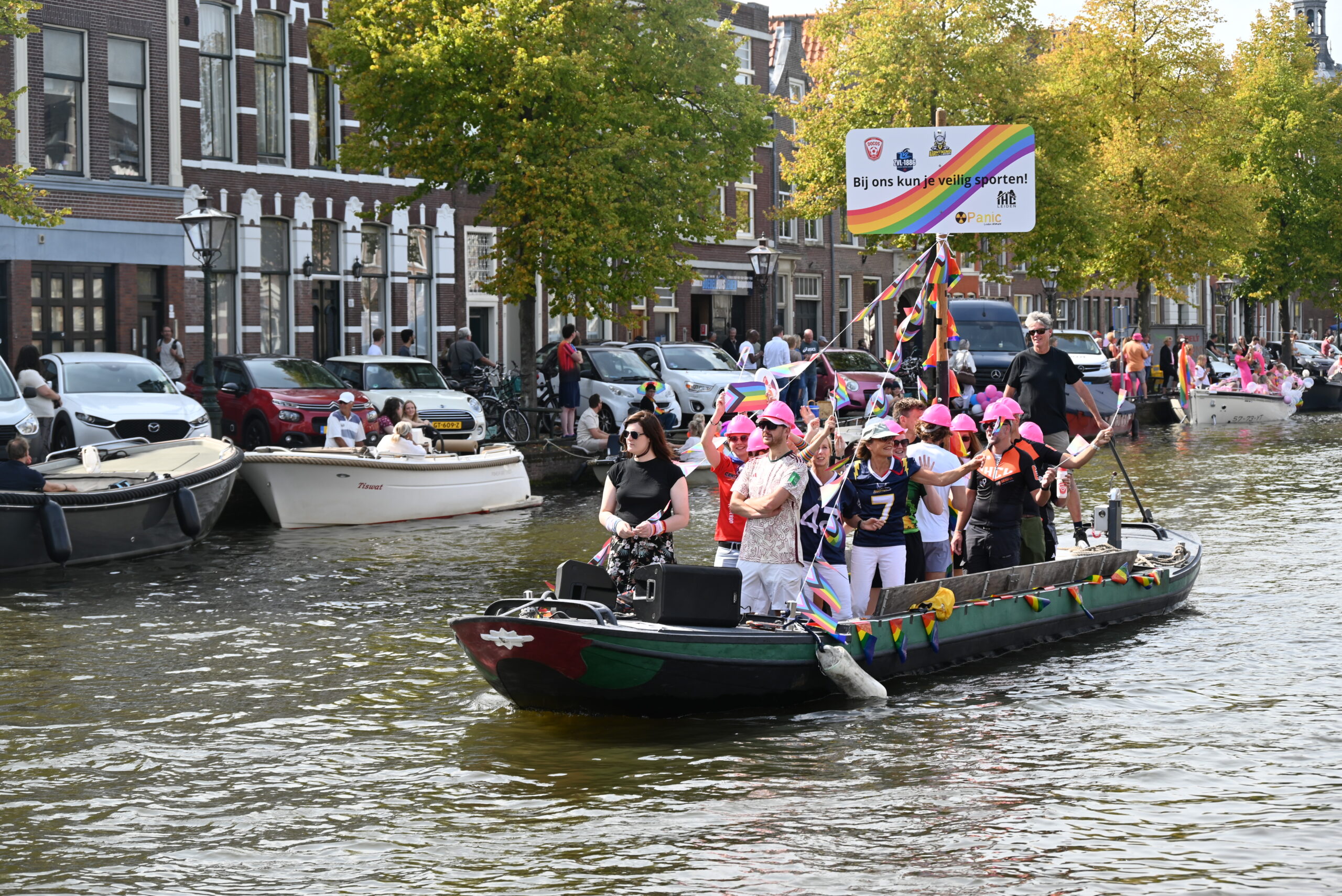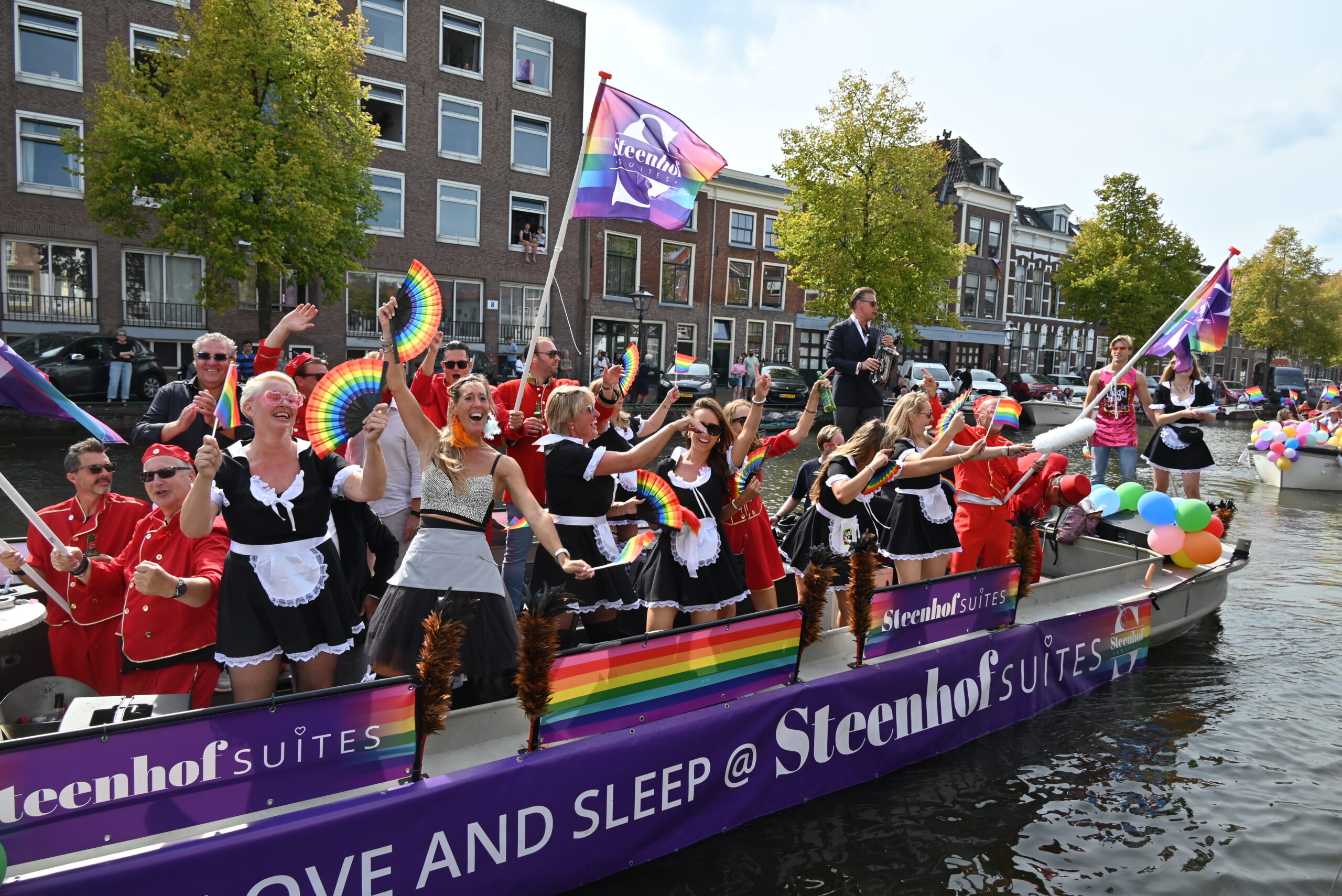 Dit keer voeren zo’n vijftig deelnemers mee in de kleurige vaartstoet door de Leidse grachten. Net als vorig jaar werkte het weer goed mee en vierden deelnemers en publiek het feest van gelijkheid uitbundig mee.