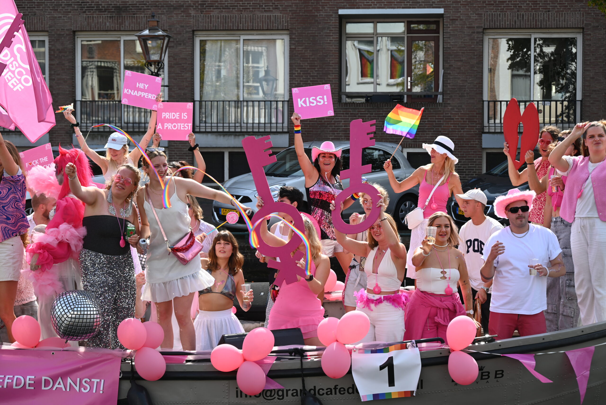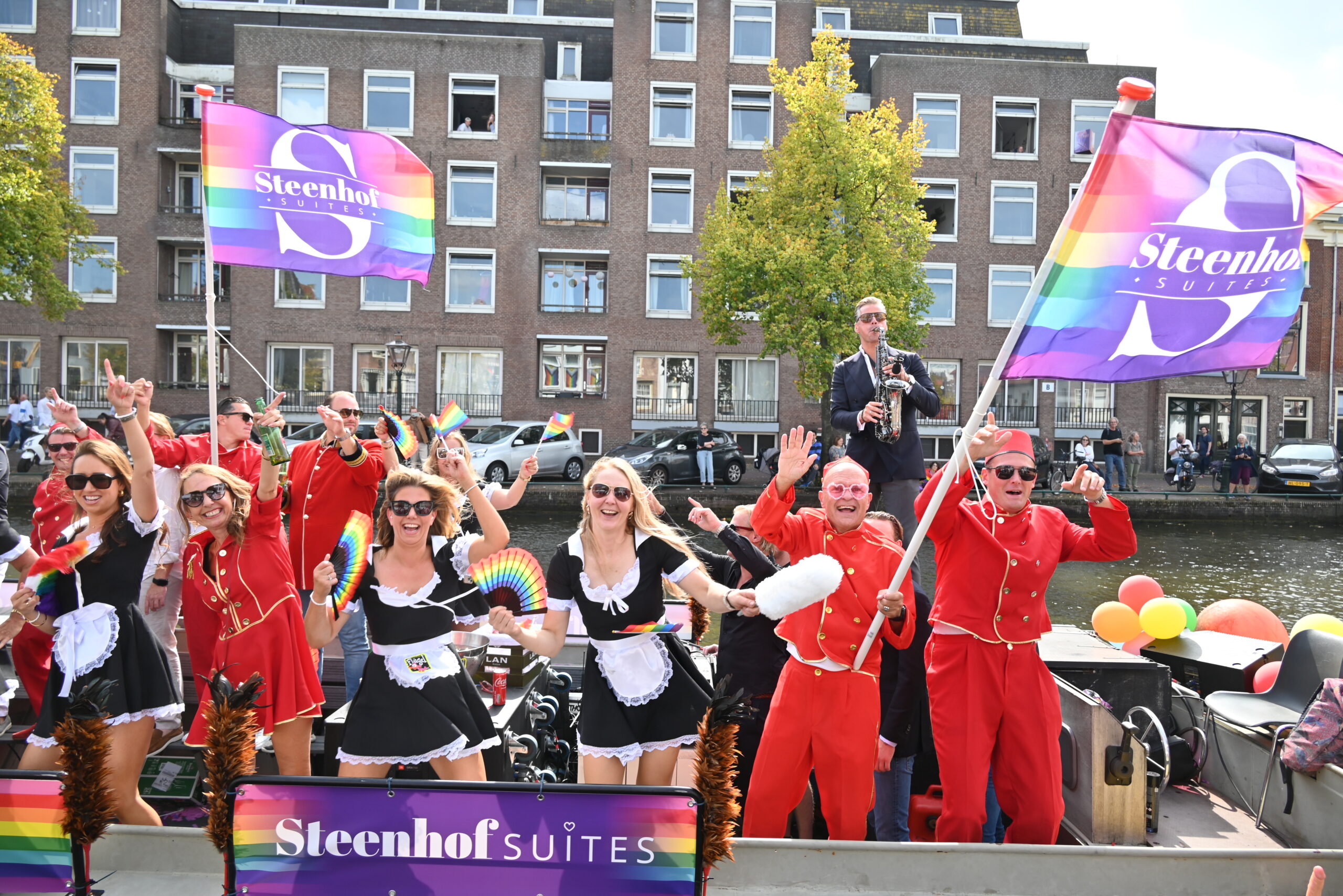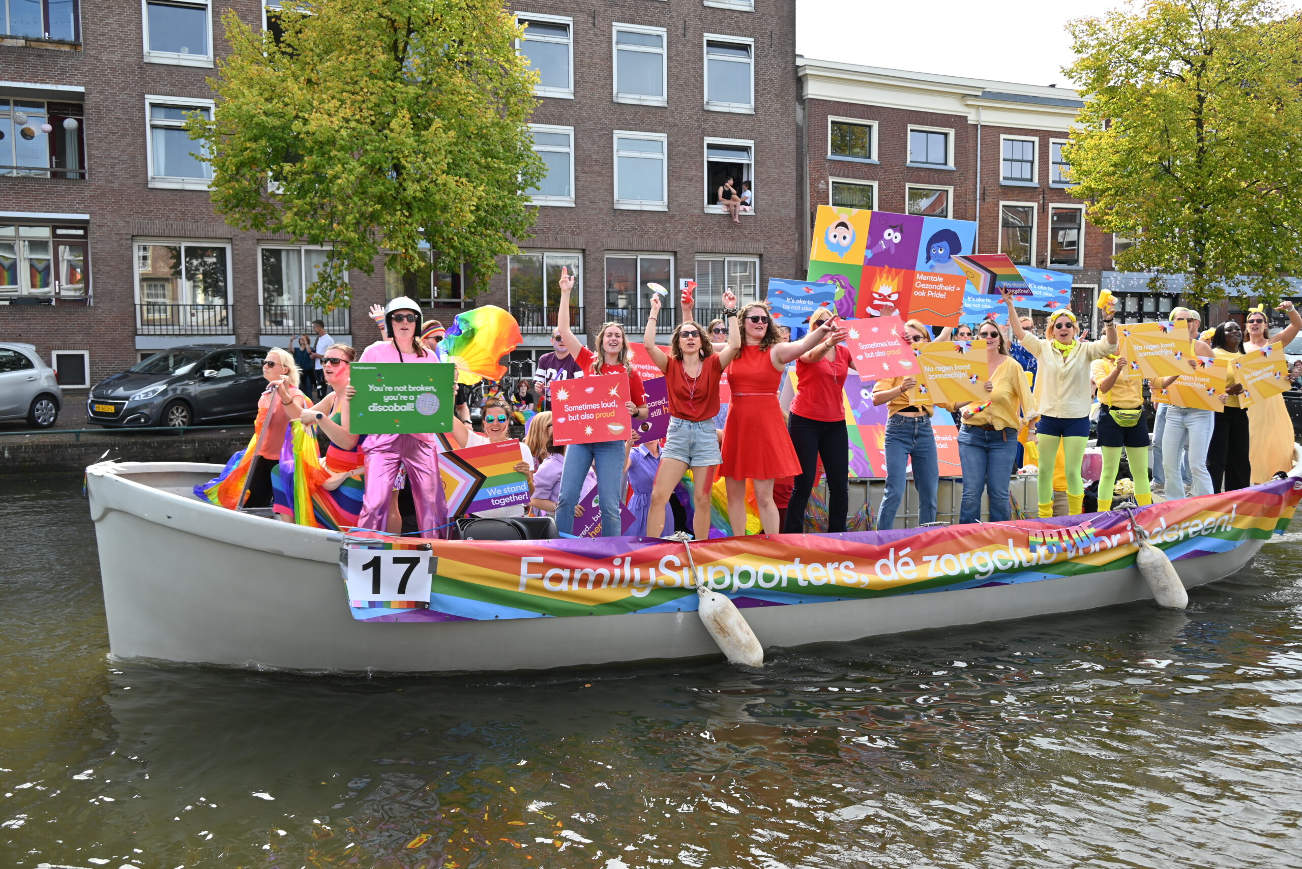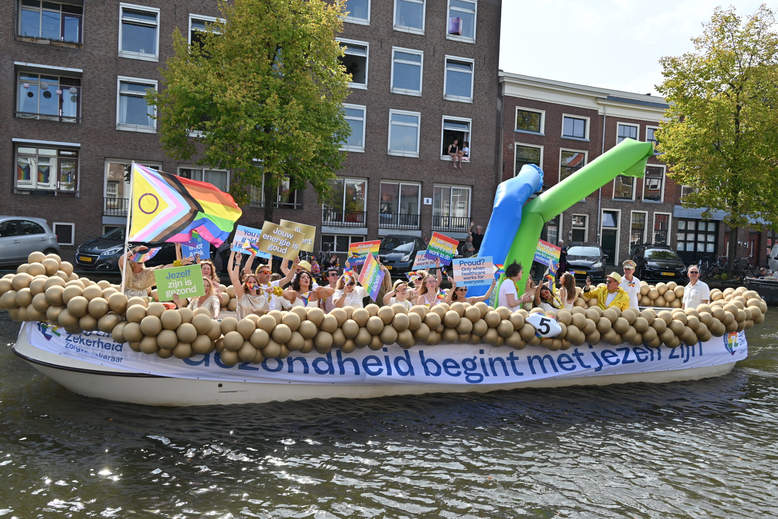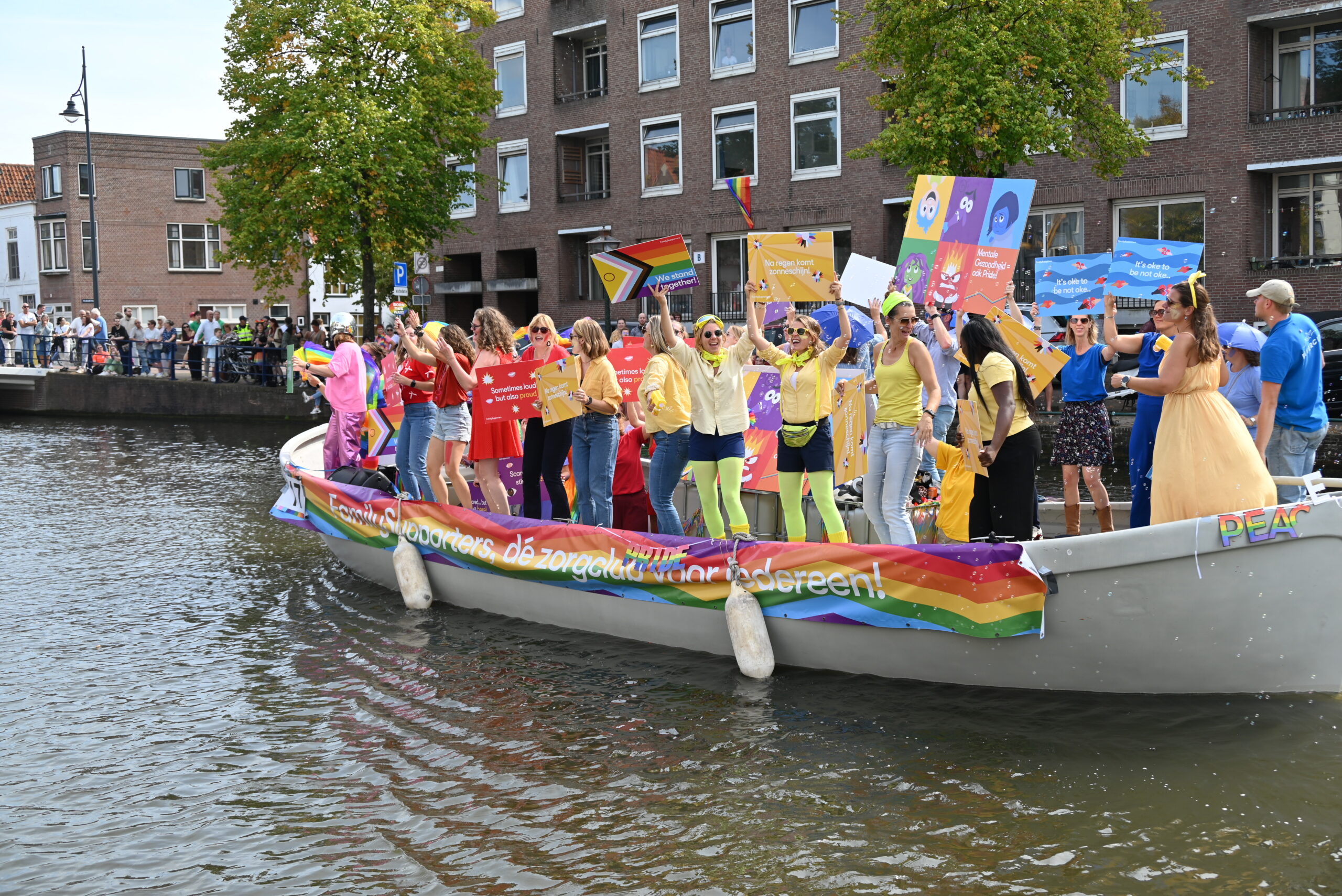 Dit keer voeren zo’n vijftig deelnemers mee in de kleurige vaartstoet door de Leidse grachten. Net als vorig jaar werkte het weer goed mee en vierden deelnemers en publiek het feest van gelijkheid uitbundig mee.