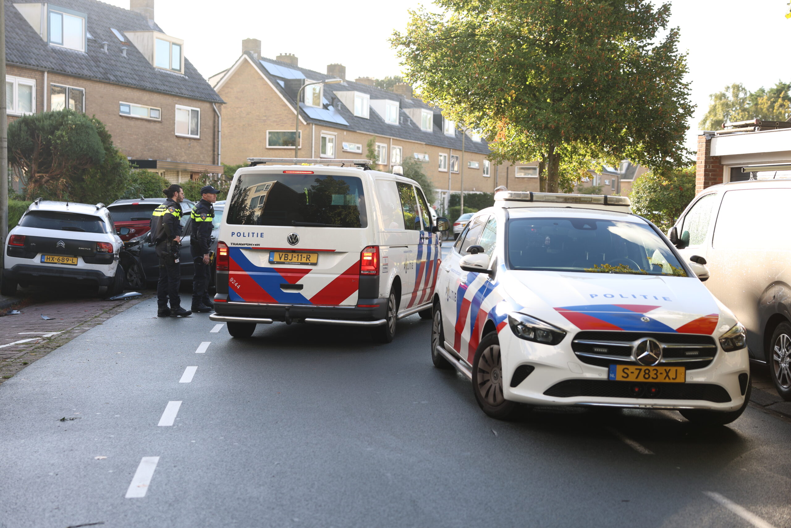 Bij die aanrijding liep hij een lekke band op. De man reed gewoon door en ramde zo’n vierhonderd meter verderop twee geparkeerde auto’s in de Van Cranenburglaan. Alle voertuigen raakten zwaar beschadigd. Bij het incident vielen, ondanks de forse schade, geen gewonden. Een berger is opgeroepen om de voertuigen af te voeren.