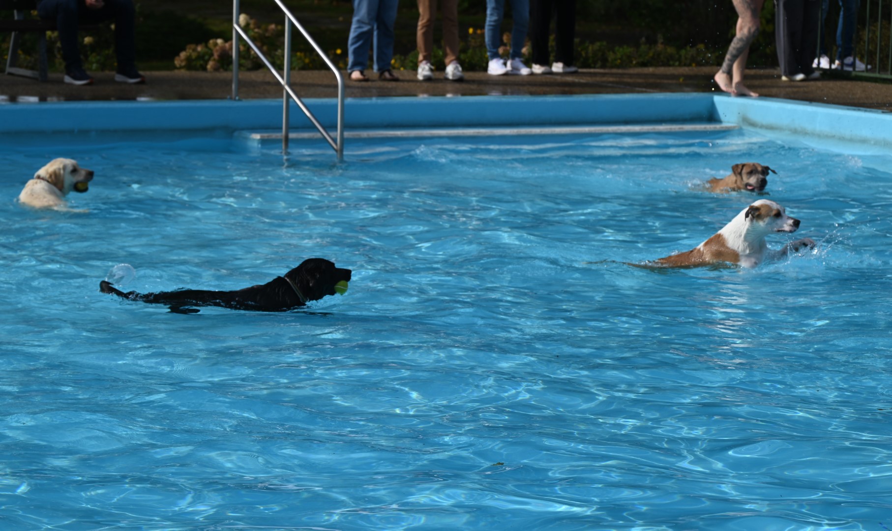 Alweer voor het elfde jaar was openluchtzwembad Haasbroek in Zoeterwoude de laatste middag van het zwemseizoen het domein van honden en hun baasjes. Het seizoen werd afgesloten met het inmiddels traditionele ‘hondenzwemmen’.