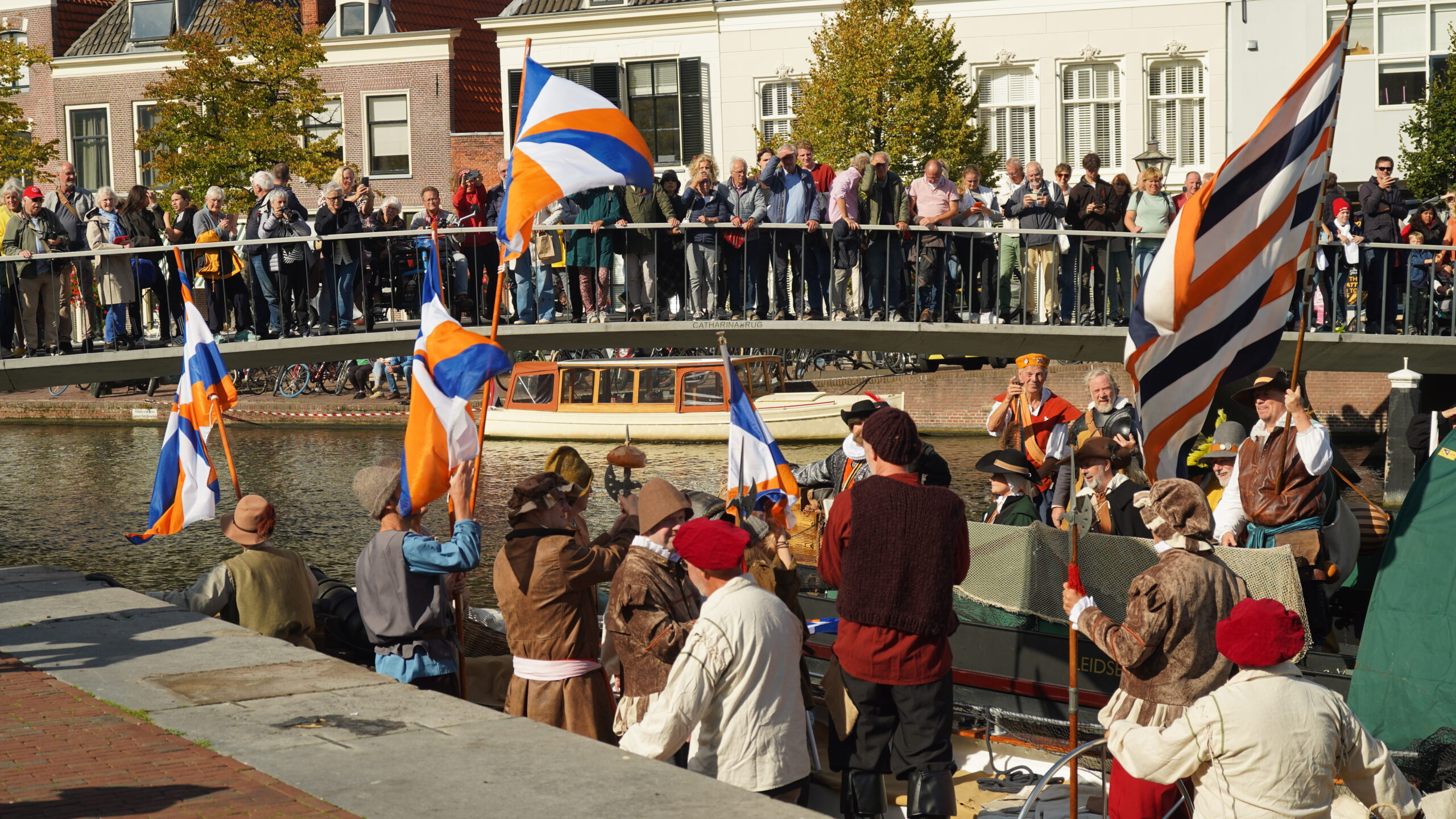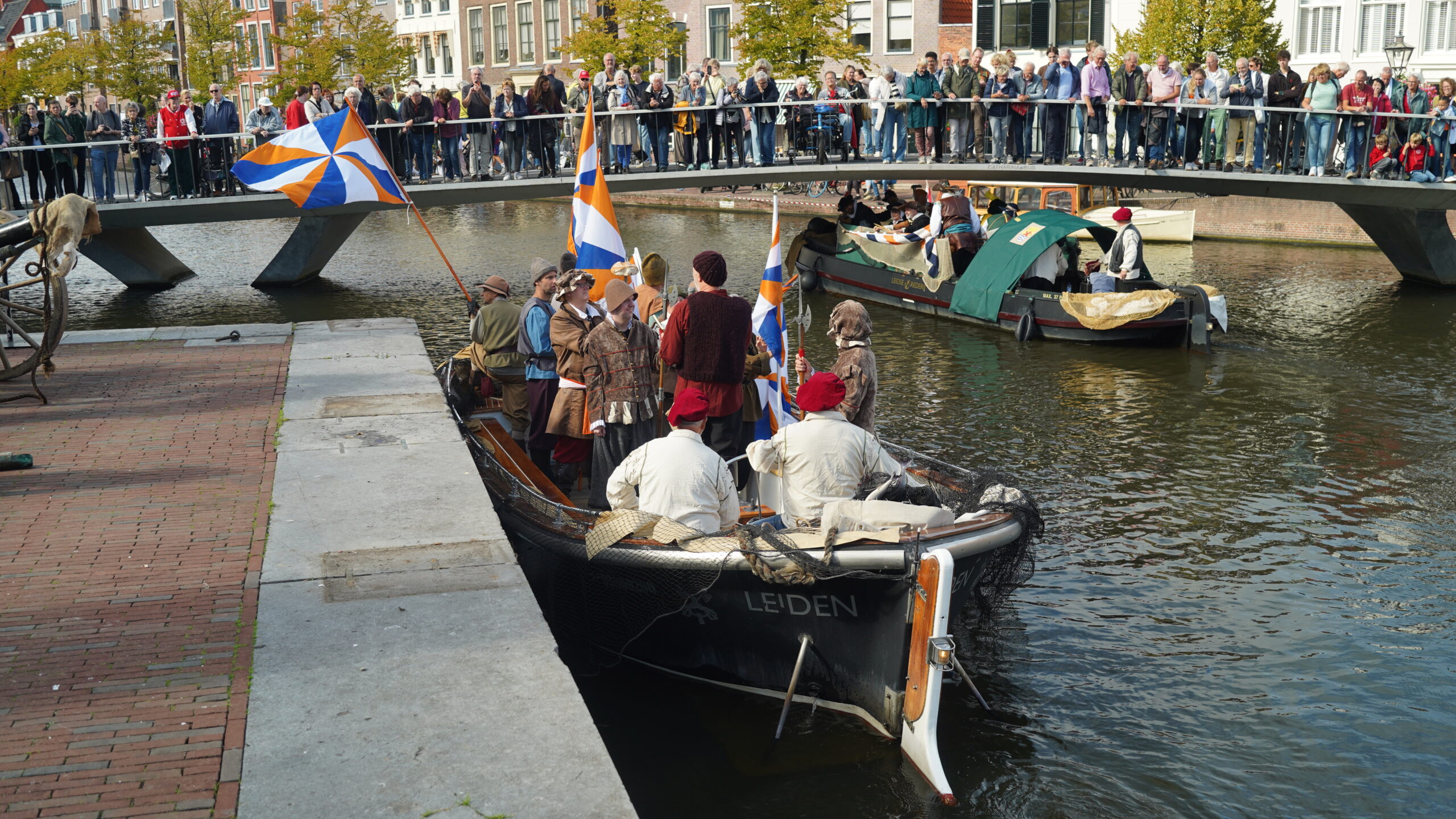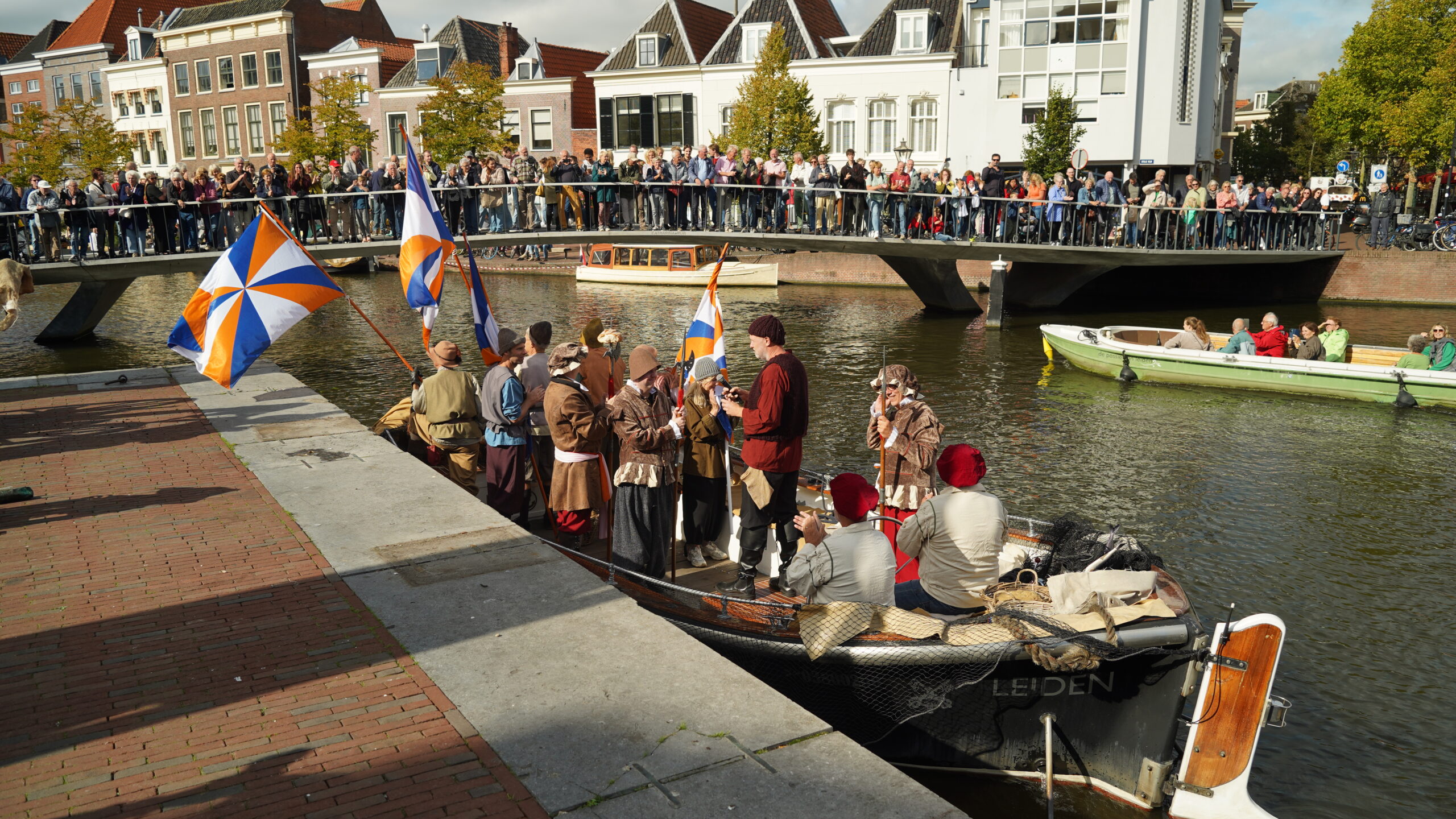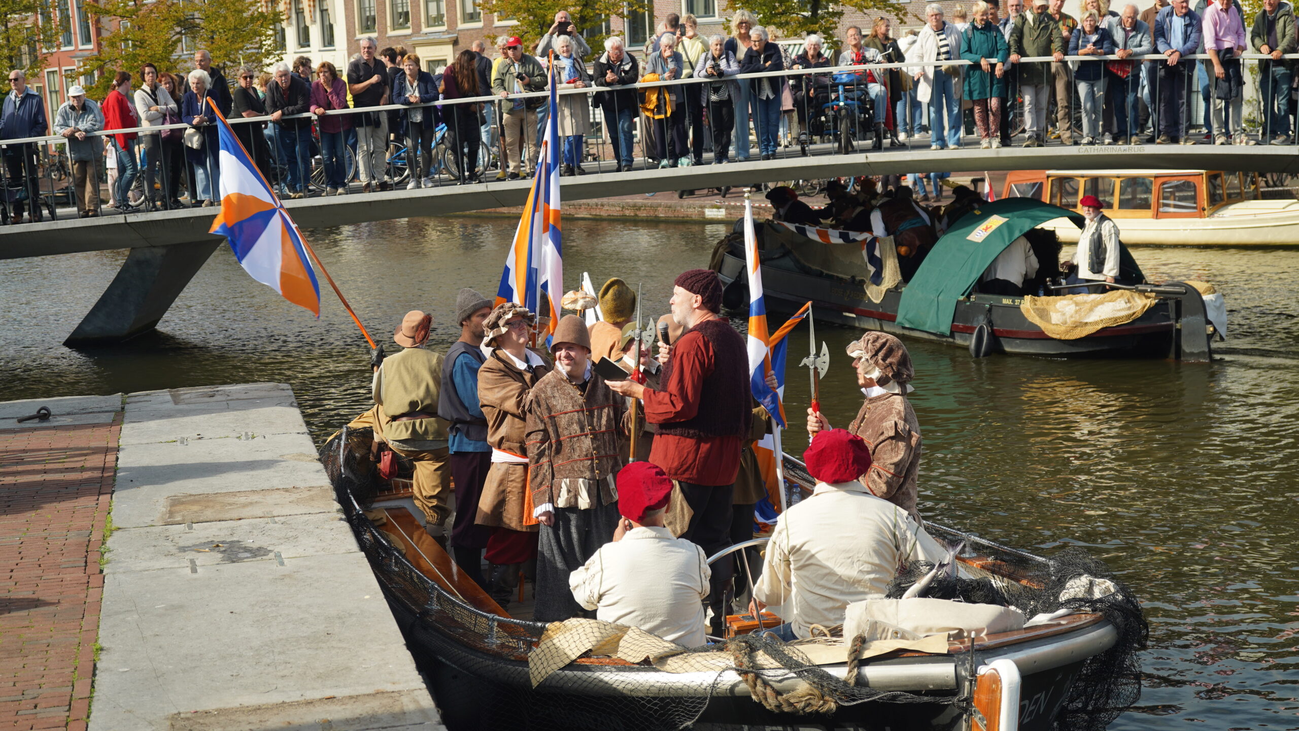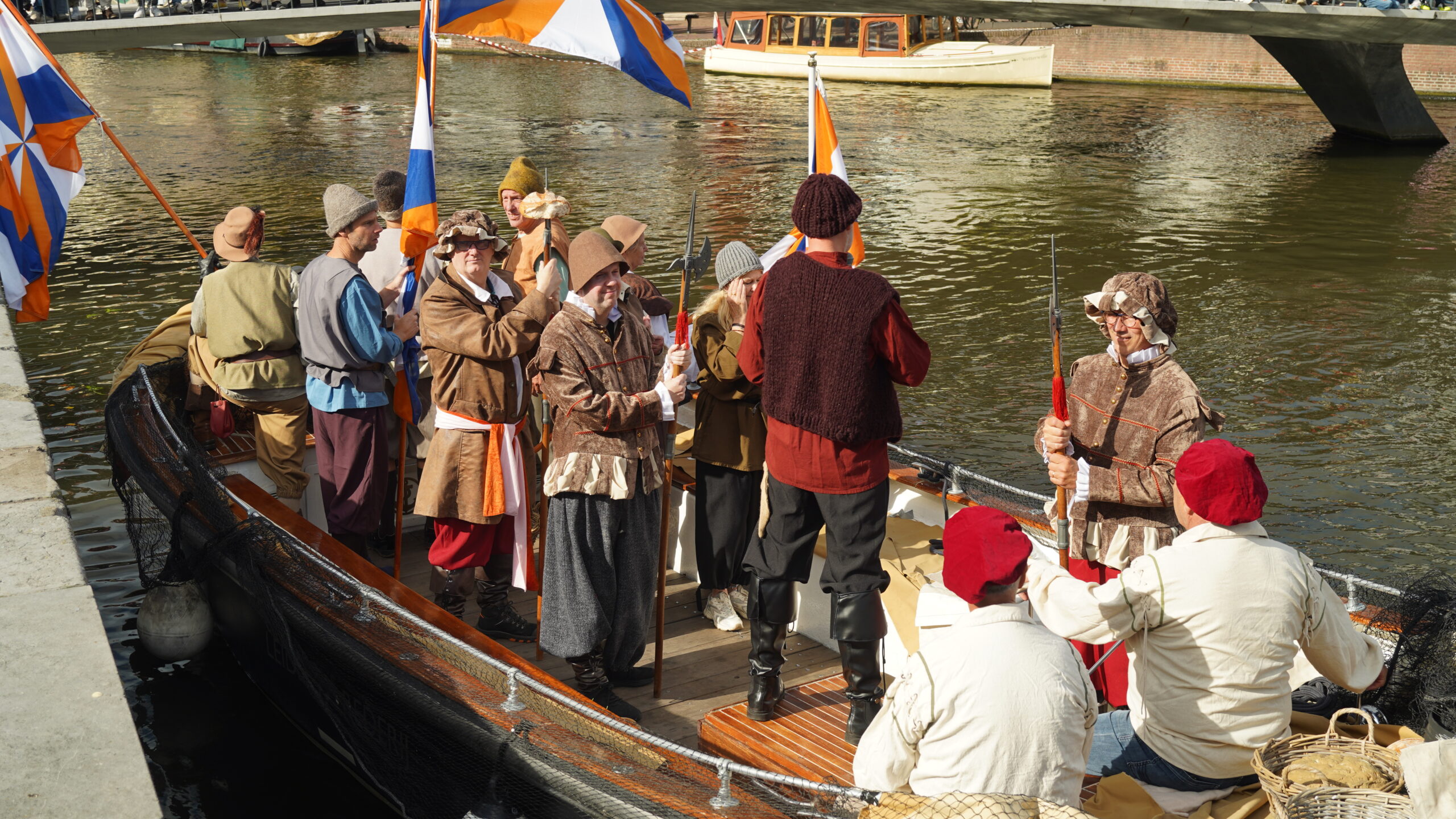 Die waren goedgevuld met Leidenaren die de reconstructie van de bevrijding van de stad kwamen bewonderen. Meerdere kanonschoten luidden de vrijheid in. De aankomst van de Geuzen betekent ook het begin van de inschrijving van het haring en wittebrood.