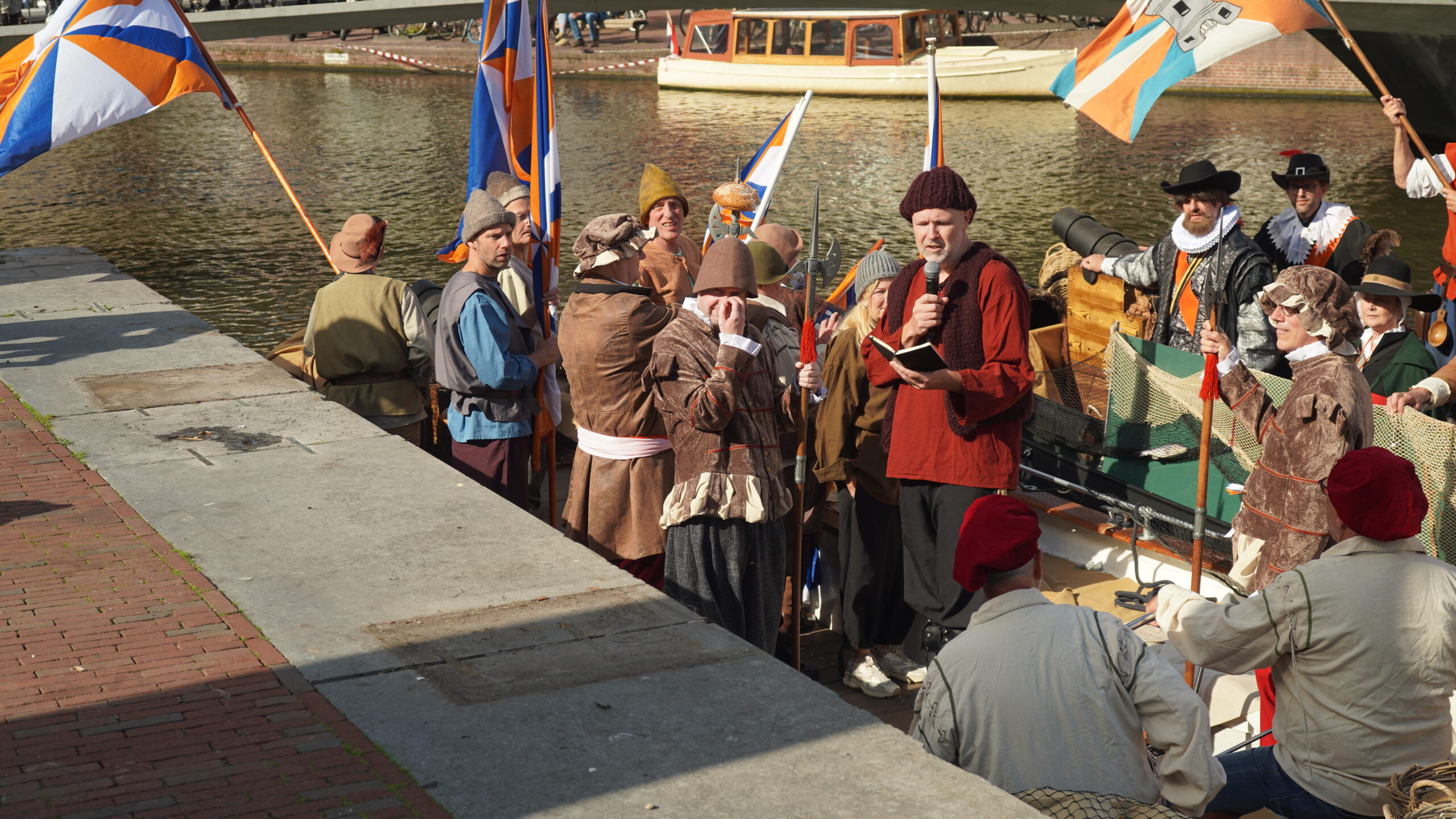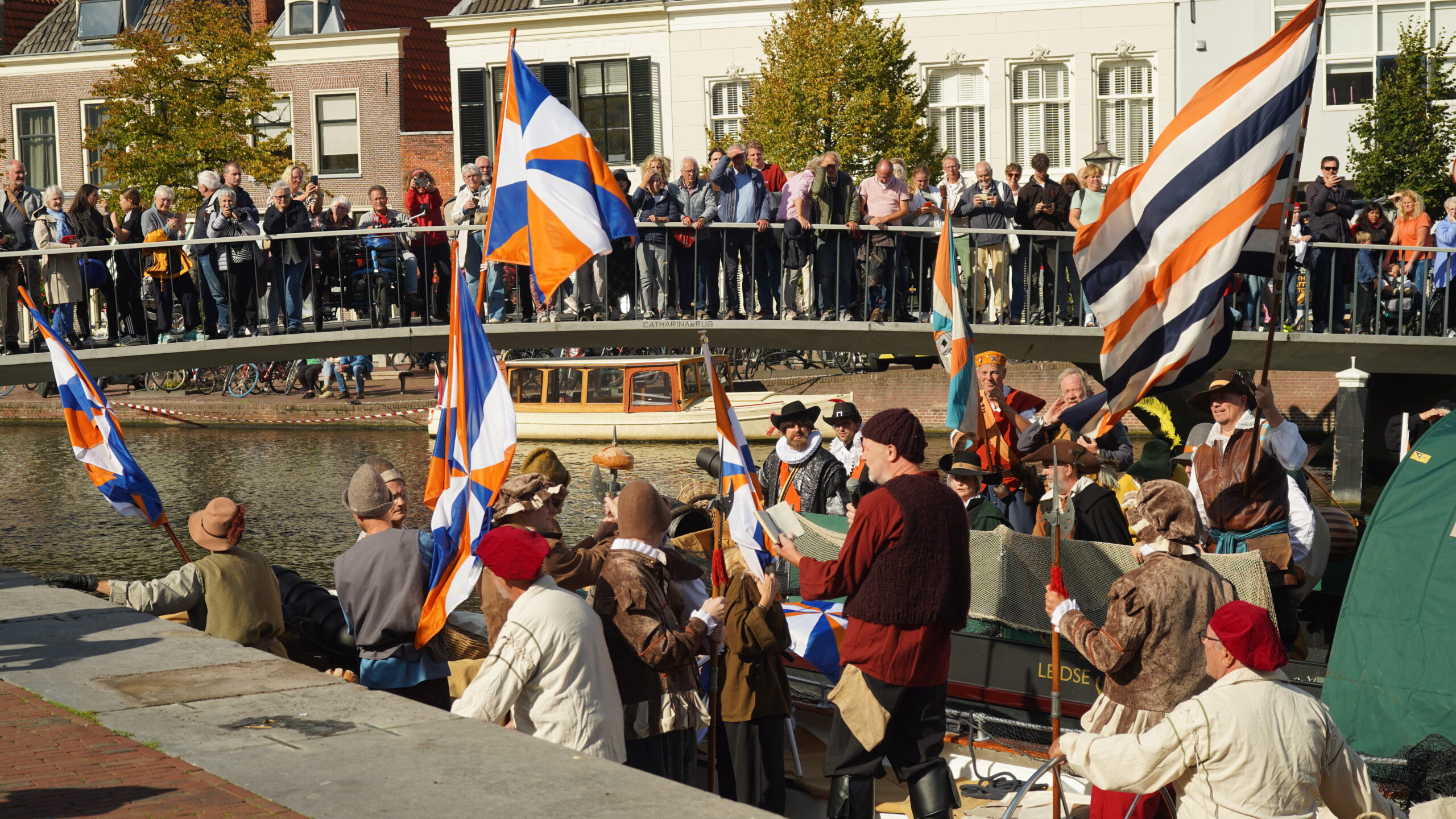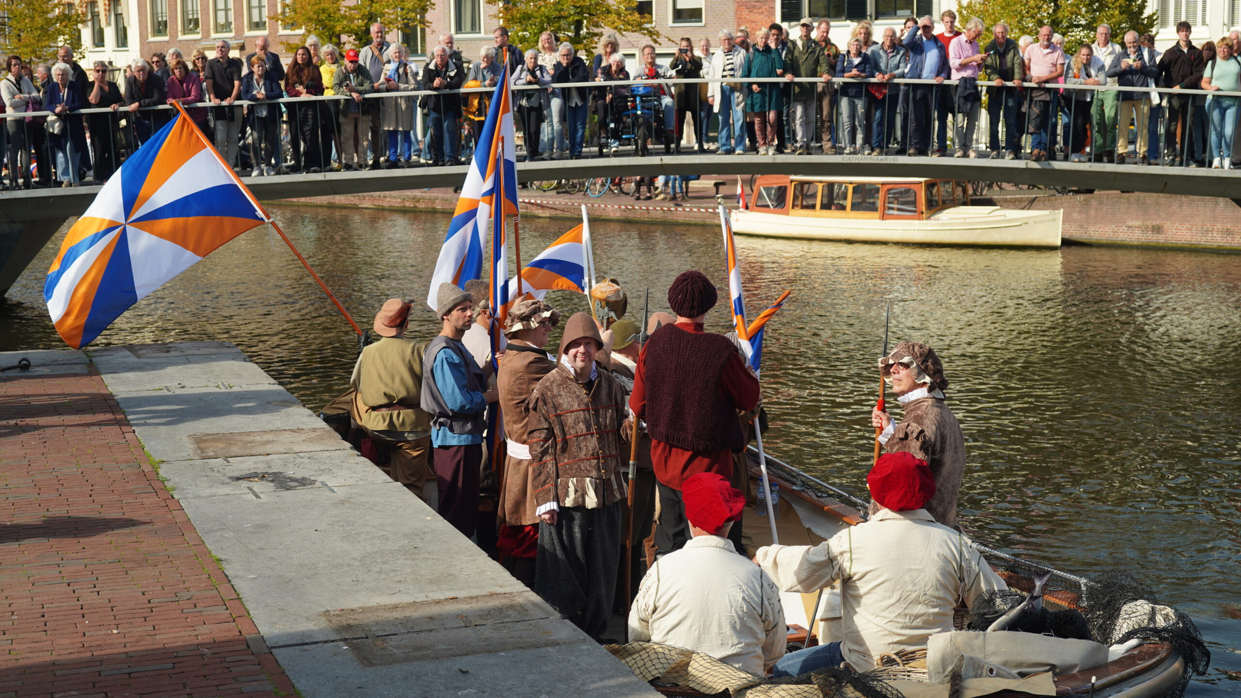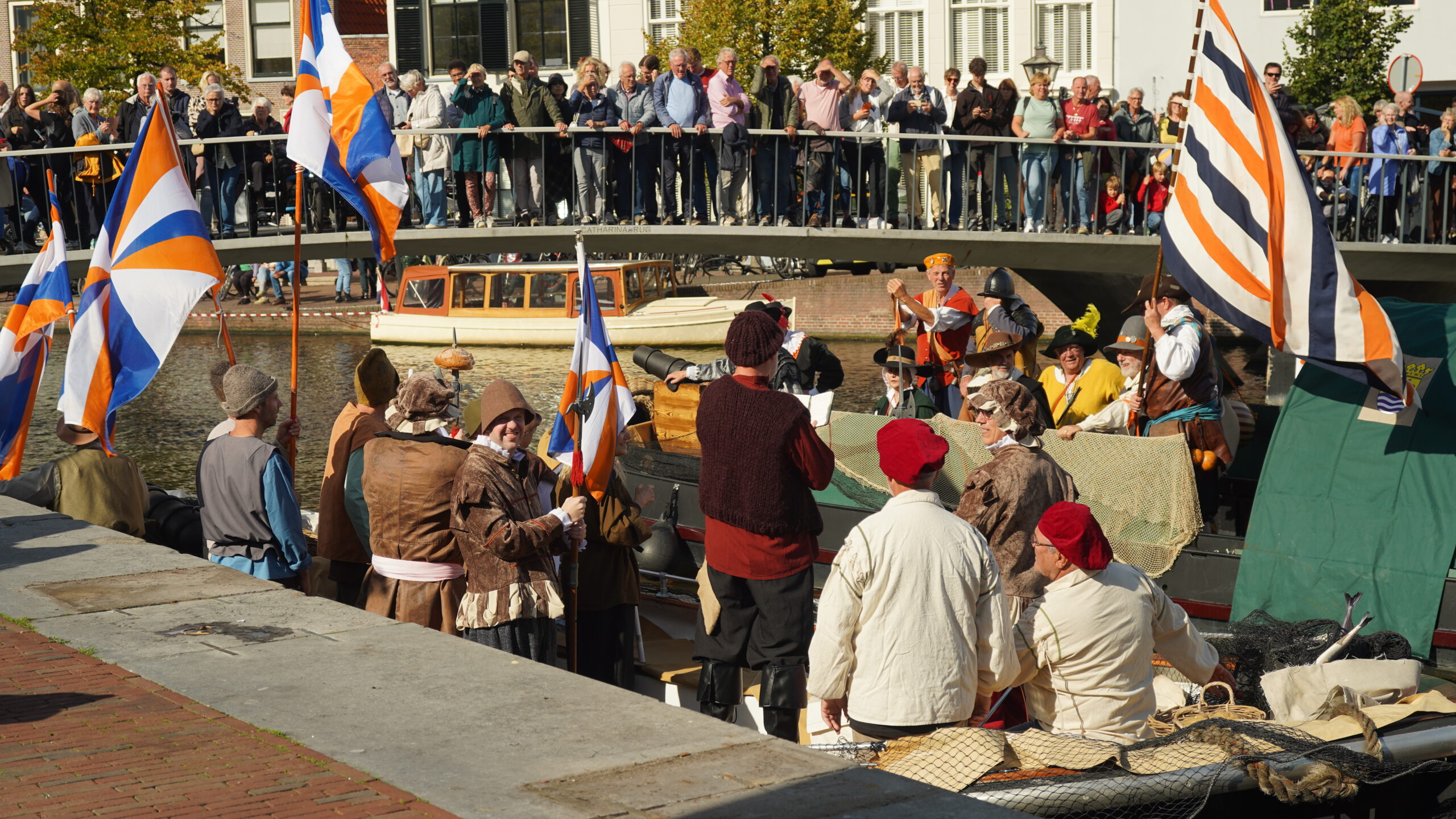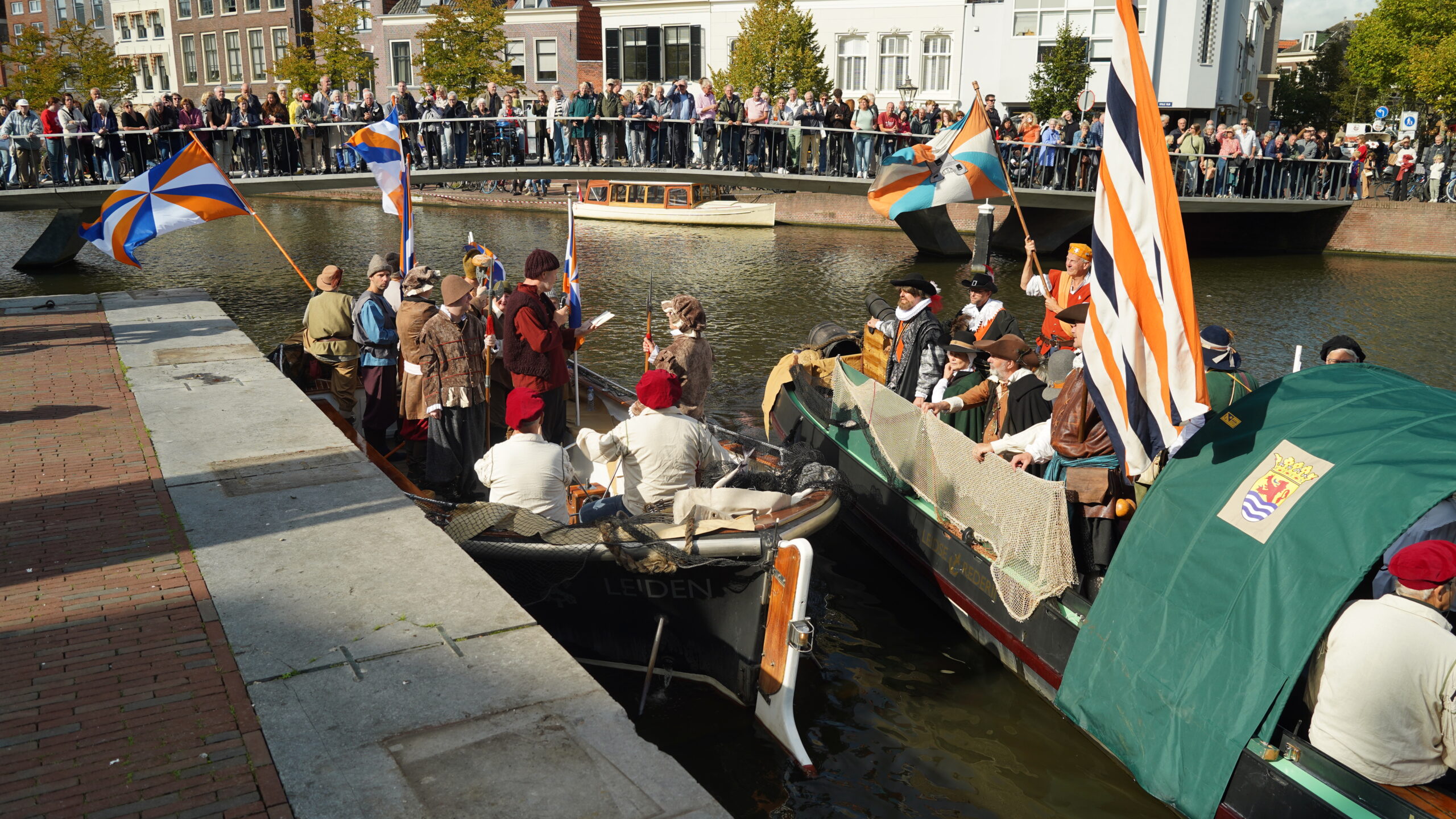 Die waren goedgevuld met Leidenaren die de reconstructie van de bevrijding van de stad kwamen bewonderen. Meerdere kanonschoten luidden de vrijheid in. De aankomst van de Geuzen betekent ook het begin van de inschrijving van het haring en wittebrood.