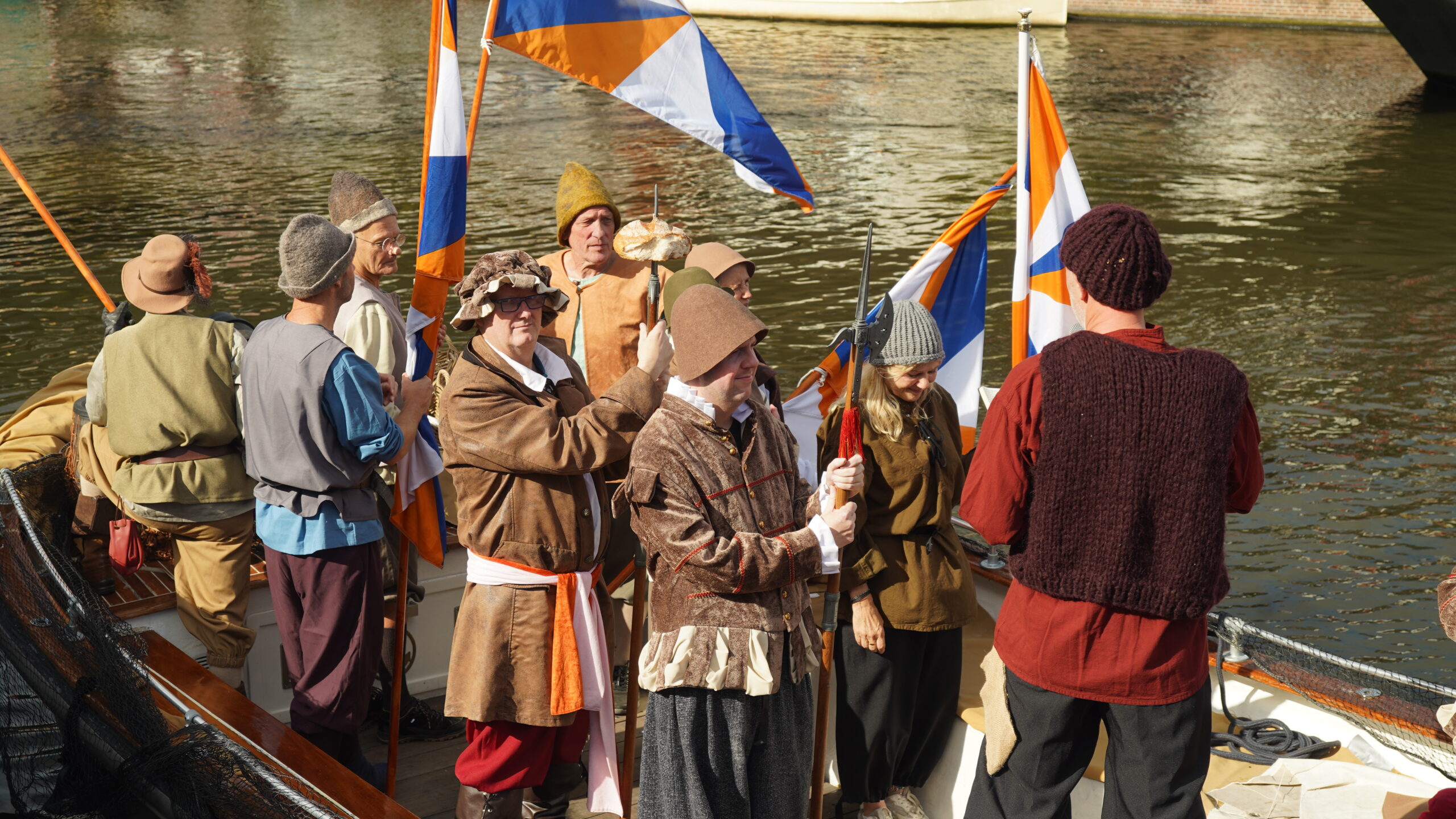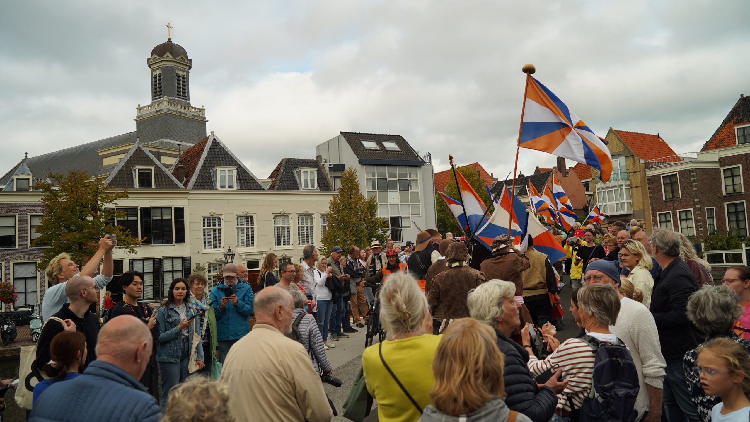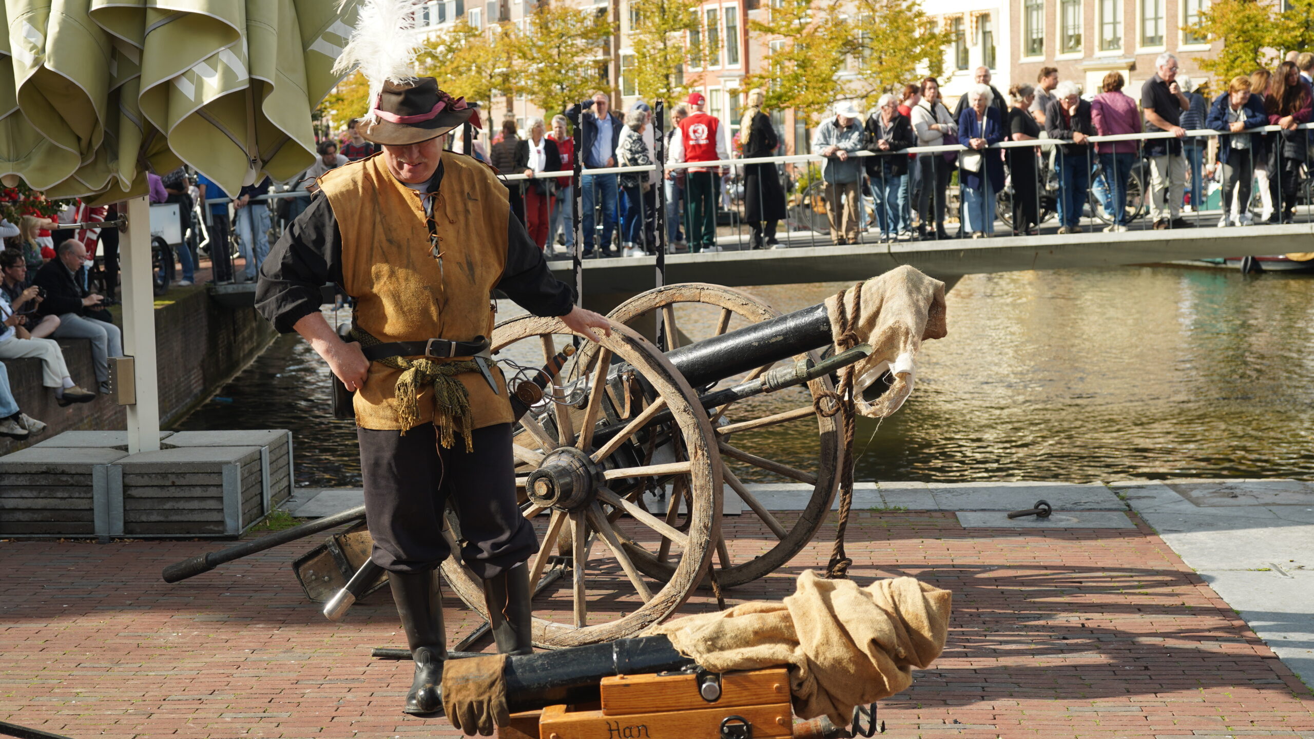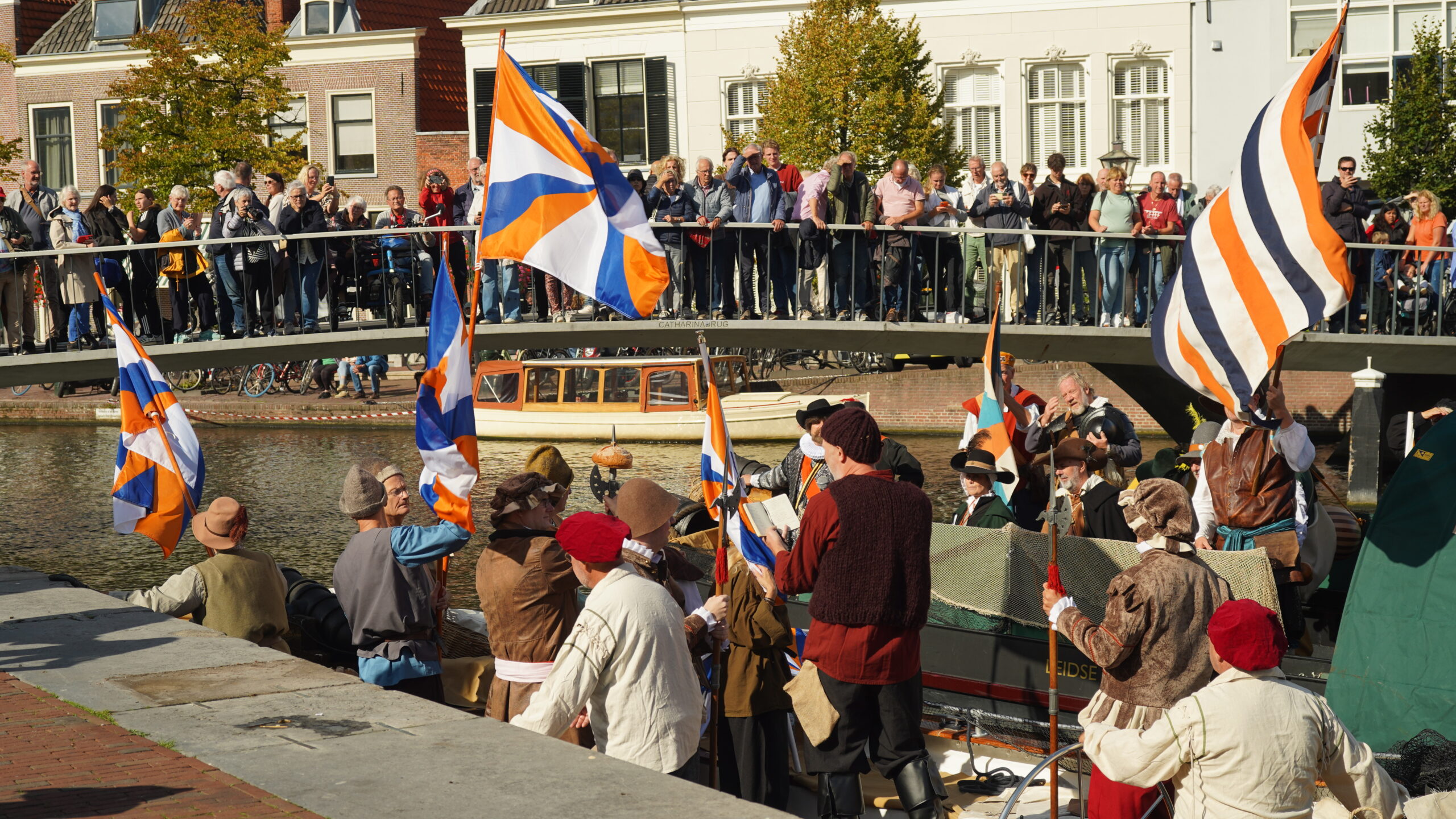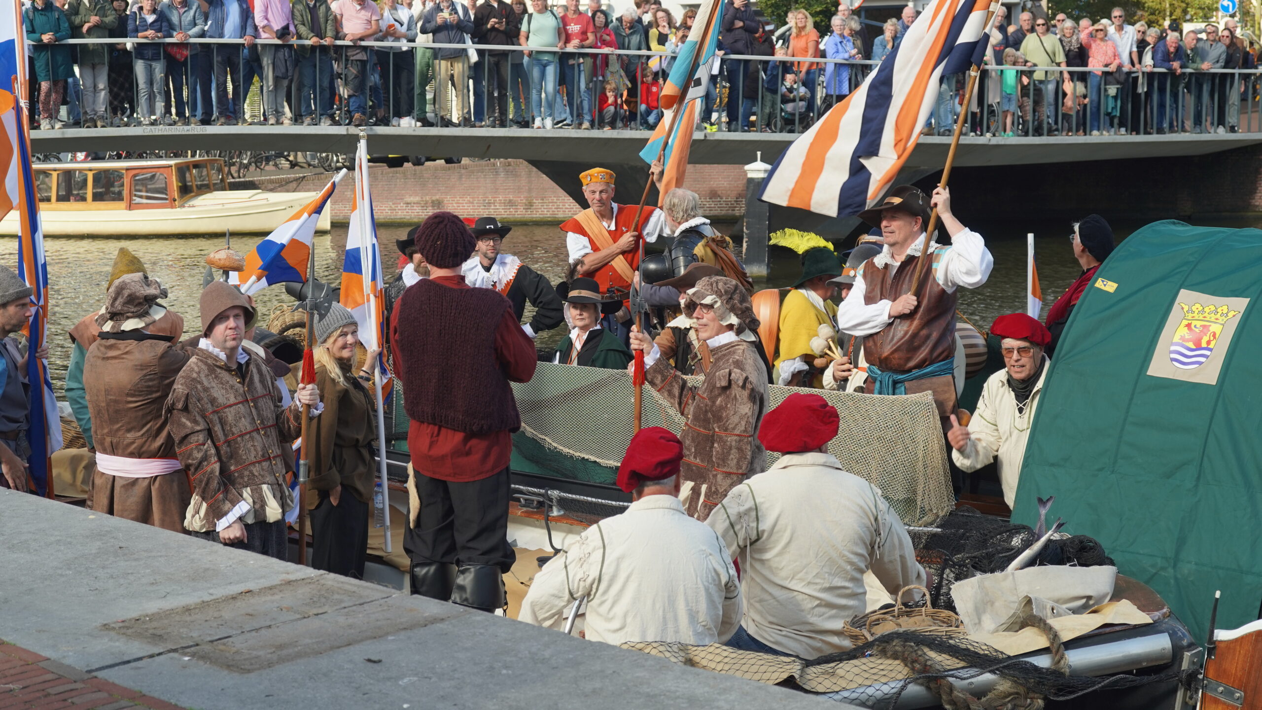 Die waren goedgevuld met Leidenaren die de reconstructie van de bevrijding van de stad kwamen bewonderen. Meerdere kanonschoten luidden de vrijheid in. De aankomst van de Geuzen betekent ook het begin van de inschrijving van het haring en wittebrood.