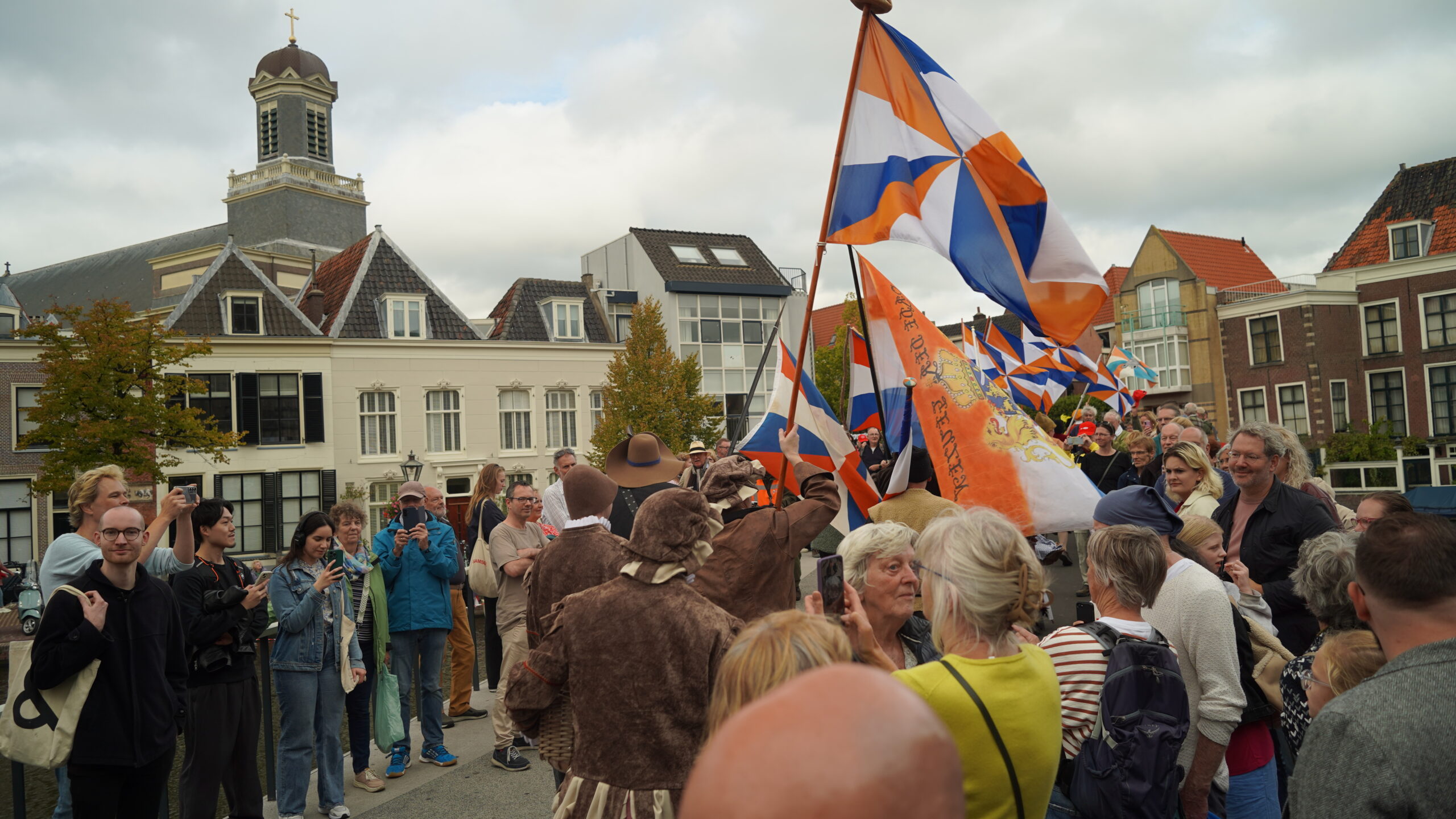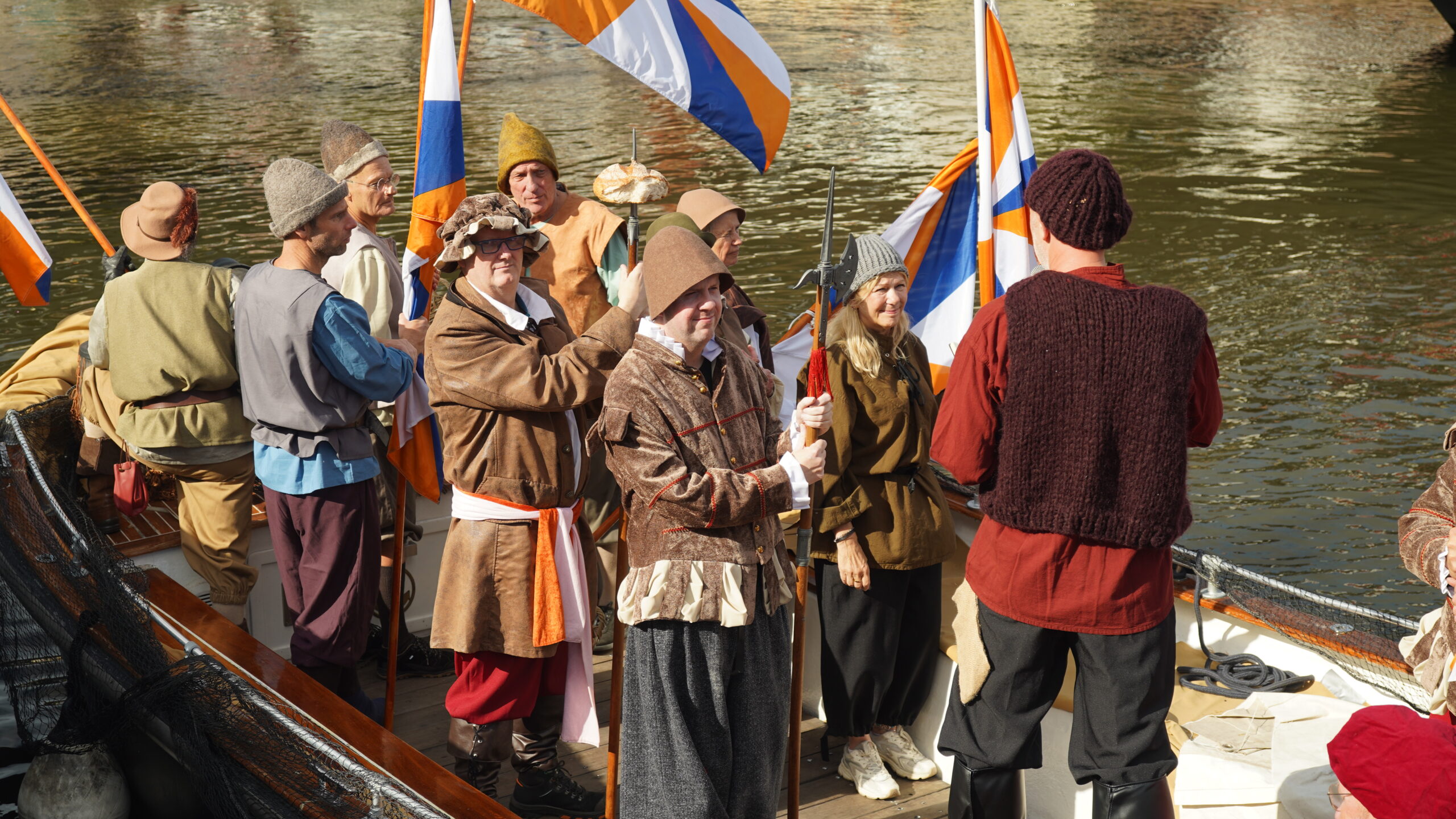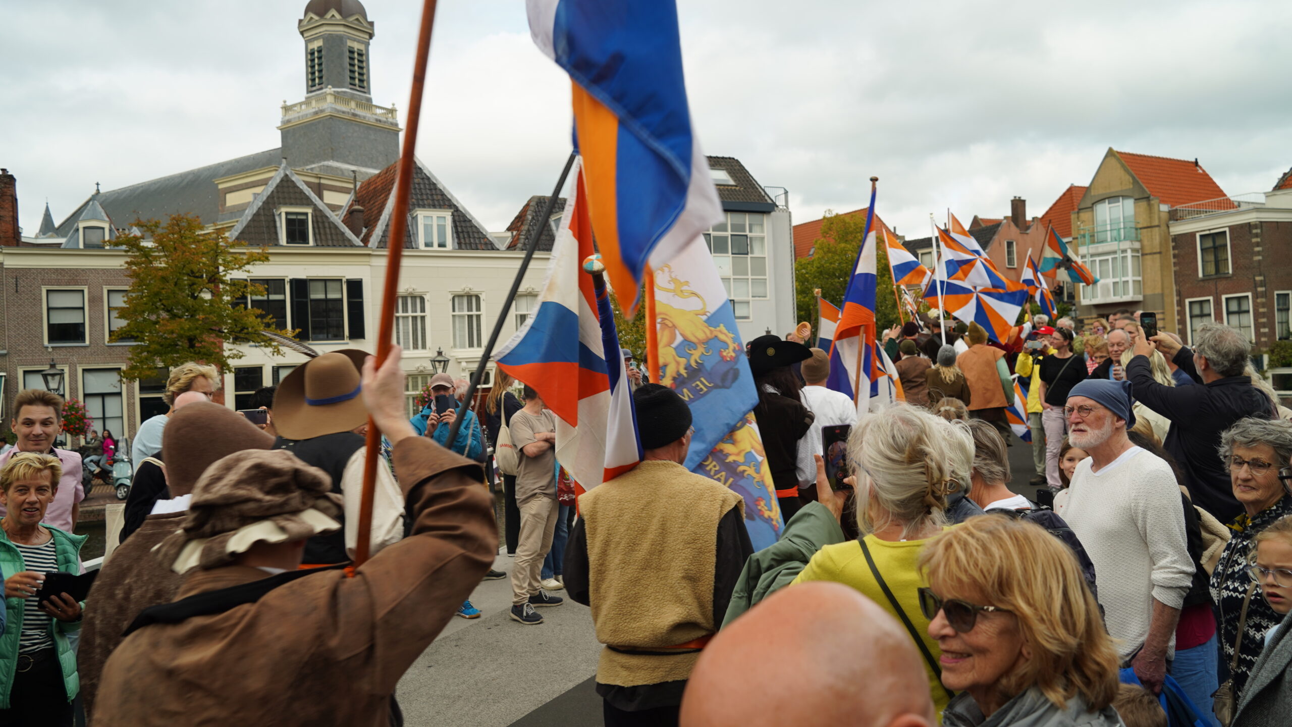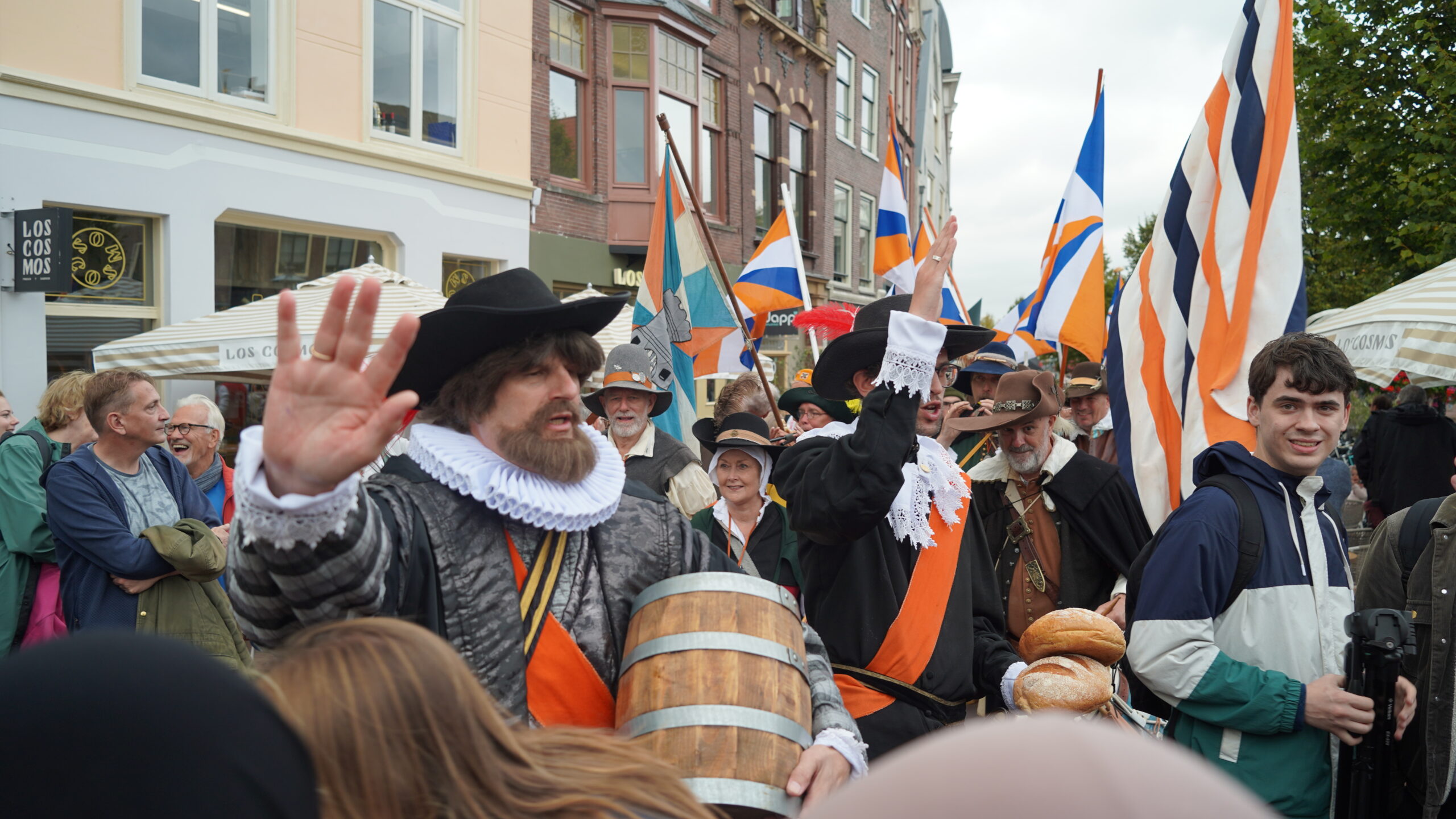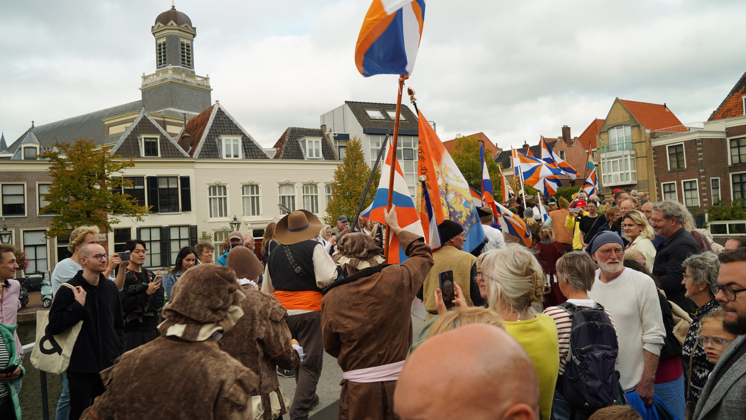 Die waren goedgevuld met Leidenaren die de reconstructie van de bevrijding van de stad kwamen bewonderen. Meerdere kanonschoten luidden de vrijheid in. De aankomst van de Geuzen betekent ook het begin van de inschrijving van het haring en wittebrood.