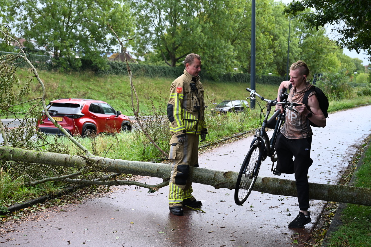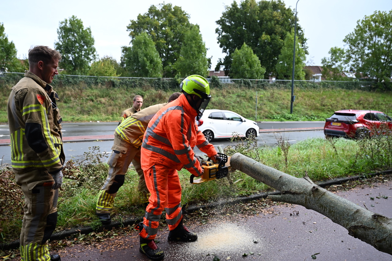 De brandweer heeft de boom in stukken gezaagd en daarmee de weg en het fietspad weer vrijgemaakt. Voor het zover was, moesten fietsers de nodige capriolen uithalen om hun weg te vervolgen.
