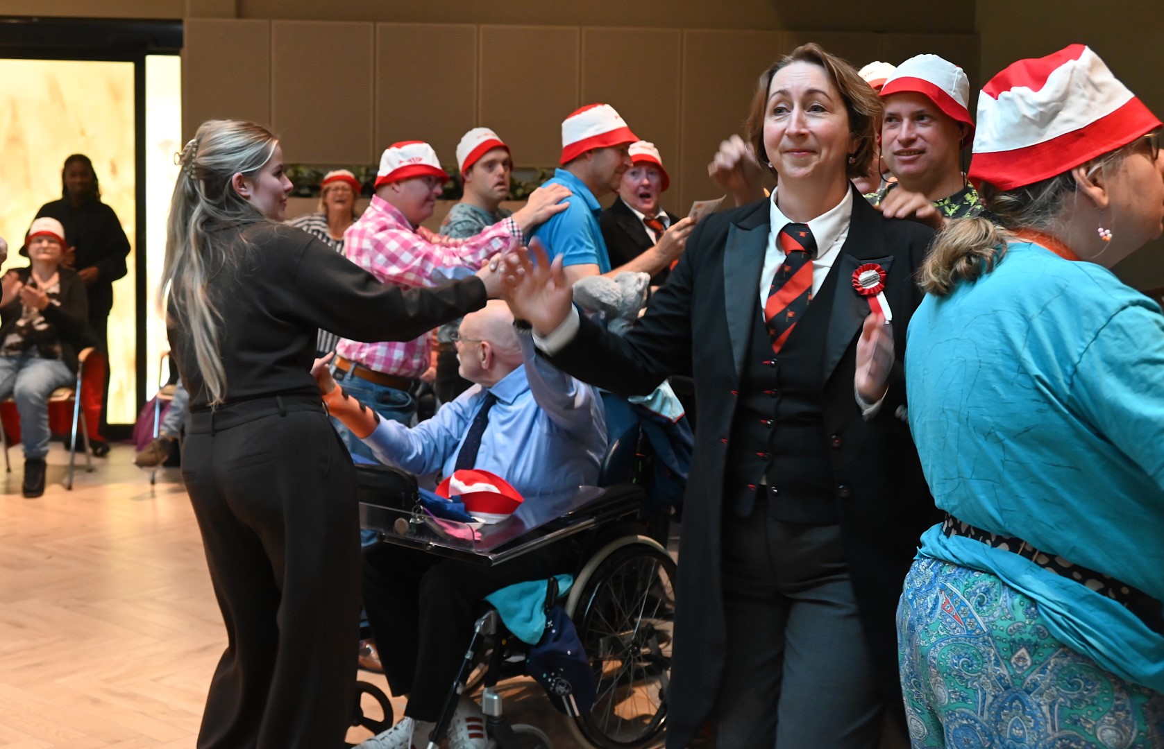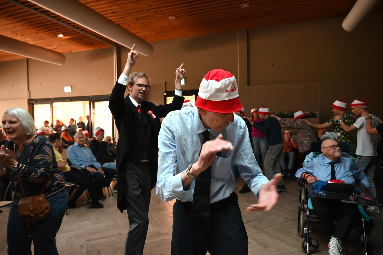 Een van de mooiste en dankbaarste evenementen voor de 3 October Vereeniging Evenementencommissieleden is ‘de 3 October Vereeniging on Tour bij Swetterhage’. Ook dit jaar kwamen de commissieleden met cadeautjes en artiesten naar het wooncentrum voor verstandelijk gehandicapten om er weer een groot feest van te maken.