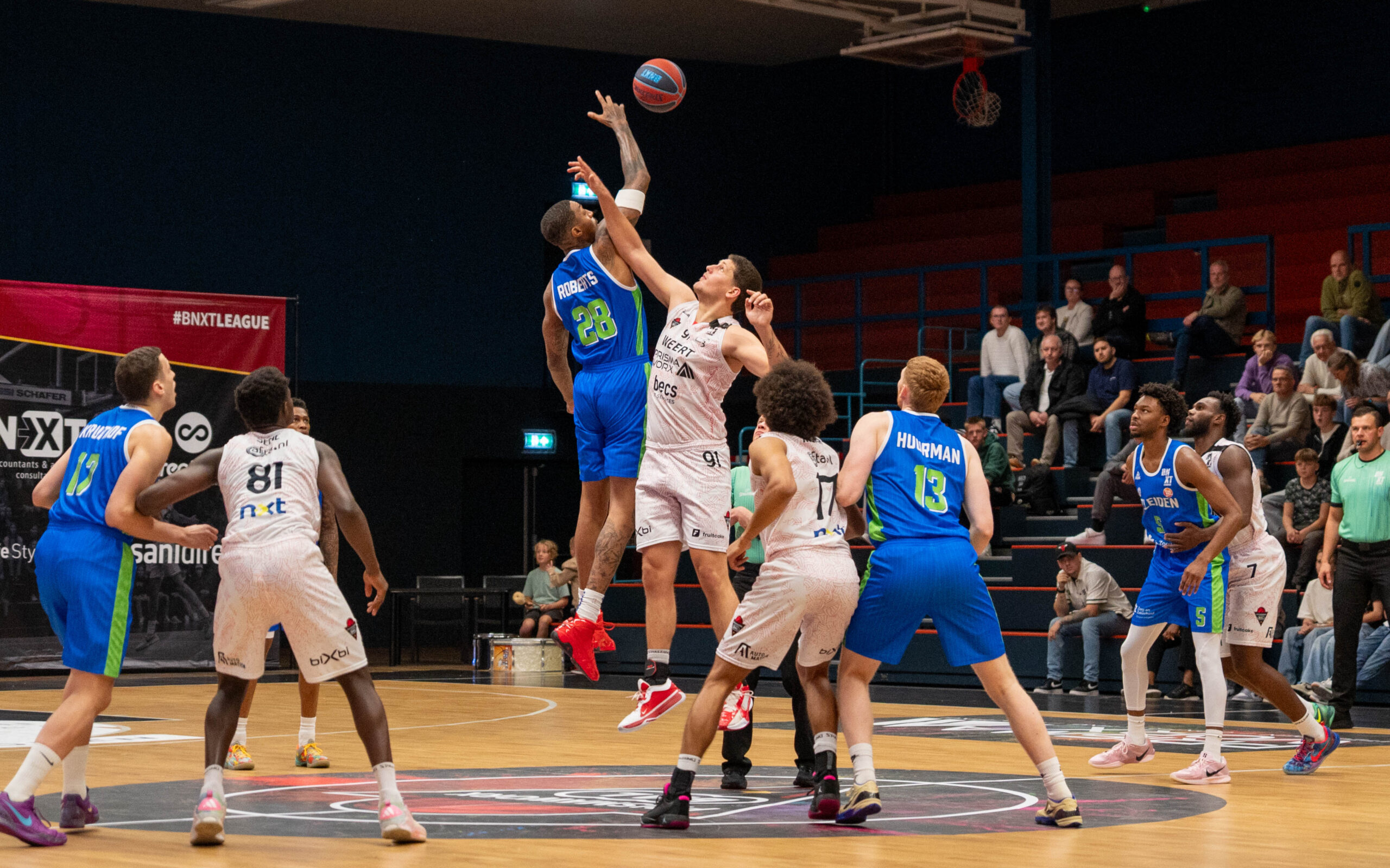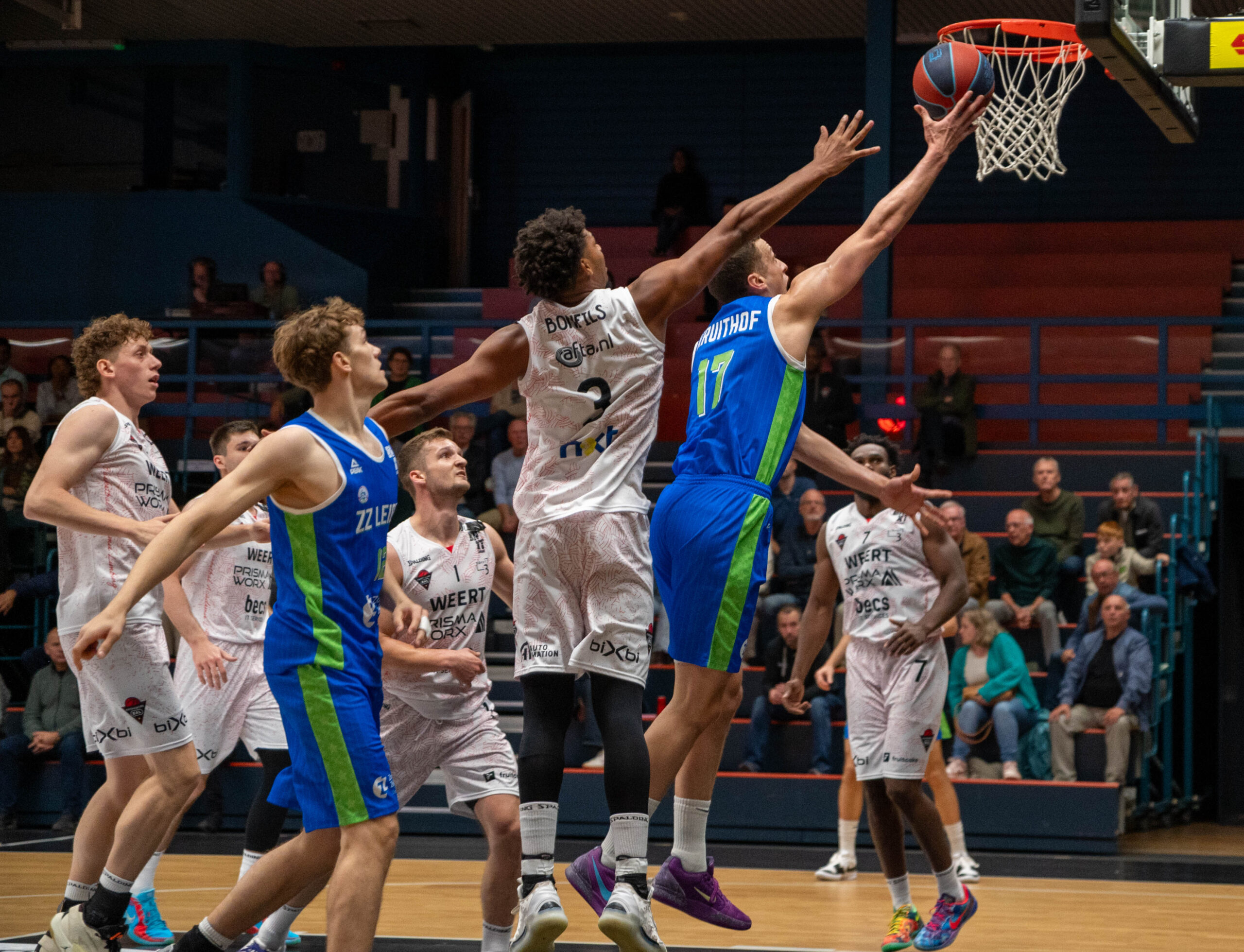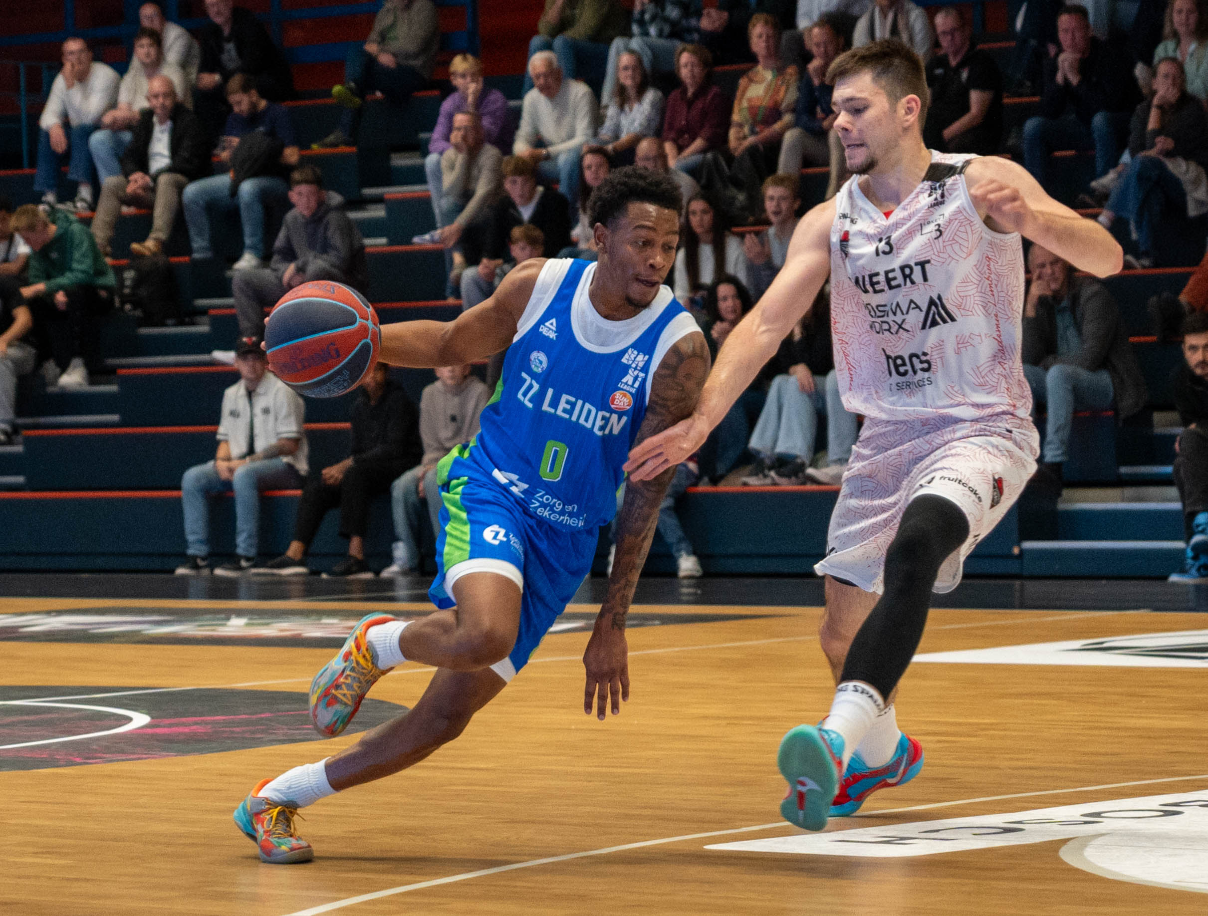 Zorg en Zekerheid Leiden is het nieuwe seizoen van de BNXT League goed begonnen. In Weert stond de Leidse ploeg door een paar driepunters al binnen drie minuten met 2-13 voor tegen PrismaWorx BAL. De thuisploeg was niet in staat om nog terug in de wedstrijd te komen. Via 29-48 bij rust werd het uiteindelijk 64-83. Tyreek Scott-Grayson voelde zich als een vis in het water met 31 punten en 6 steals.
