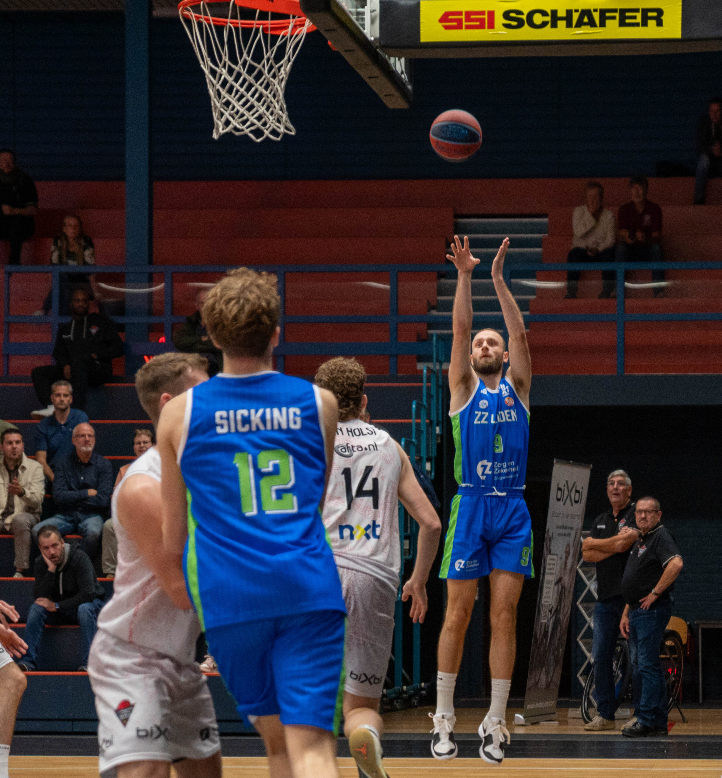 Daarin trok Maconda nog even aan de scorebel, noteerde Sam Huurman zijn eerste punten en was Jibbe Sicking ook goed voor een rake vrije worp. Tegen het einde kwam er nog een 4-point play. Kruithof schoot een driepunter binnen, terwijl er een fout gemaakt werd op Roberts. Die benutte een van twee vrije worpen, waardoor de aanval vier punten voor ZZ Leiden opleverde. Dat was meteen ook het laatste wapenfeit van de Leidse ploeg, die het verdedigend iets beter voor elkaar had dan in de oefenwedstrijden, al is er zeker nog ruimte voor verbetering. Aanvallend lag het tempo lekker hoog en met negen rake driepunters en 14 steals (die 21 punten opleverde) kun je zeker thuiskomen. De eerste punten zijn dus binnen met deze 64-83 overwinning.