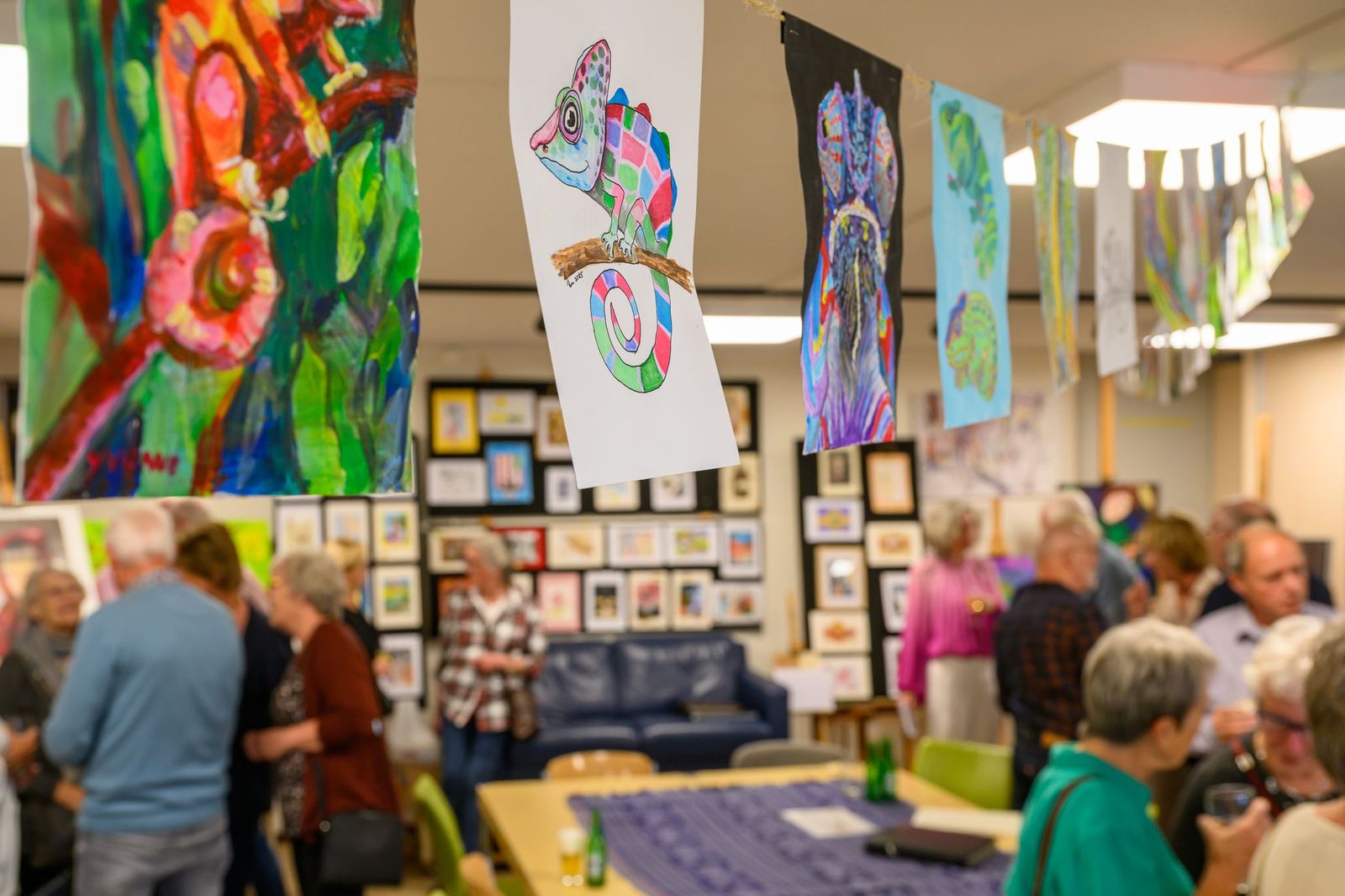 Schildervereniging De Kameleon in Zoeterwoude viert dit jaar haar 50-jarig bestaan. Dit bijzondere jubileum werd afgelopen weekend groots gevierd tijdens de Kunstroute Zoeterwoude. In het atelier van de vereniging konden bezoekers onder meer genieten van een expositie van de Kindercursus, de producten van de ‘Rookexpositie’ en een feestelijke Kameleon-Kunstslinger, die alle leden samen maakten.