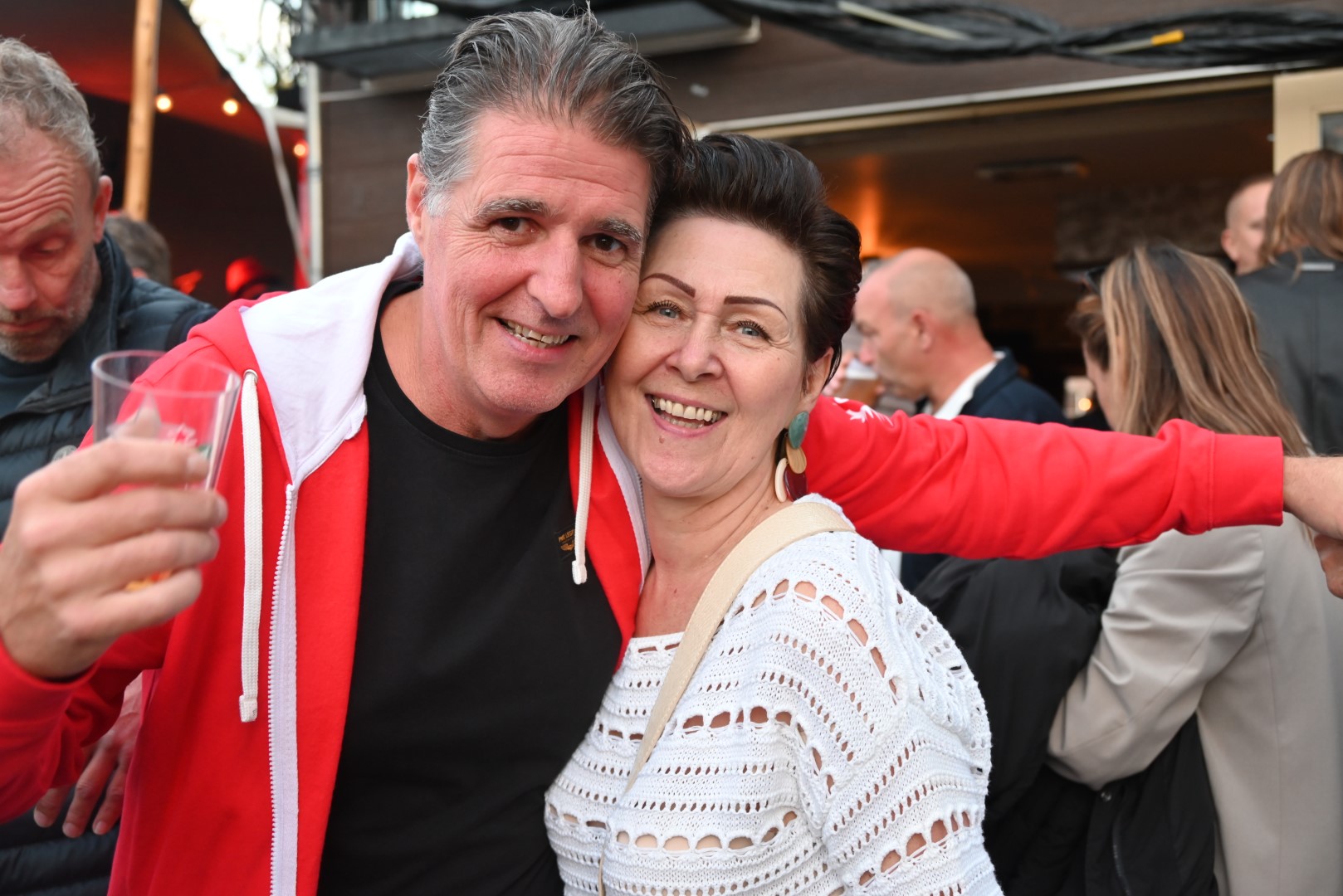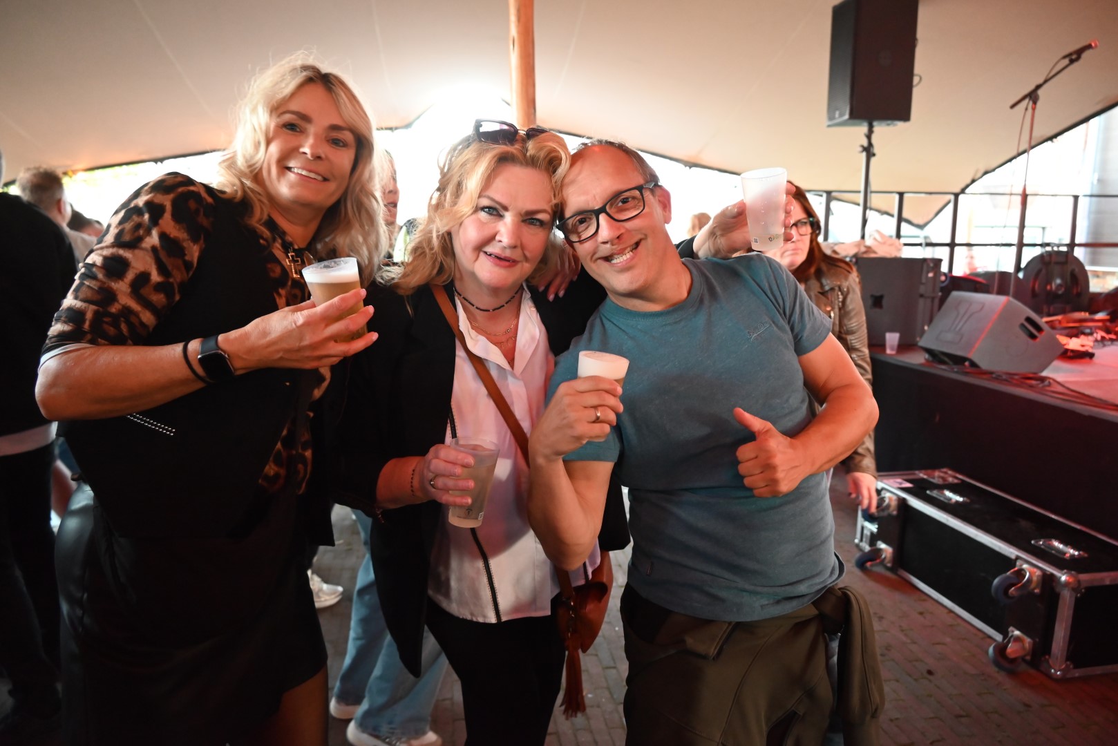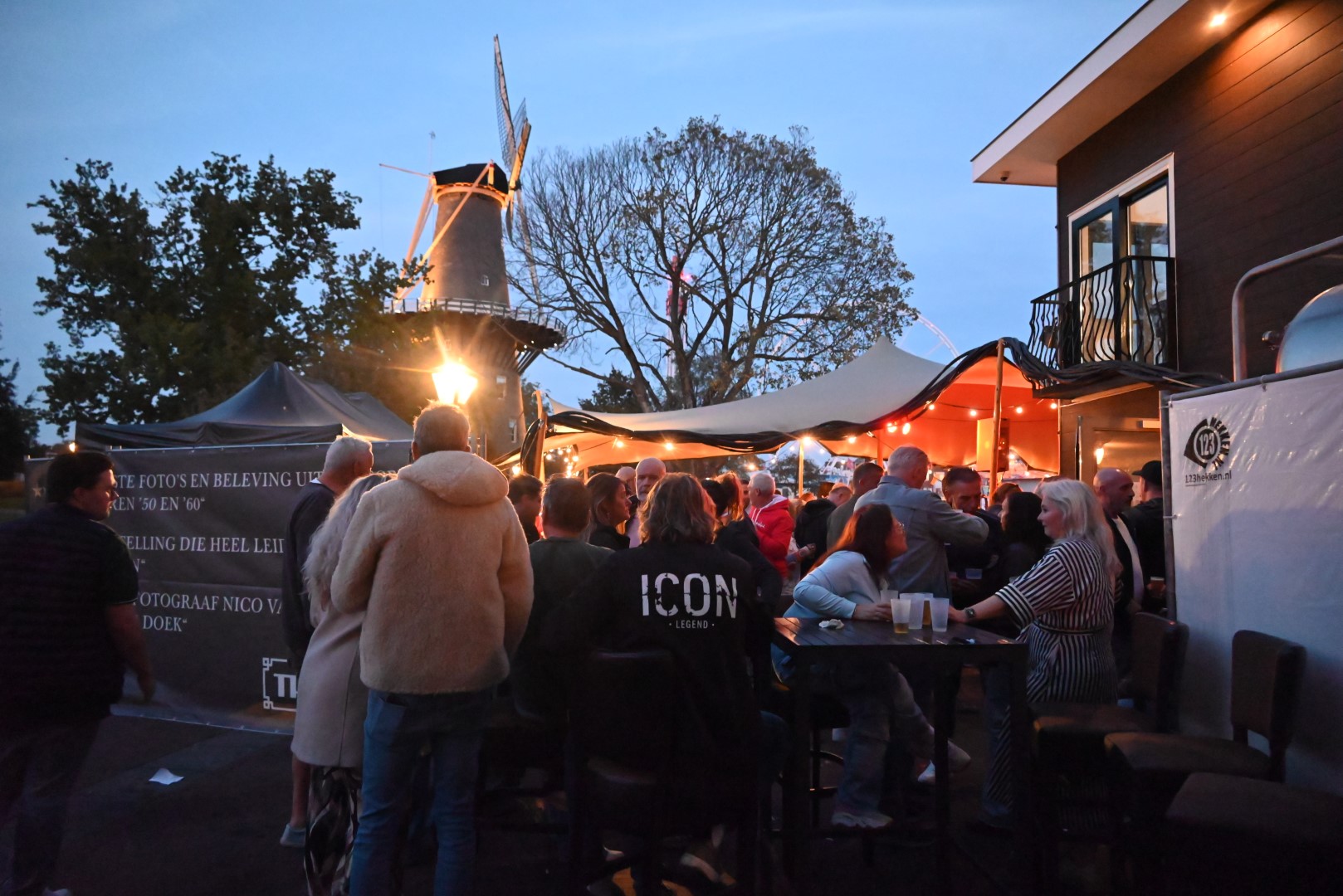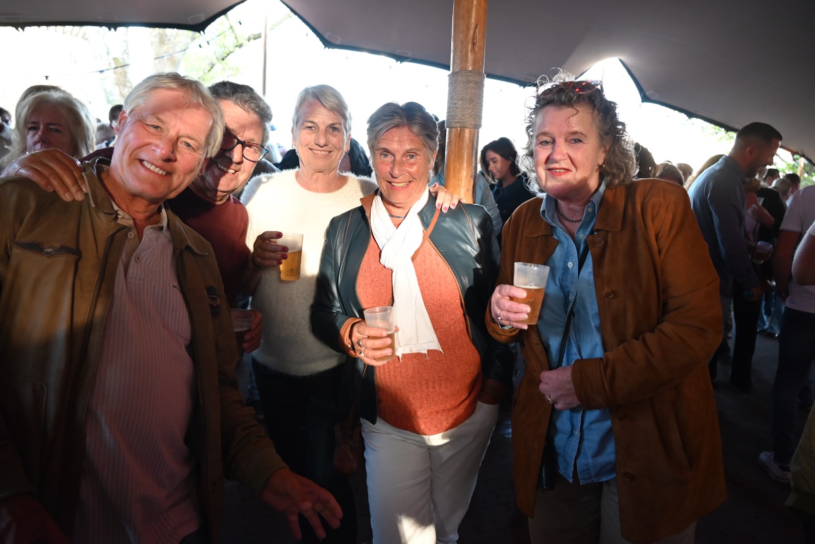 Het was afgeladen vol bij De Pre Oktober Party op het terras van petit café restaurant het Valkje, tijdens de optredens van Bart van Schoonderwoerd den Bezemer, Gerard de Water en absolute topper Rubberen Henkie.