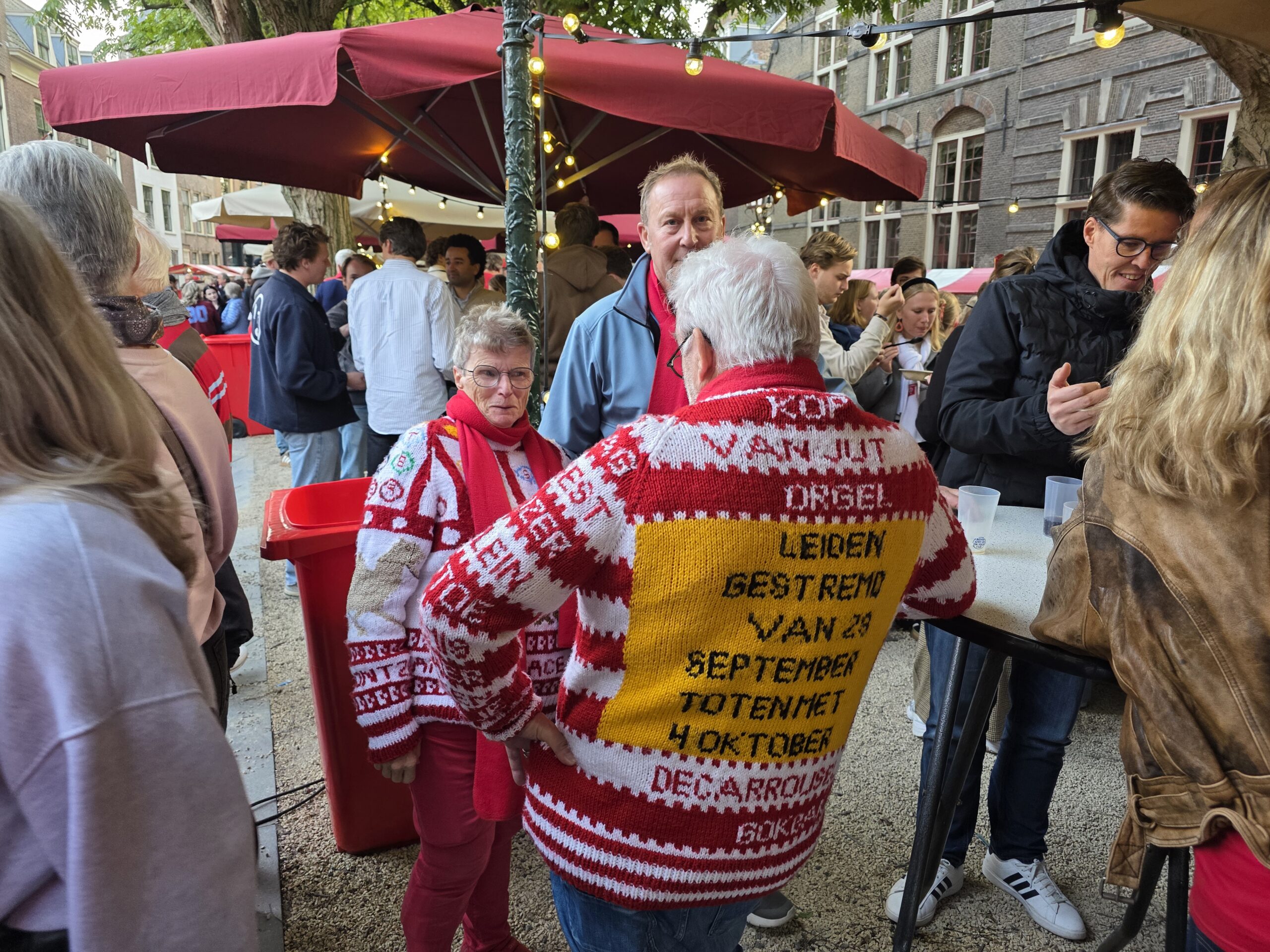 Voordat de ene helft van Leiden bij de Taptoe naar de andere helft gaat kijken, worden de magen gevuld met de hutspot die net als elk jaar uit Wassenaar komt. Bijna iedereen koos voor de reguliere variant, maar ook werden er enkele honderden vegetarische porties uitgedeeld.