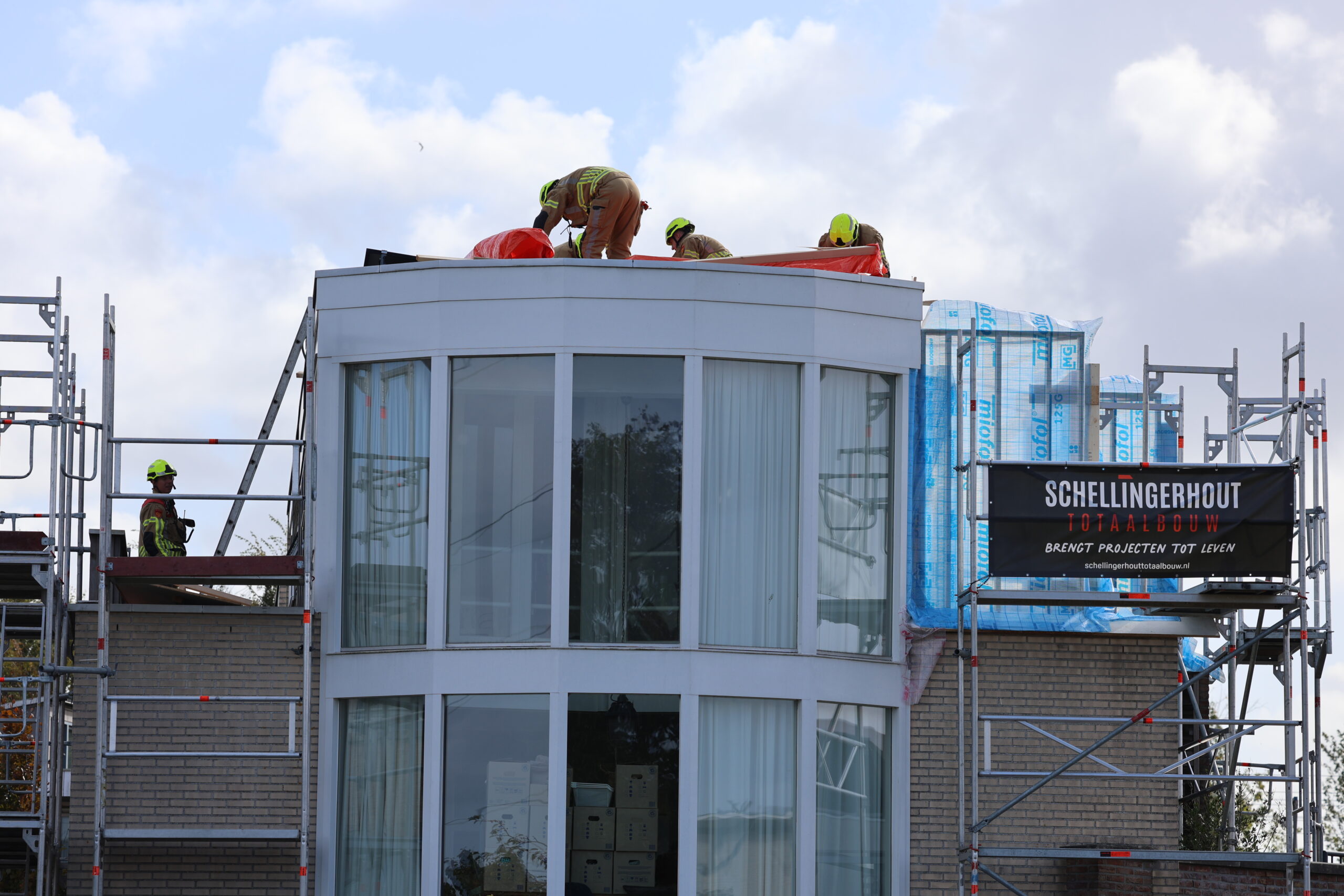 Het begon in de ochtend al in Oegstgeest. Daar kwam bij een woning aan het Eli Heimanshof een deel van de dakbedekking los. De woning stond vanwege een verbouwing in de steigers. De brandweer heeft de boel samen met de aannemer vastgezet. (Foto: Regio15)