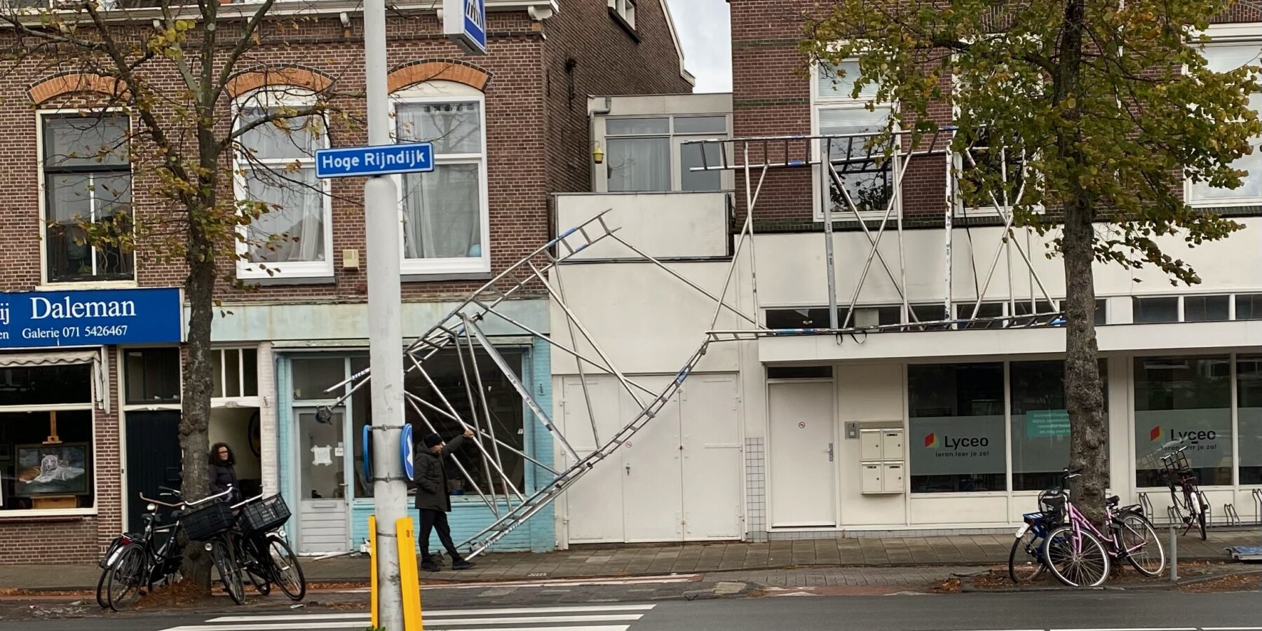 In Leiderdorp kwam bij Winkelhof een metershoge ventilatieschacht deels naar beneden. De buis brak door de harde wind en bleef hangen op het dak van het winkelcentrum. De brandweer heeft ook hier de situatie veiliggesteld.