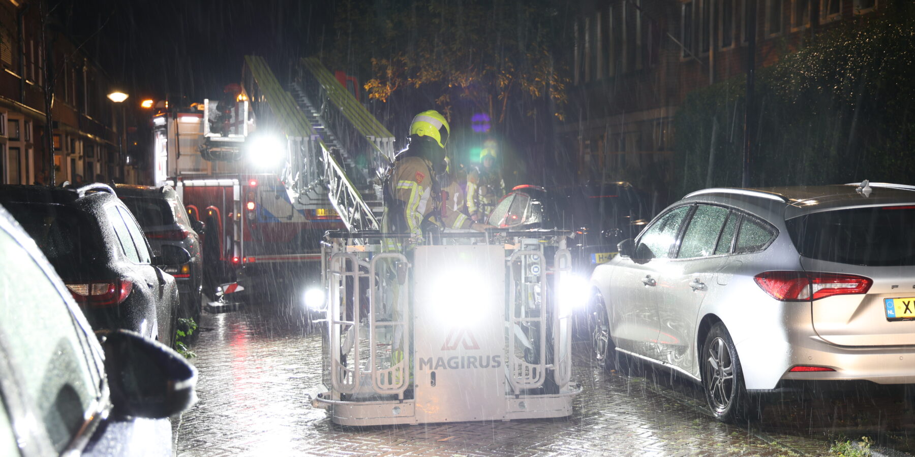 In de stromende regen heeft de brandweer vrijdagavond rond 20.30 uur een schoorsteenbrandje bij een woning in de Balistraat in Leiden geblust.