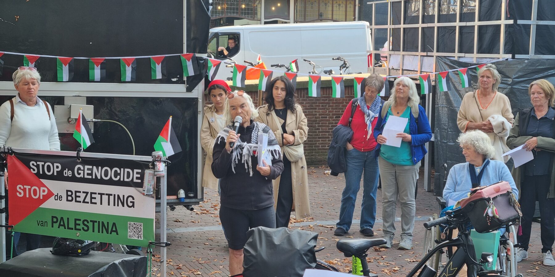 Met groot applaus werd Remmerswaal ontvangen. Zoals elke dag op haar fietstocht hield ze een speech, waarin ze vertelde waarom ze ging fietsen, en ook over het leed van de Palestijnen . “We moeten het geen conflict noemen, maar een genocide.”
