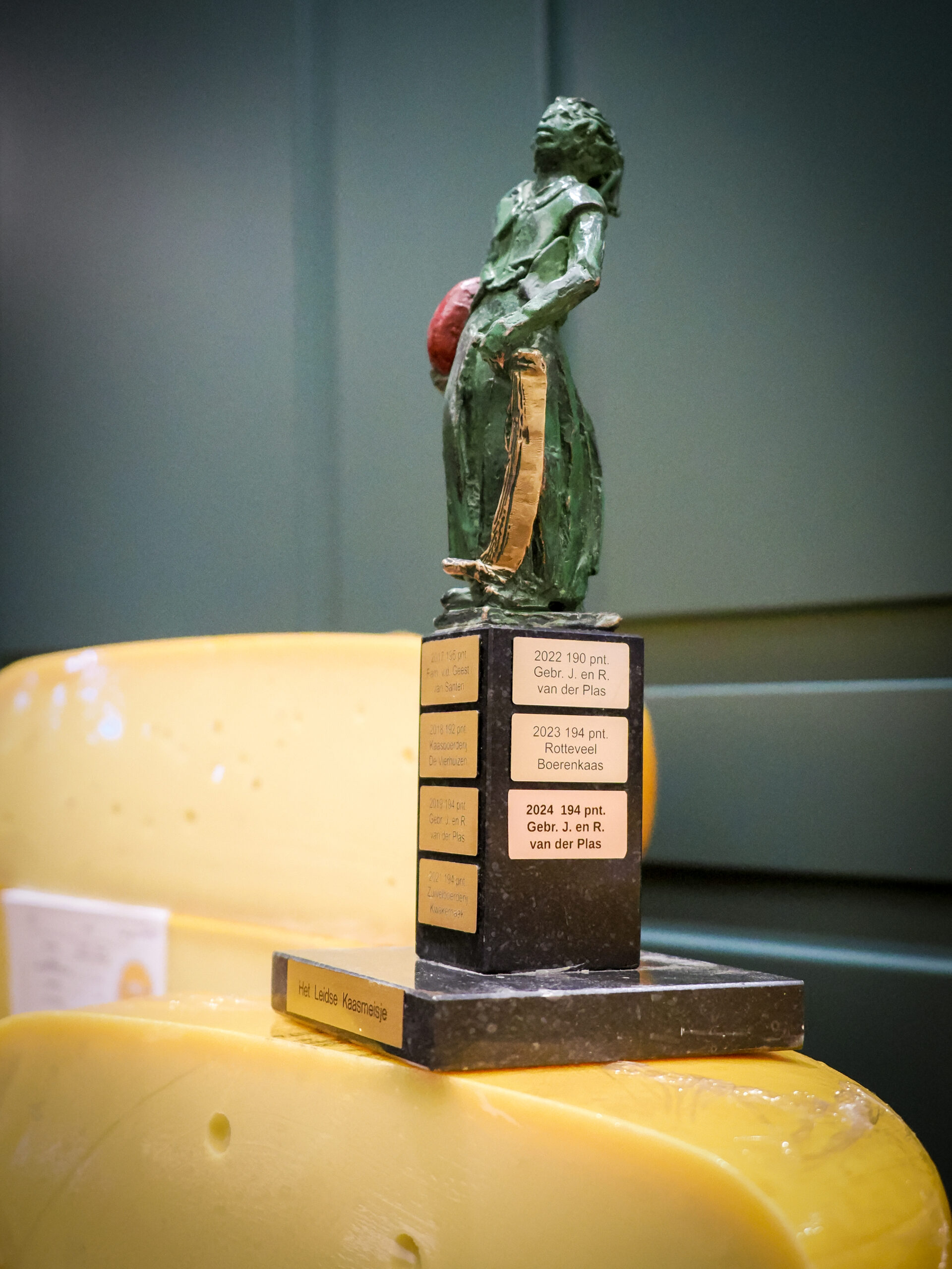 De jonge BoerenLeidse van Zuivelboerderij Kwakernaak uit Oud Ade werd categoriewinnaar met 92 punten. Het Leidse Kaasmeisje zagen ze met één punt verschil aan hun neus voorbij gaan. Bij de specialiteitenkazen behaalde kaasboerderij De Annahoeve uit Sassenheim de hoogste score met een Oude Boerenkomijn van 93 punten.