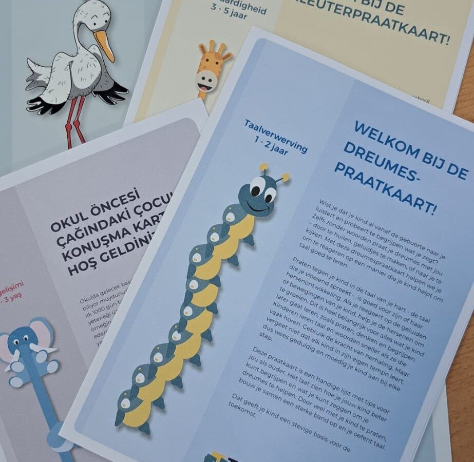 De praatkaarten geven ouders inzicht in de taalontwikkeling van hun kind en biedt praktische tips om thuis actief met taal aan de slag te gaan. De kaarten zijn momenteel beschikbaar in vijf talen: Nederlands, Engels, Turks, Arabisch en Tigrinya (Eritrees), zodat zoveel mogelijk ouders bereikt worden.