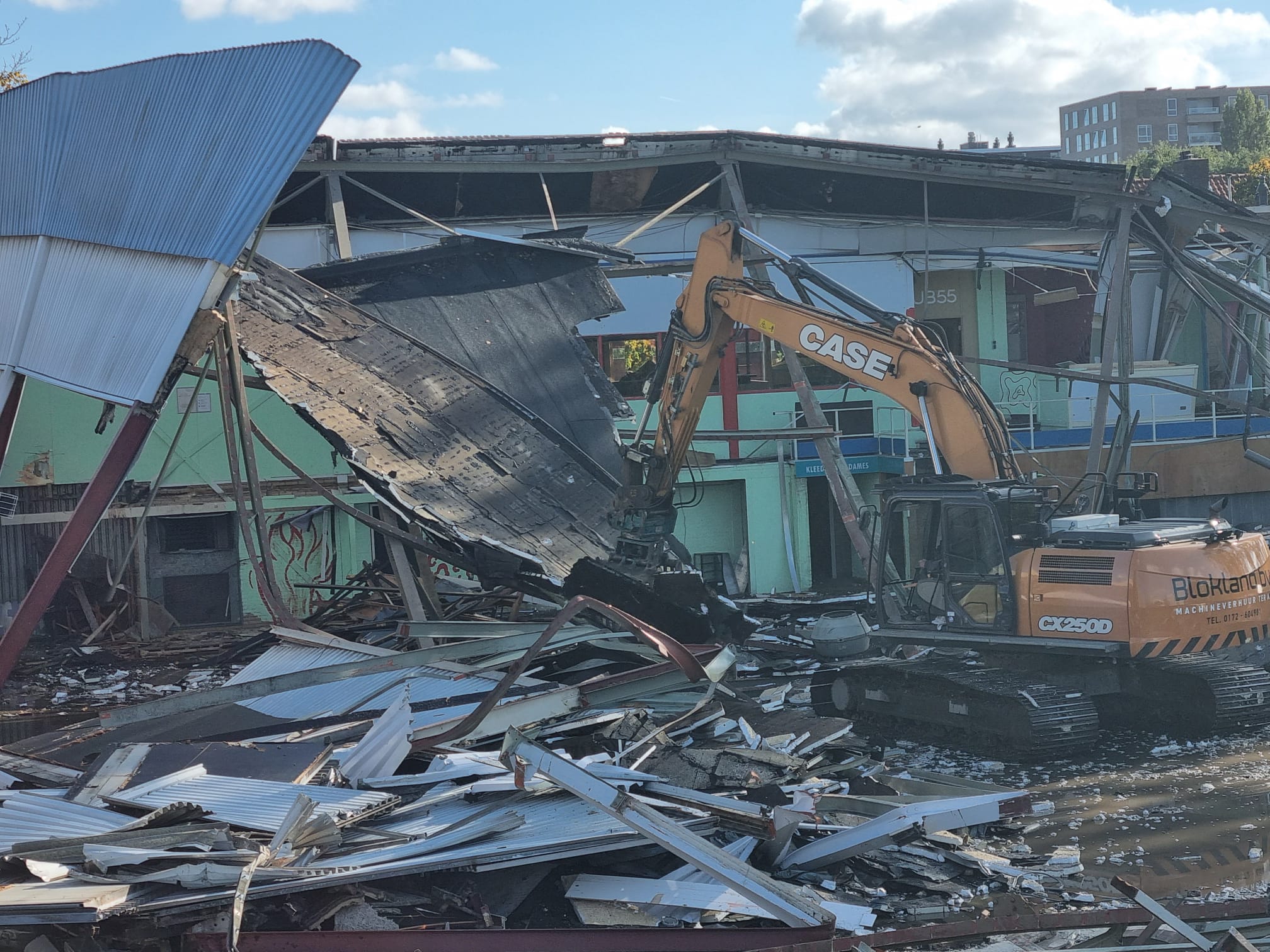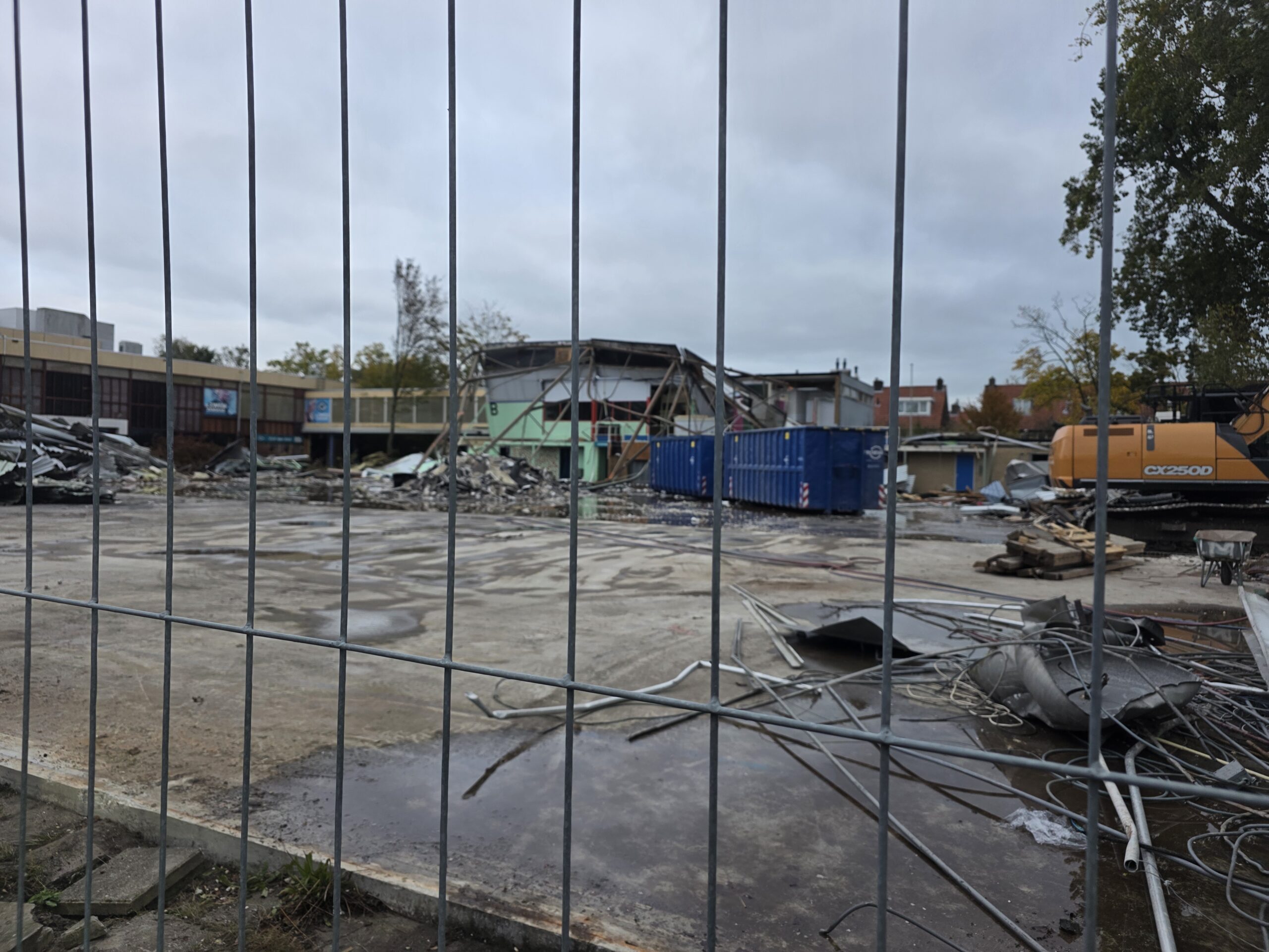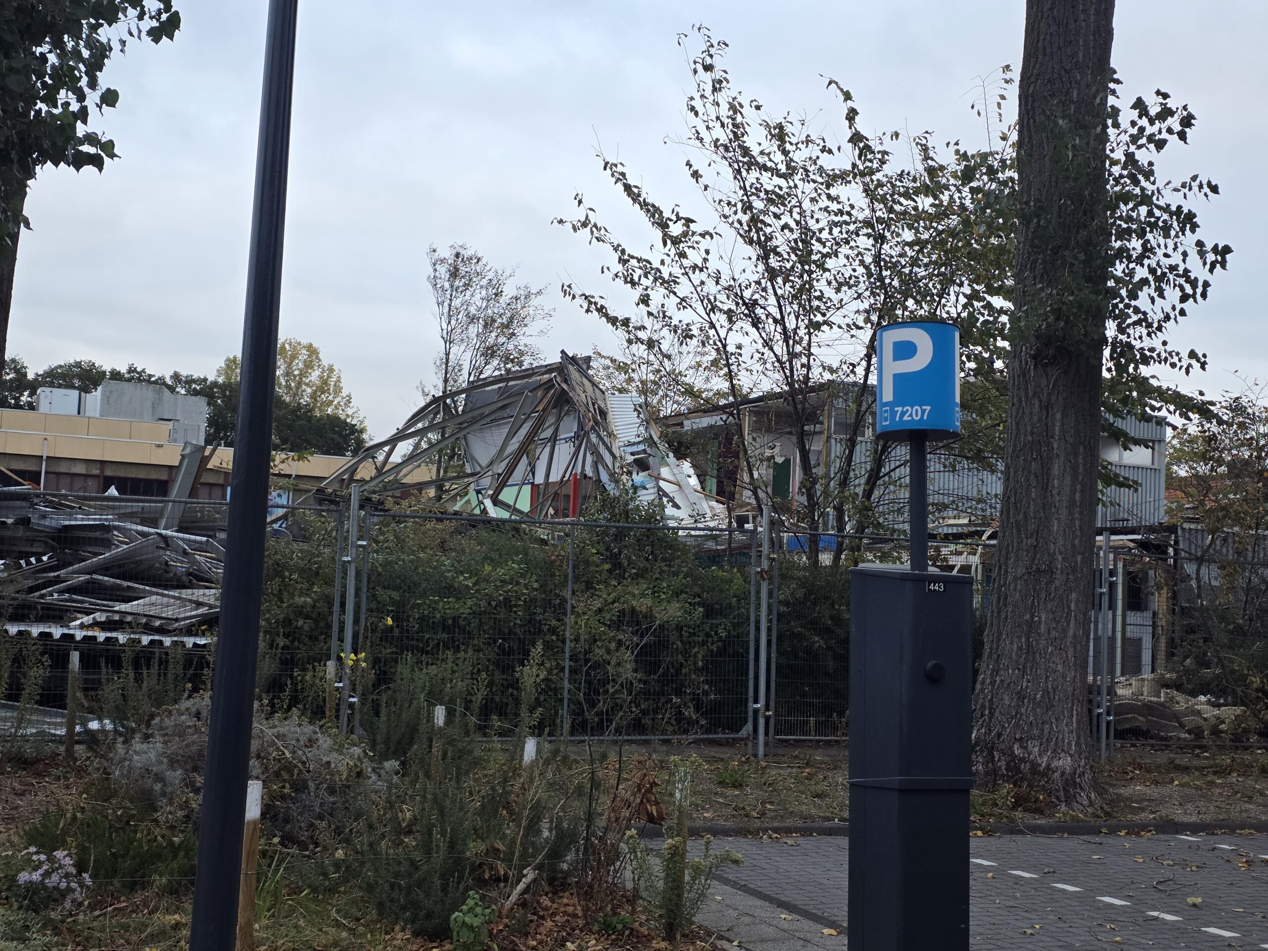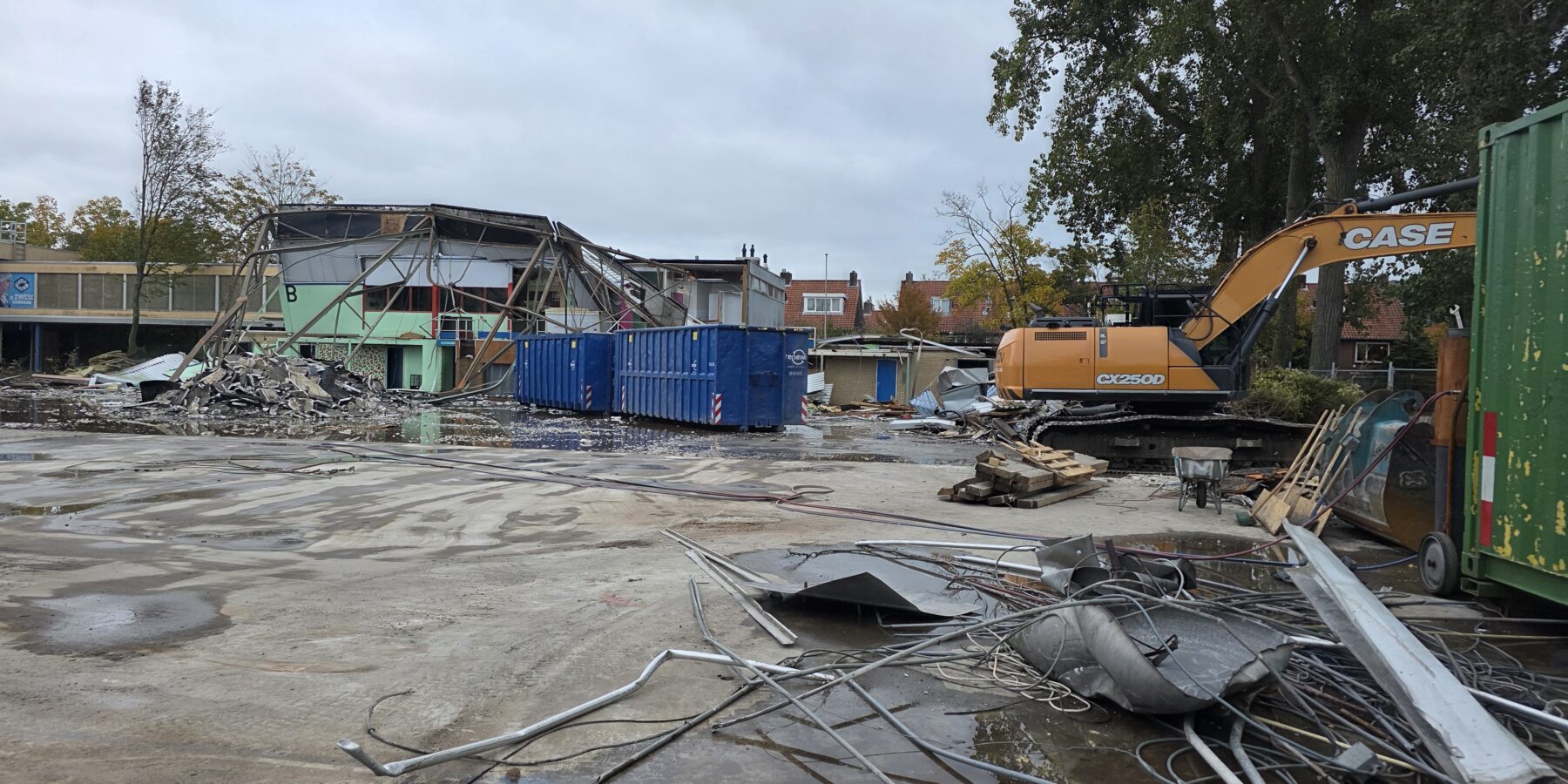 Begin juli werd begonnen met de sloop van de Vijf Meihal aan de Boshuizerlaan in Leiden Zuidwest. De eerste maanden was er nog niet zoveel te zien en ook nu staat de voorgevel nog overeind. Daarachter is de oude sporthal de afgelopen dagen echter vrijwel verdwenen.