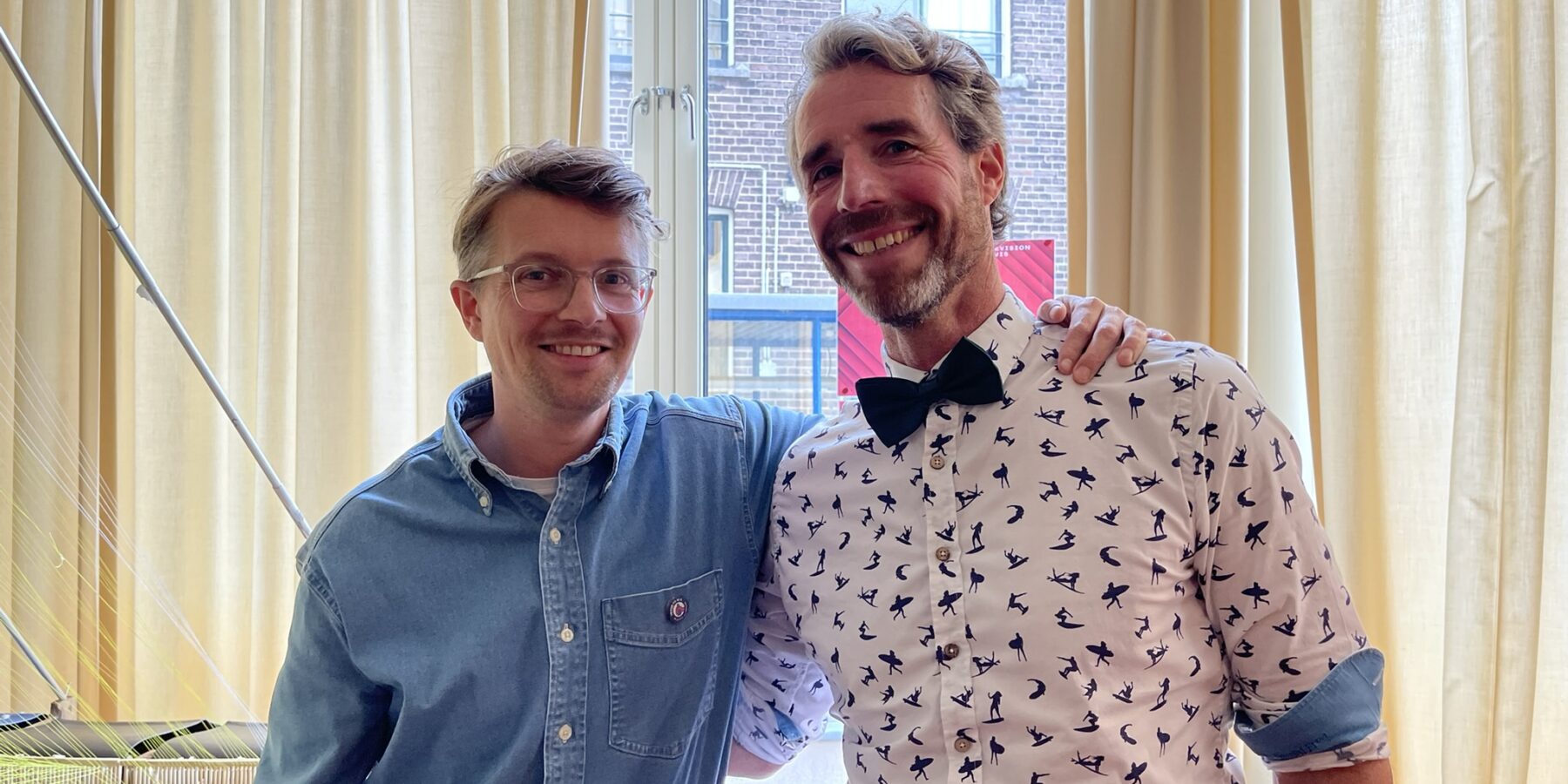 Verslaggever Bram Aartman in gesprek met Merijn Tinga, en regisseur Jasper Strik.