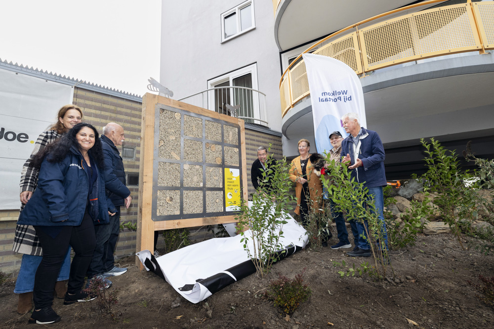 Het nieuwe groen rondom de flats en het insectenhotel vormen de symbolische afsluiten van de werkzaamheden. “Ze zorgen niet alleen voor meer biodiversiteit, maar ook voor een prettigere leefomgeving. Deze renovatie laat zien wat er mogelijk is als bewoners, corporatie en aannemer echt samenwerken,” zegt Jet Bicker Caarten, regiomanager Leiden bij Portaal. “We hebben niet alleen de woningen verbeterd, maar ook de buurt een impuls gegeven.”