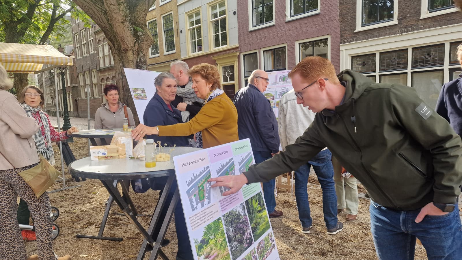 Hoe moet de nieuwe Kaasmarkt eruit gaan zien? Die vraag kregen omwonenden zaterdagmiddag voorgelegd bij een stand van de gemeente Leiden op de Hooglandse Kerkgracht, op een steenworp afstand van de Kaasmarkt.