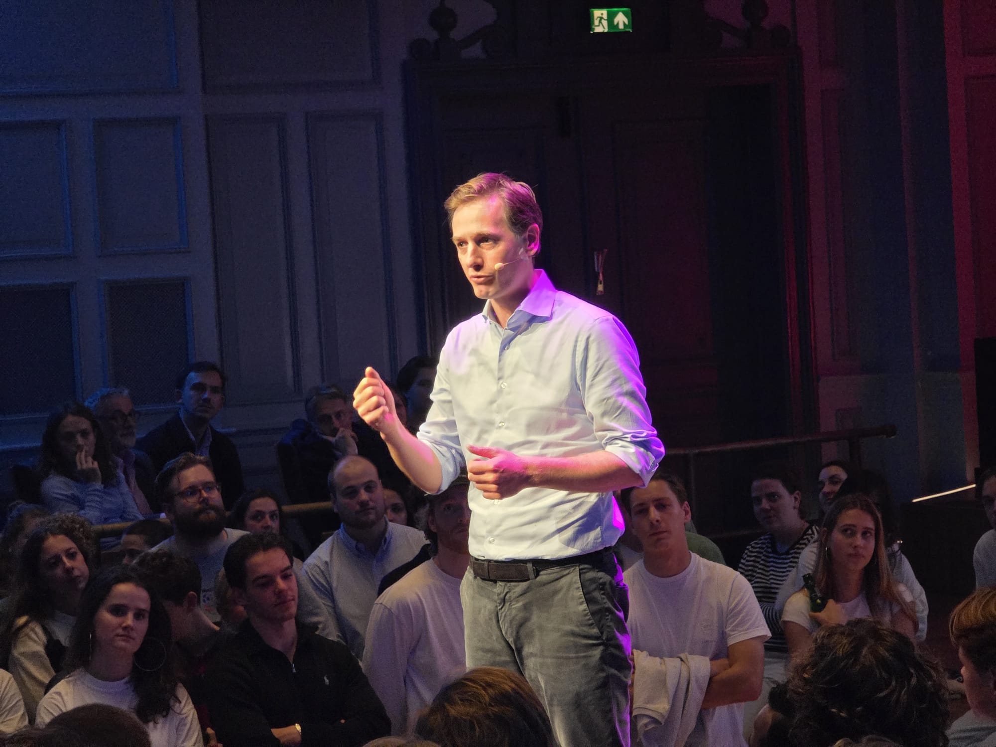 19.43 Het debat wordt vanavond aan elkaar gepraat door podcastmaker Simon van Teutem. Hij is ook actief voor de Correspondent als columnist.