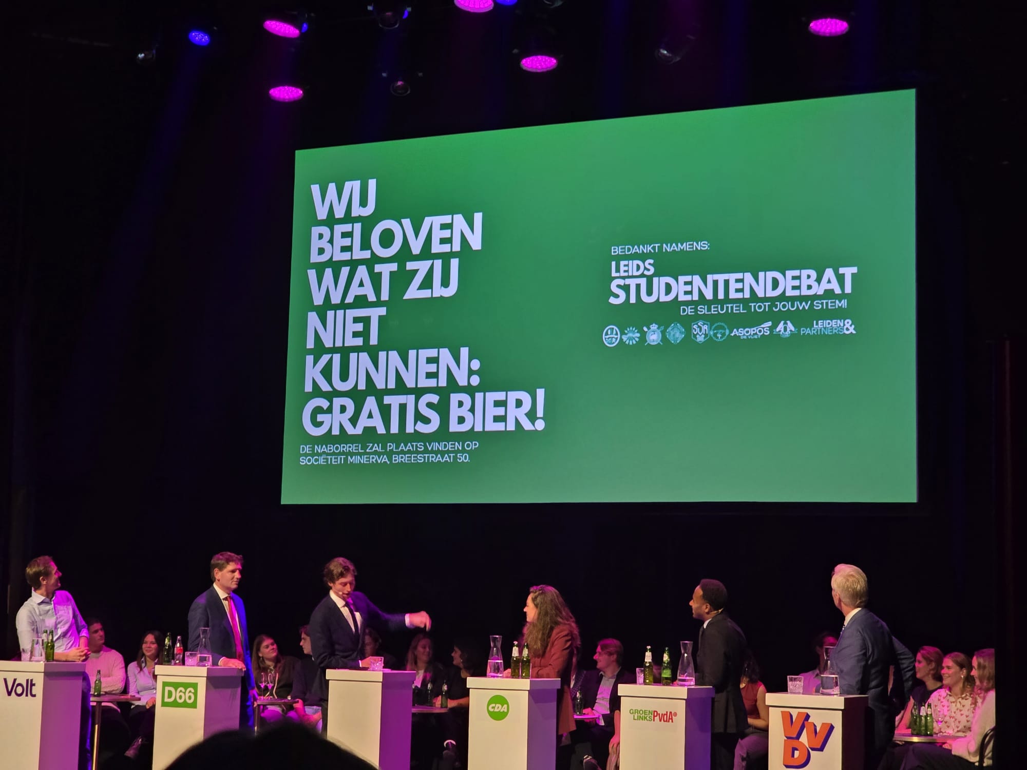 19.45: Het debat wordt voor en door studenten georganiseerd. Maar ook de lokale politiek is erbij. Zoals, toepasselijkerwijs, de fractie van Studenten voor Leiden.
