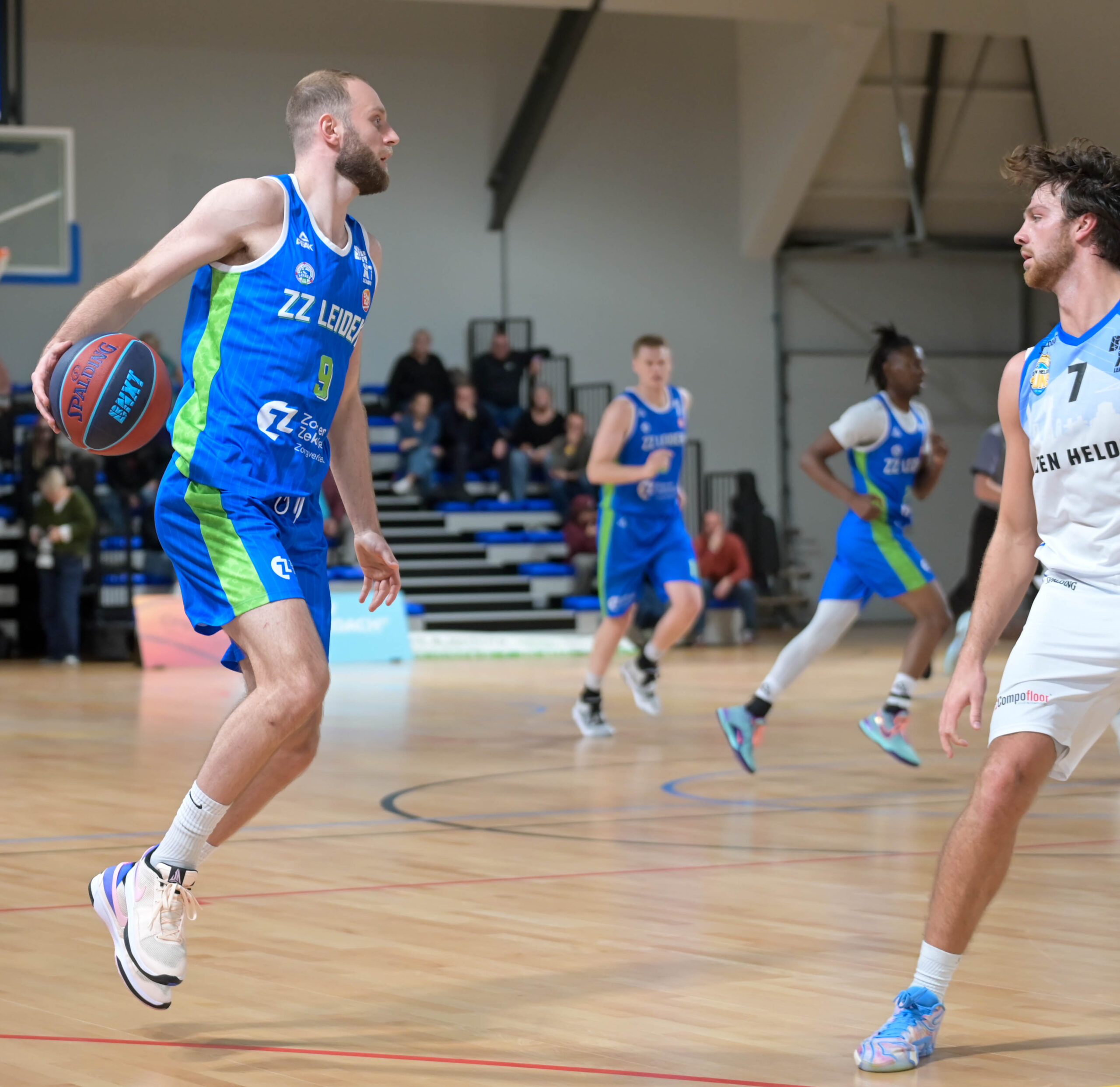 Lucas Kruithof was goed voor 21 punten, 5 driepunters en 8 rebounds. Die 21 punten was zijn hoogste score in het eerste team van ZZ Leiden.Javian McCollum eindigde op 18 punten. Tyreek Scott-Grayson sloot af met 16 punten en 4 steals. Roeland Schaftenaar tekende voor 12 punten en 8 rebounds. Bij Den Helder Suns kwam Bryan Antoine tot 19 punten.