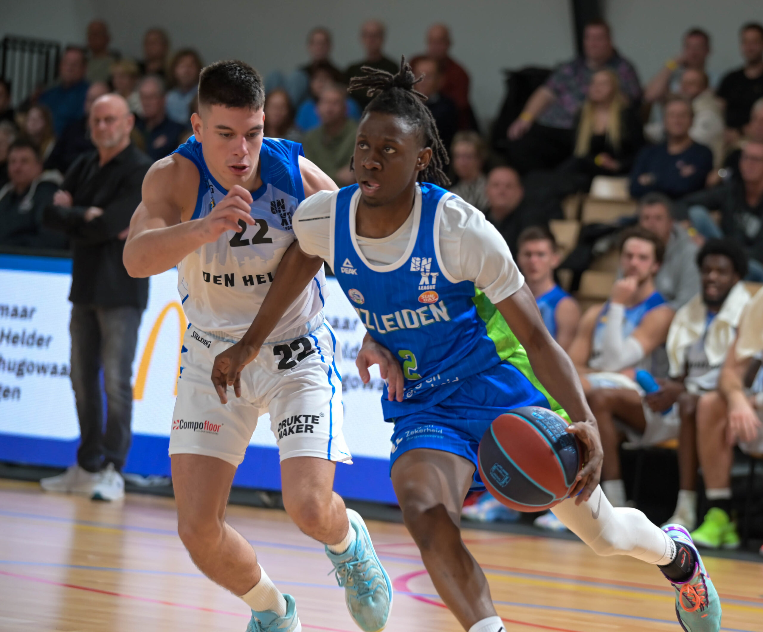 Zorg en Zekerheid Leiden is na de vijfde wedstrijd in de BNXT League nog steeds ongeslagen. De Leidse ploeg zette Den Helder Suns in een sterk tweede kwart op achterstand. Bij rust was het verschil 15 punten (34-49), aan het eind van de reguliere speeltijd 16 punten: 68-84.
