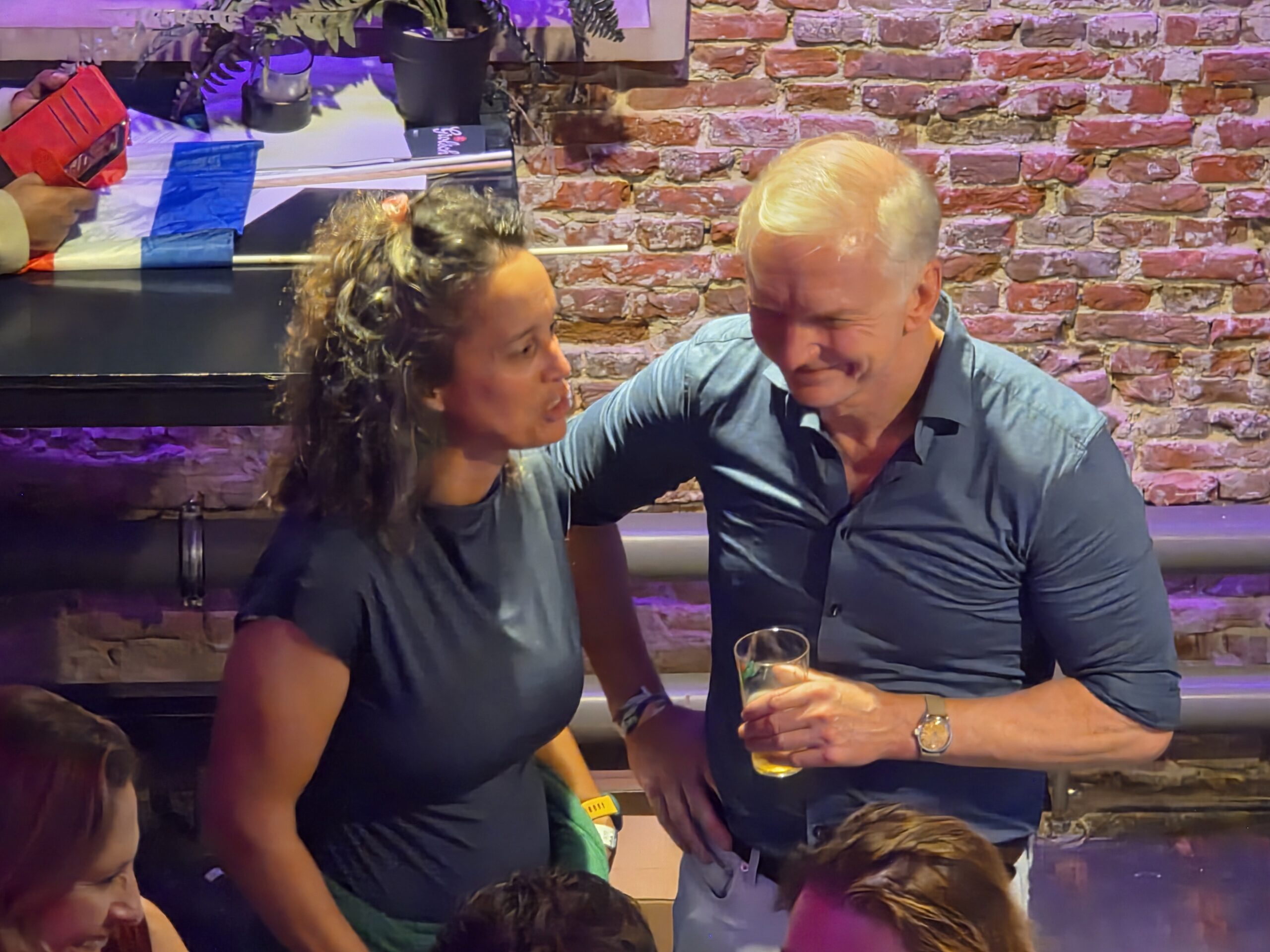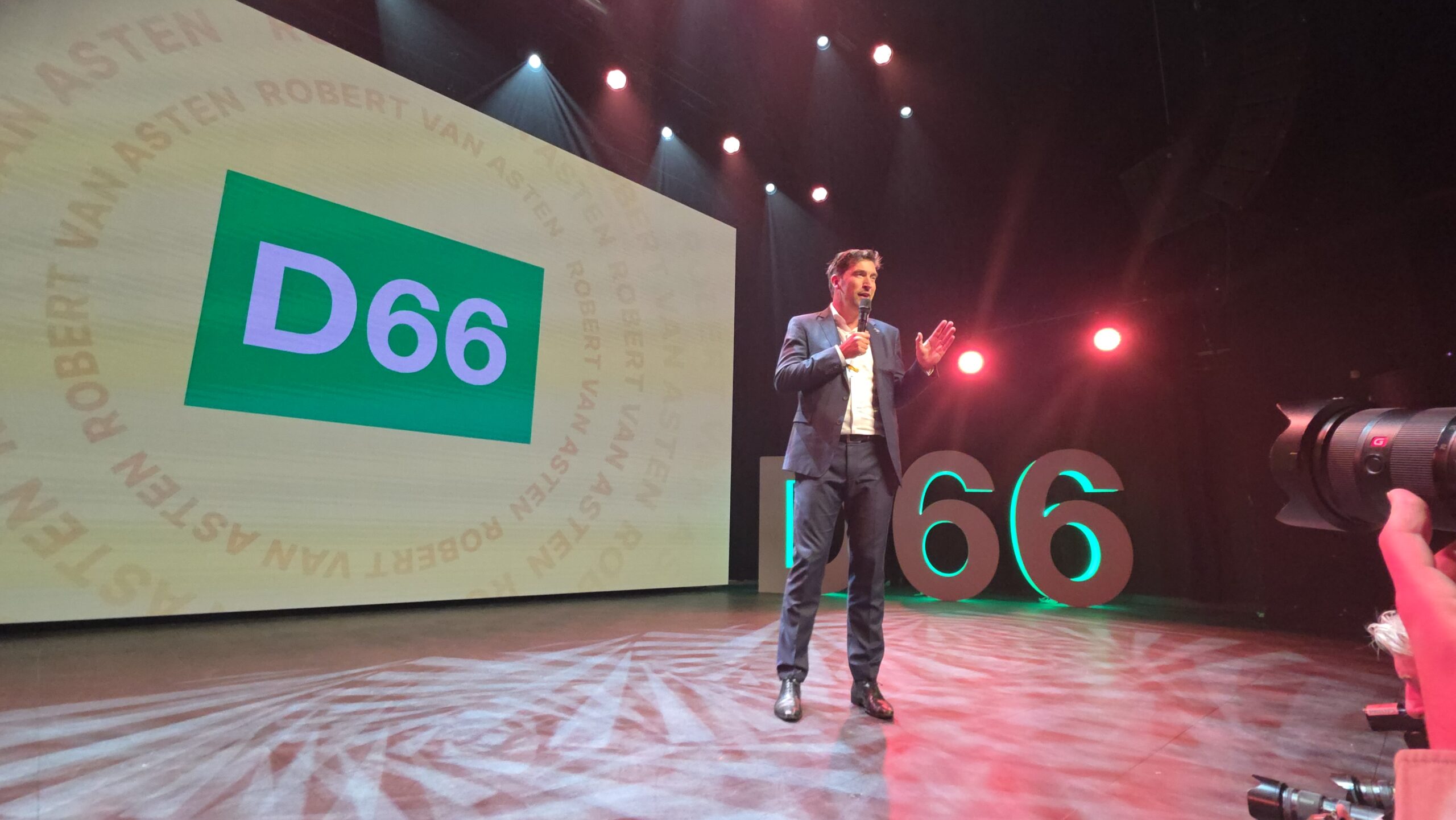 De avond werd heel toepasselijk om precies 20.25 uur afgetrapt door de Leidse D66-wethouder Wietske Veltman die overigens ook haar verjaardag vierde. “Dit is het mooiste cadeautje dat ik ooit heb gehad.” Vervolgens kwam campagneleider Robert van Asten naar voren. De Haagse wethouder verruilt de lokale politiek nu voor de Tweede Kamer.