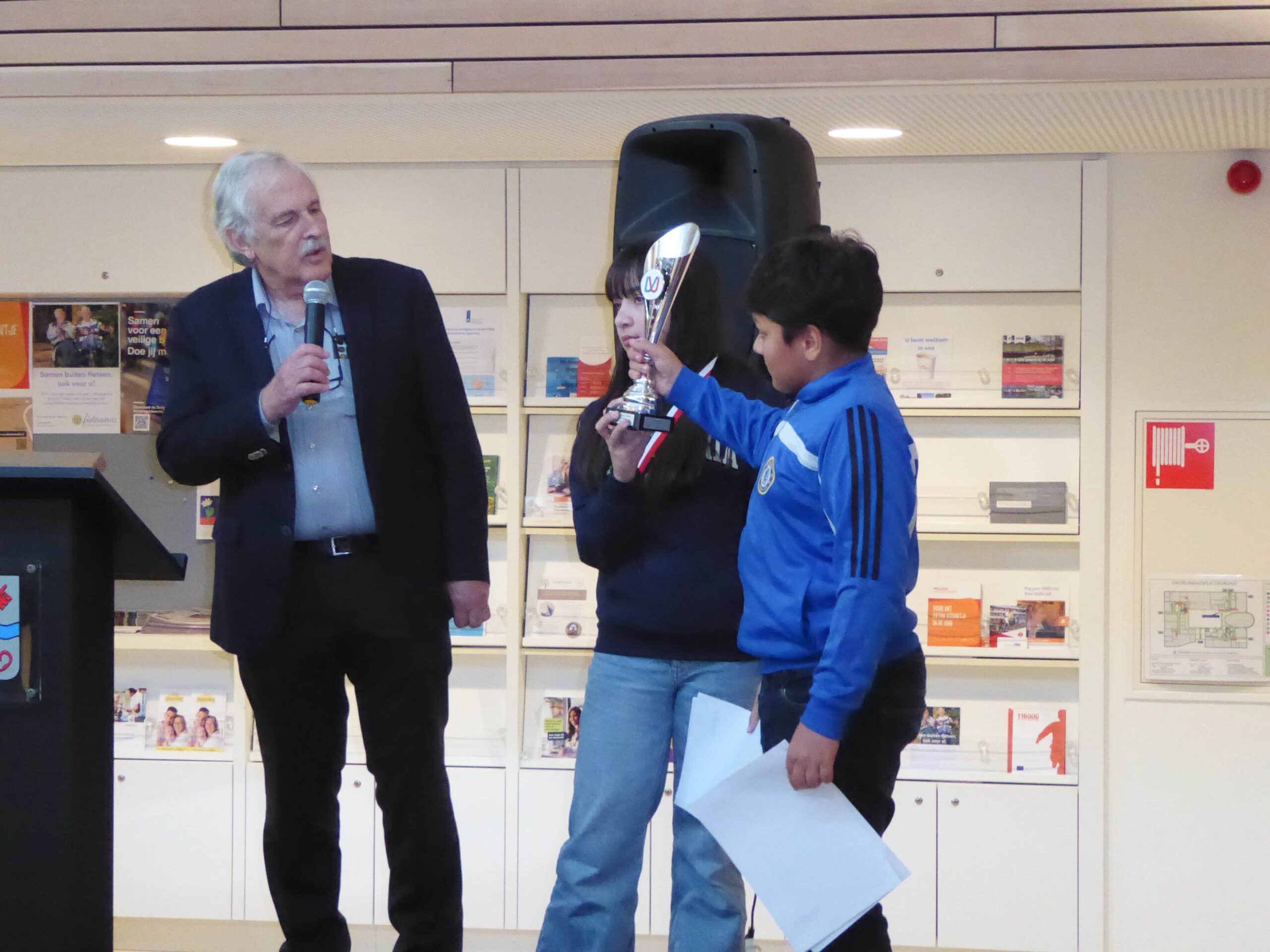 De wisseltrofee werd gewonnen door de Prins Willem Alexander school: de twee deelnemers van deze school maakten samen één fout. De vertegenwoordiger van De Hobbit, winnende school in 2024, overhandigde de beker aan het team van De Schakel. Tot de schoolprijs hoort ook een boek voor de schoolbibliotheek, zoals ieder jaar beschikbaar gesteld door Boekhandel De Kler.