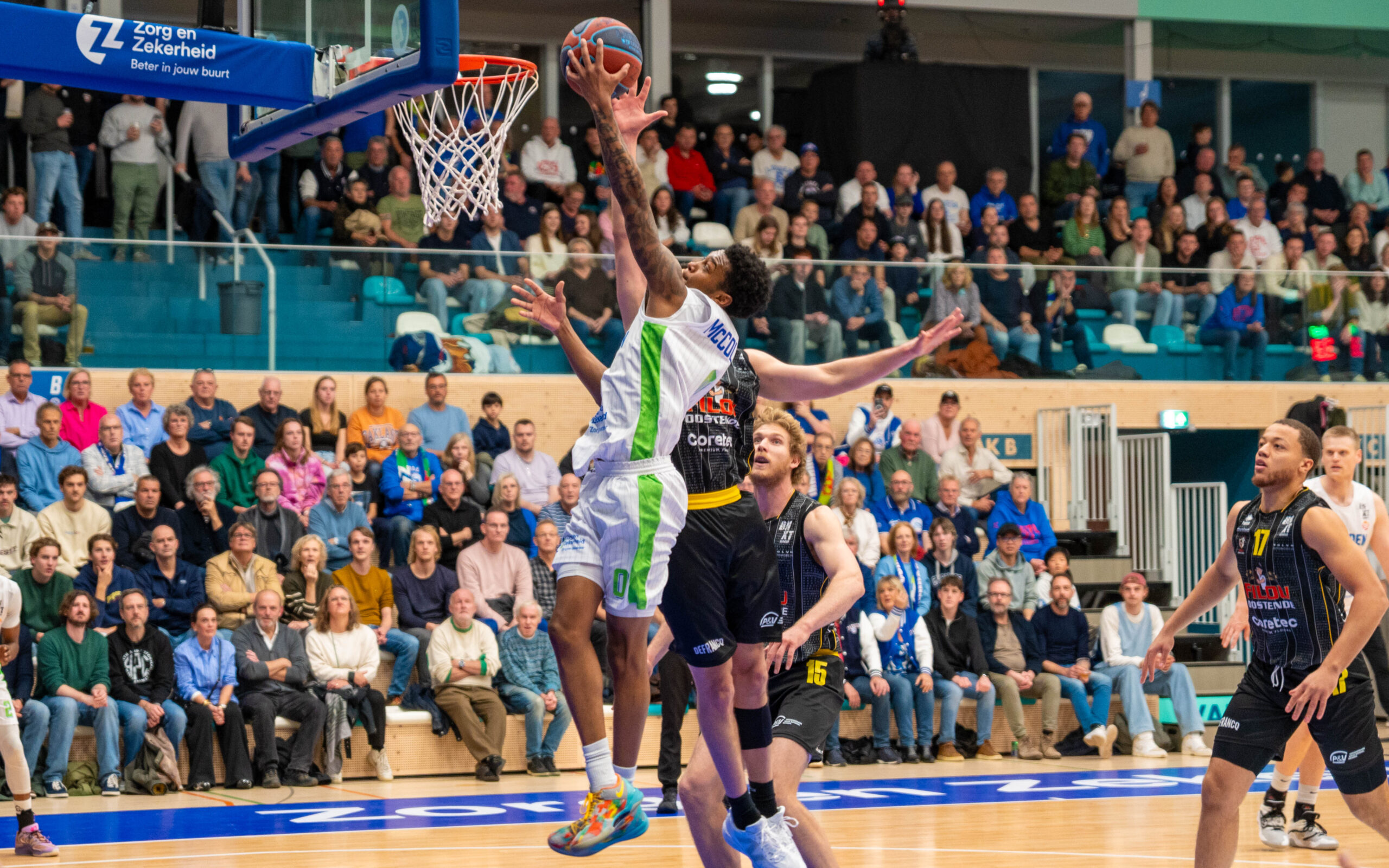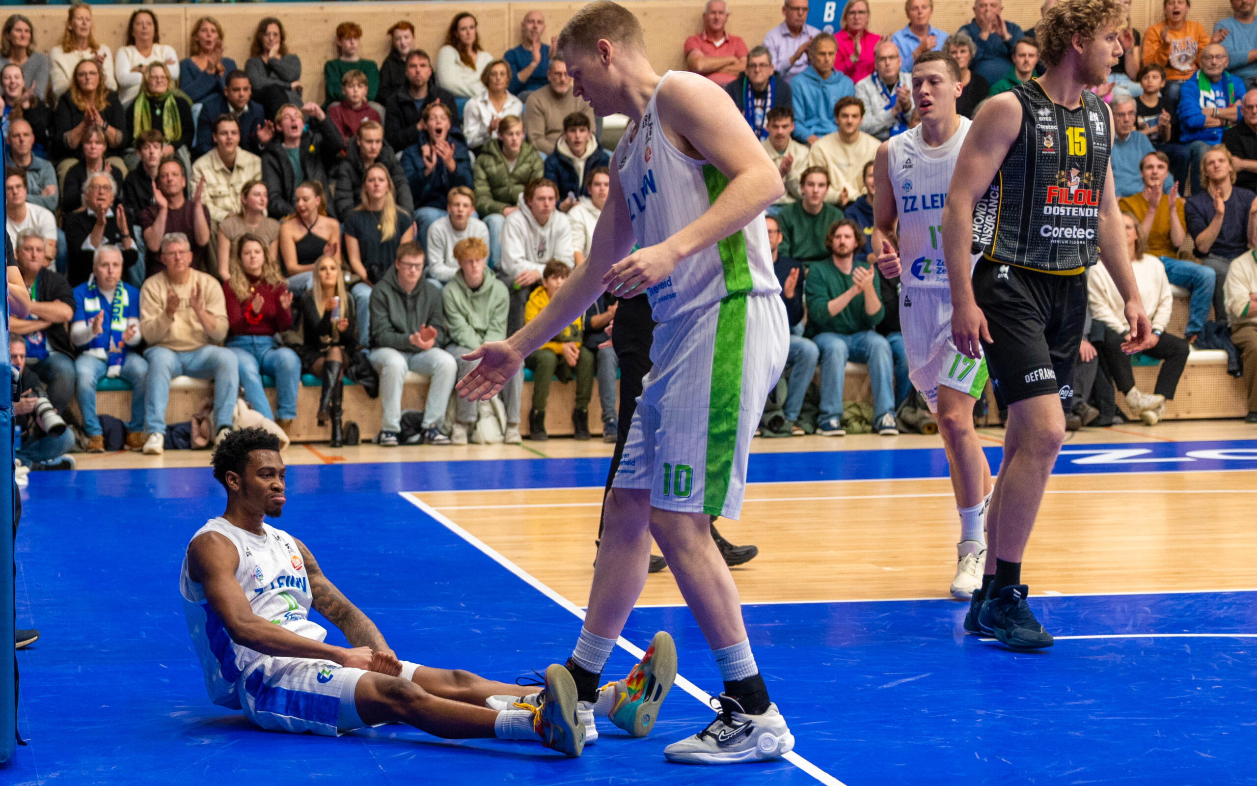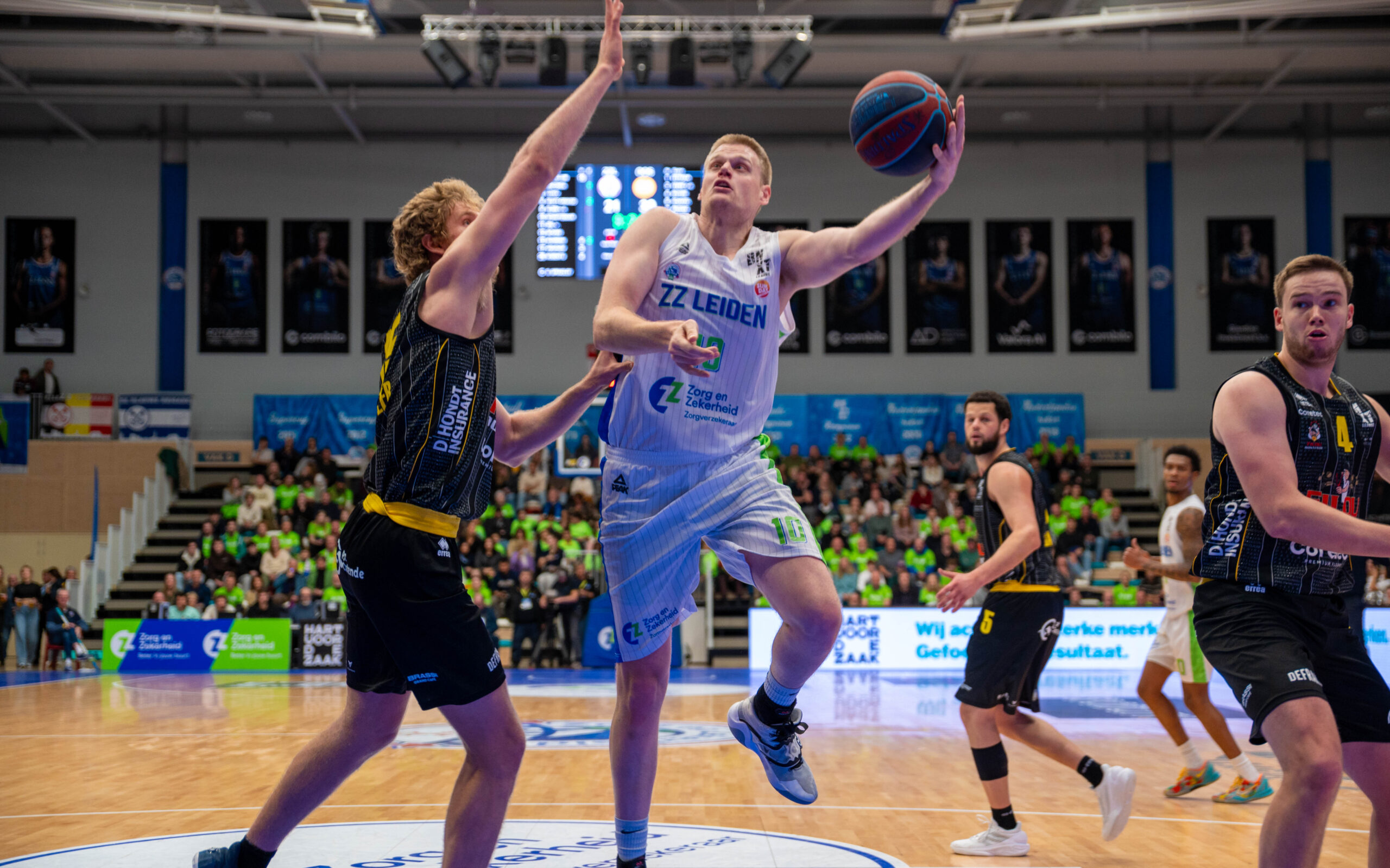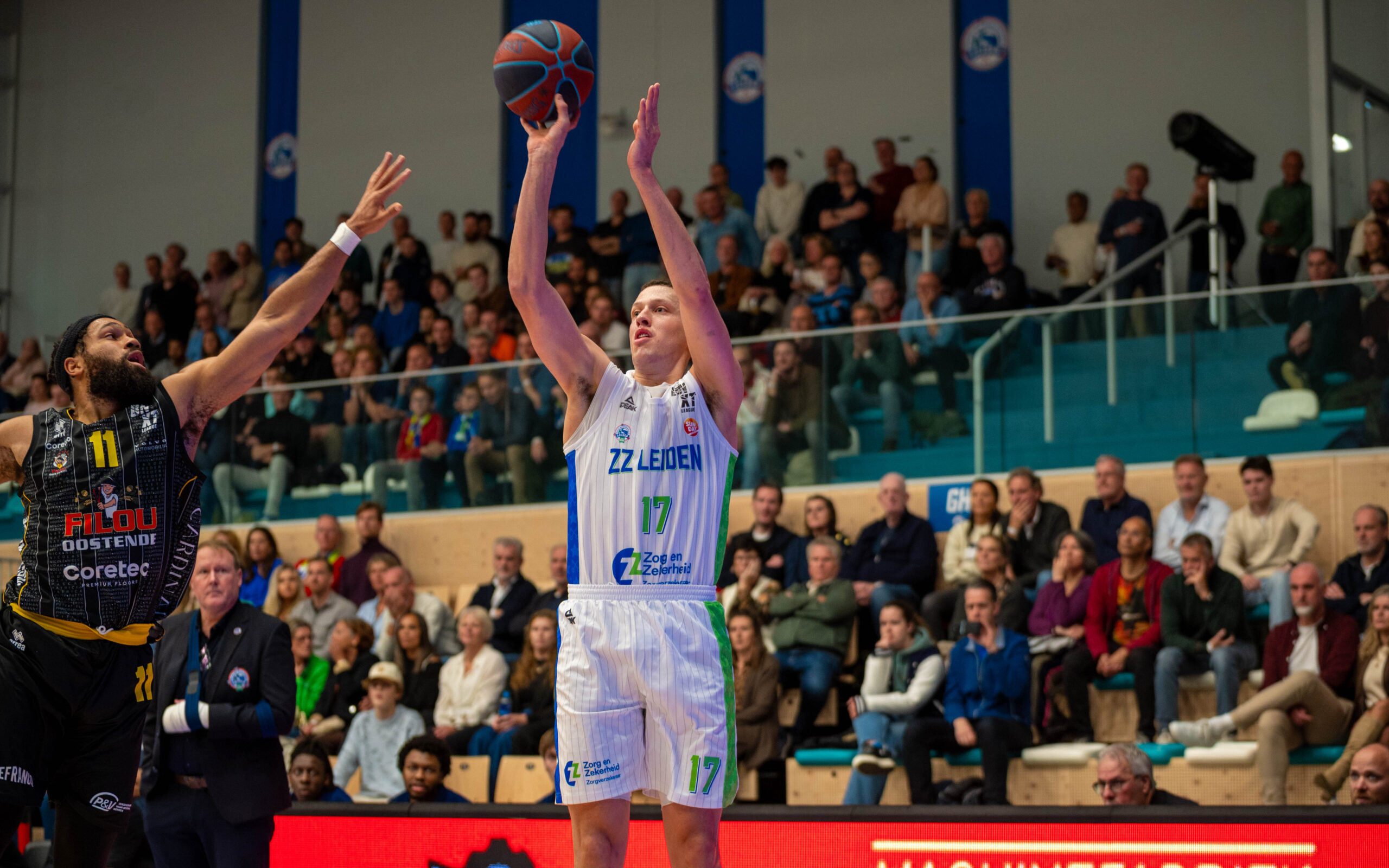 Zorg en Zekerheid Leiden Basketball leek in de eerste helft op een nederlaag tegen Filou Oostende af te stevenen. Halverwege de wedstrijd gaf het scorebord 43-55 aan. In de tweede helft draaide ZZ Leiden de rollen om.