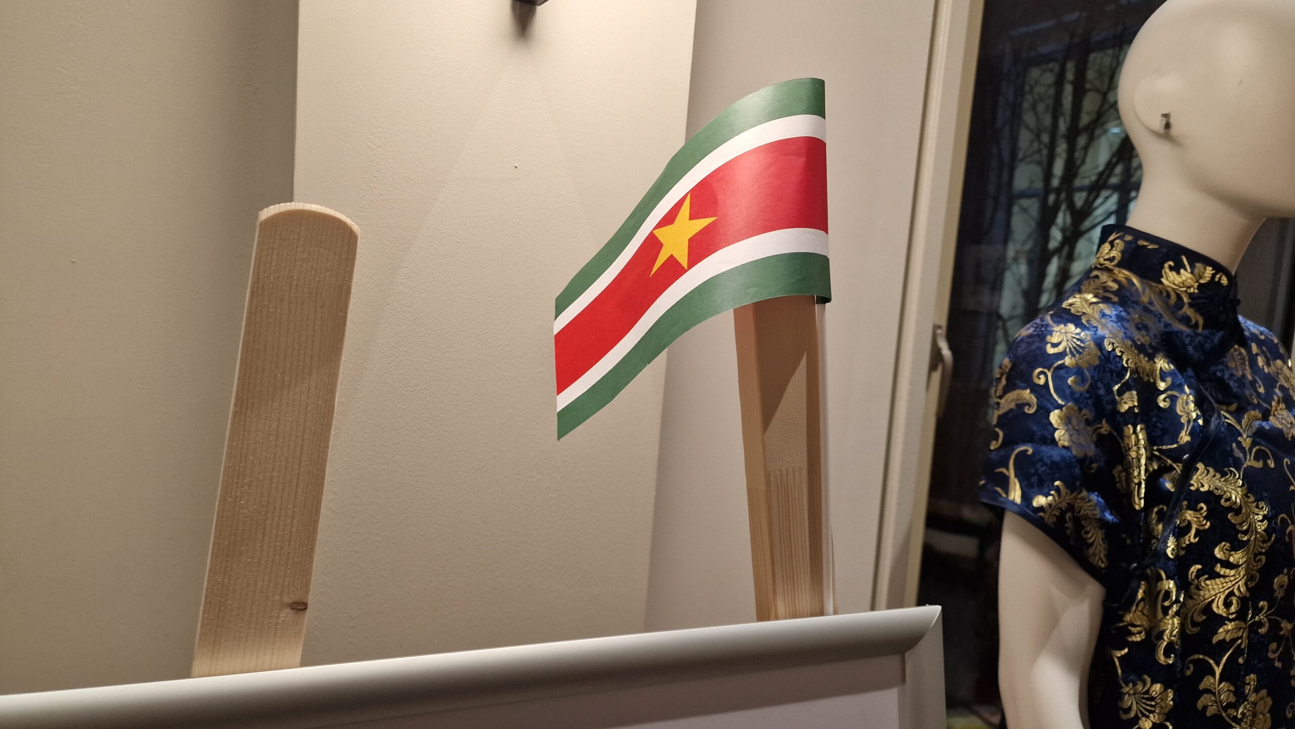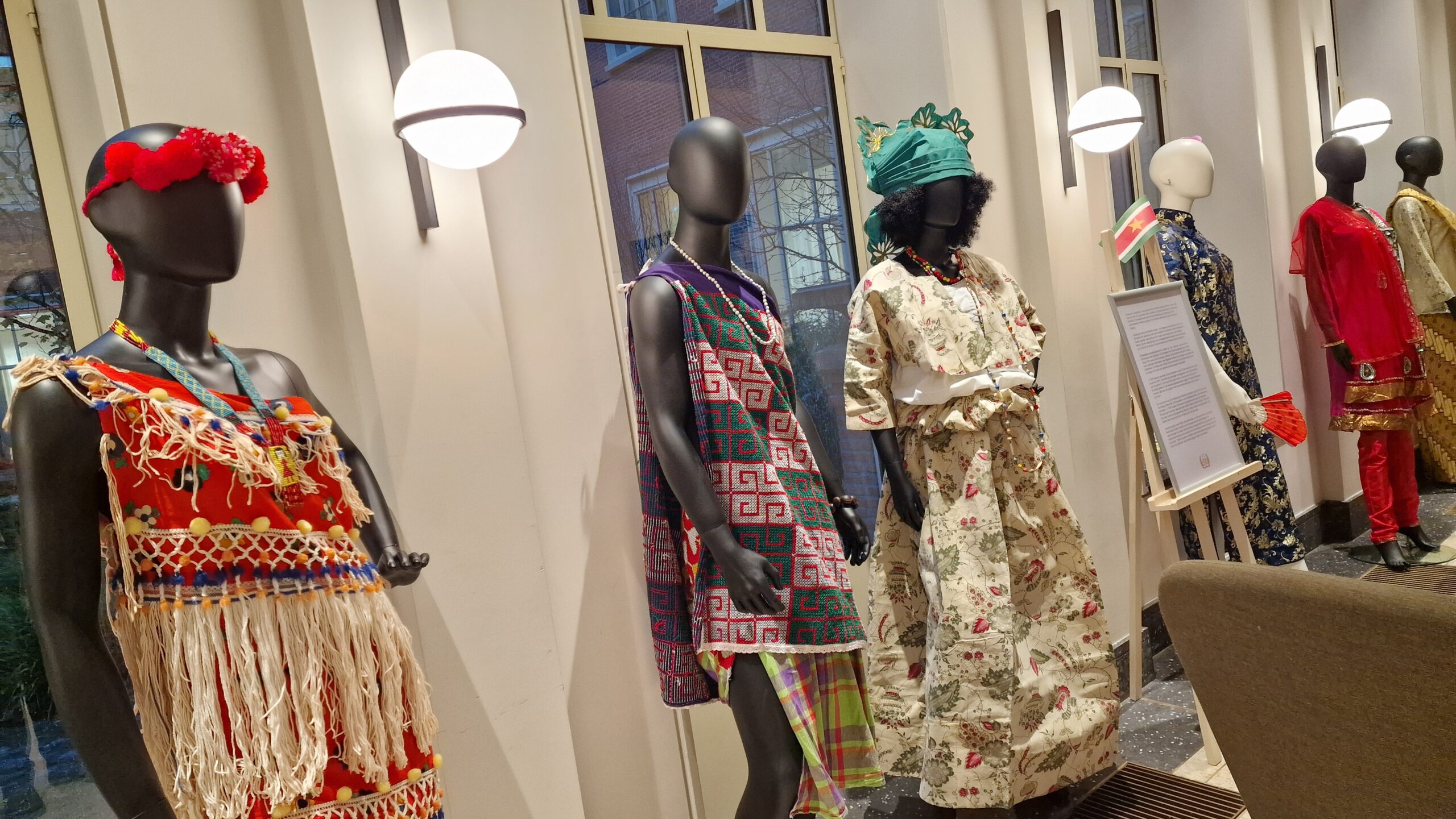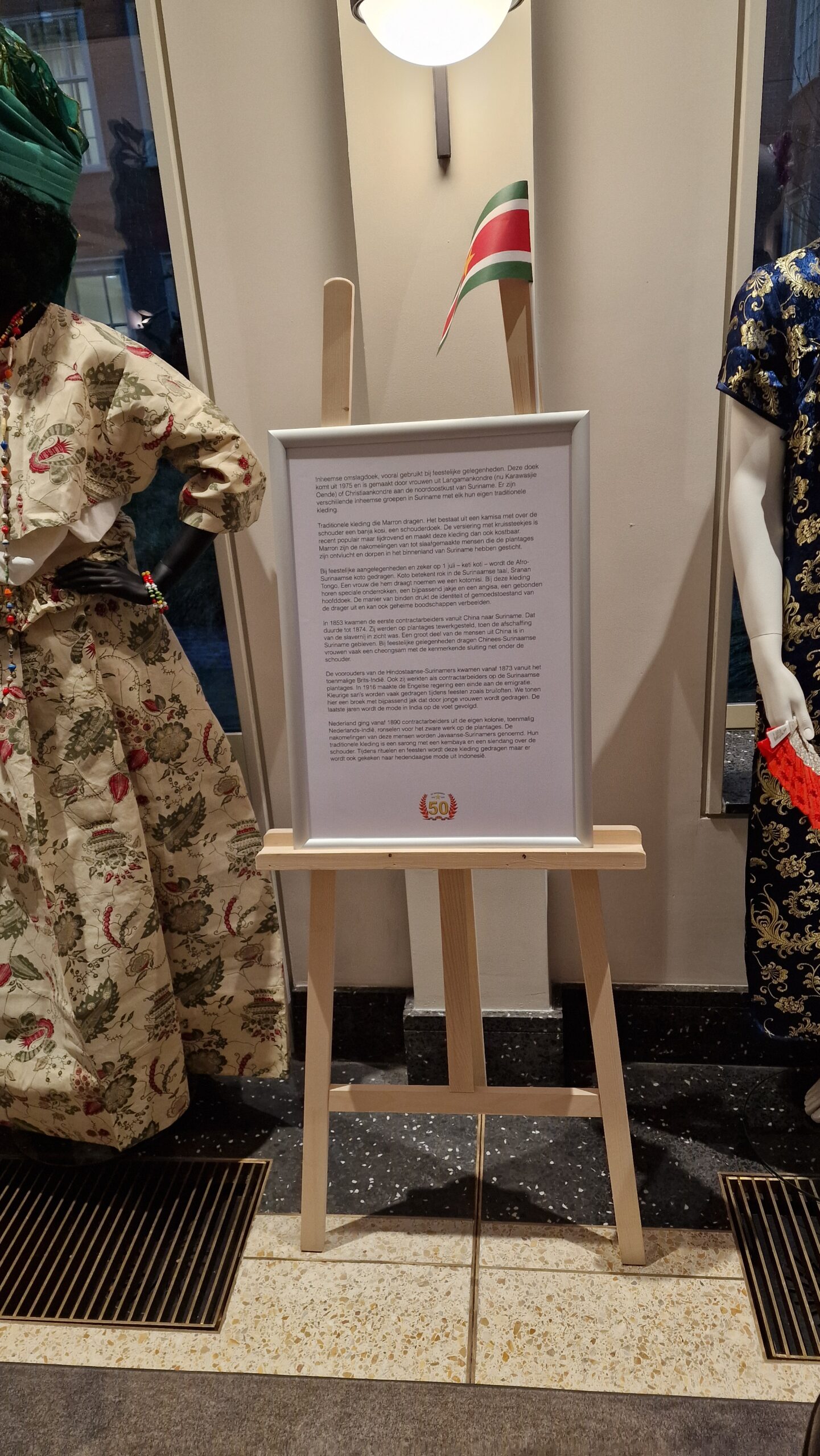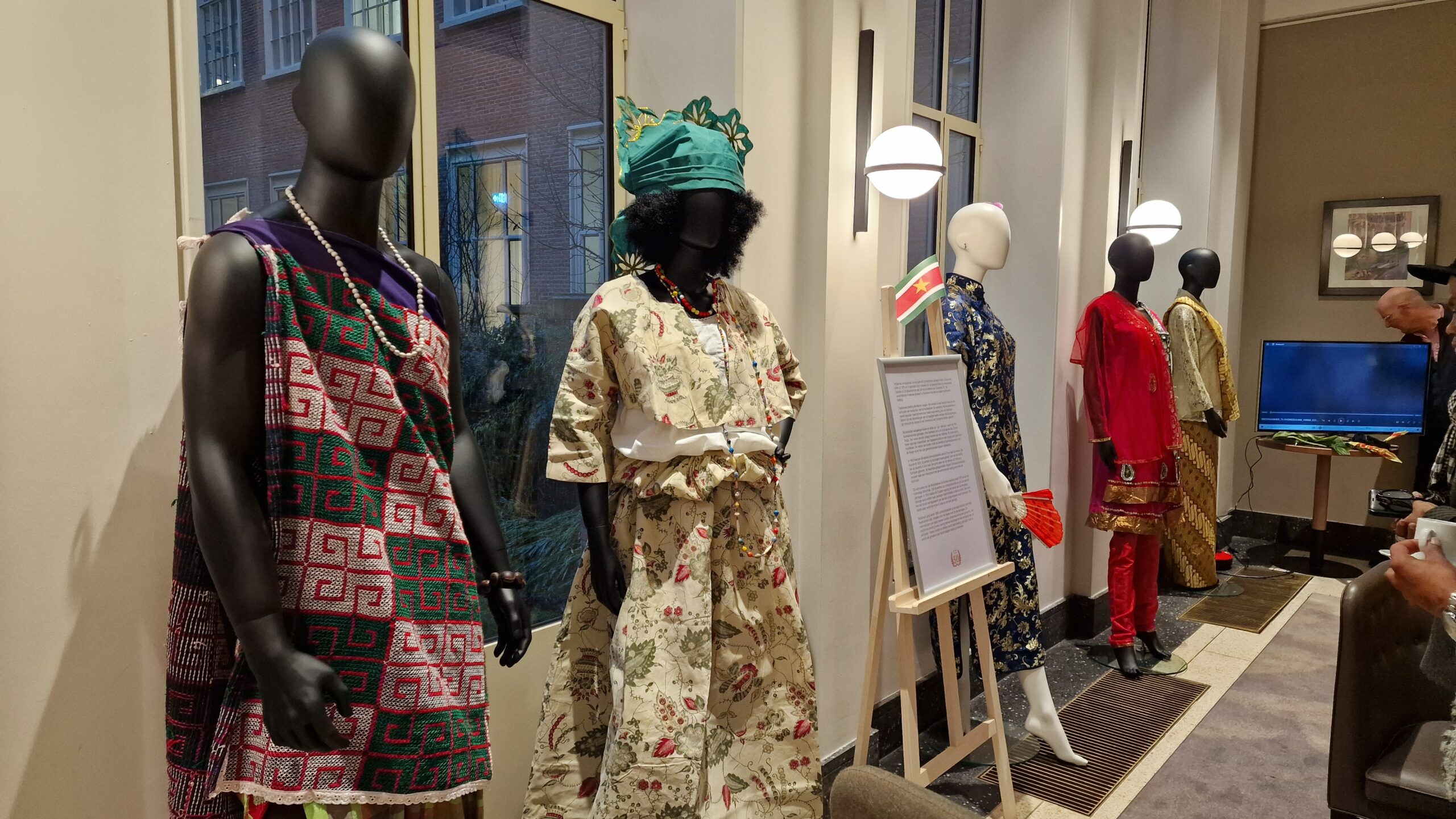 De tentoonstelling combineert de Surinaamse onafhankelijkheid met een Leidse context. Zo wordt er authentieke kleding van alle vijf grote bevolkingsgroepen in Suriname tentoongesteld. Dat zijn de Inheemsen, de Marrons, de Creolen, de Hindoestanen en de Javanen. Ook hangen er meerdere uitgevouwen Angisa met het thema onafhankelijkheid aan de muren. Een Angisa is een Surinaamse hoofddoek.