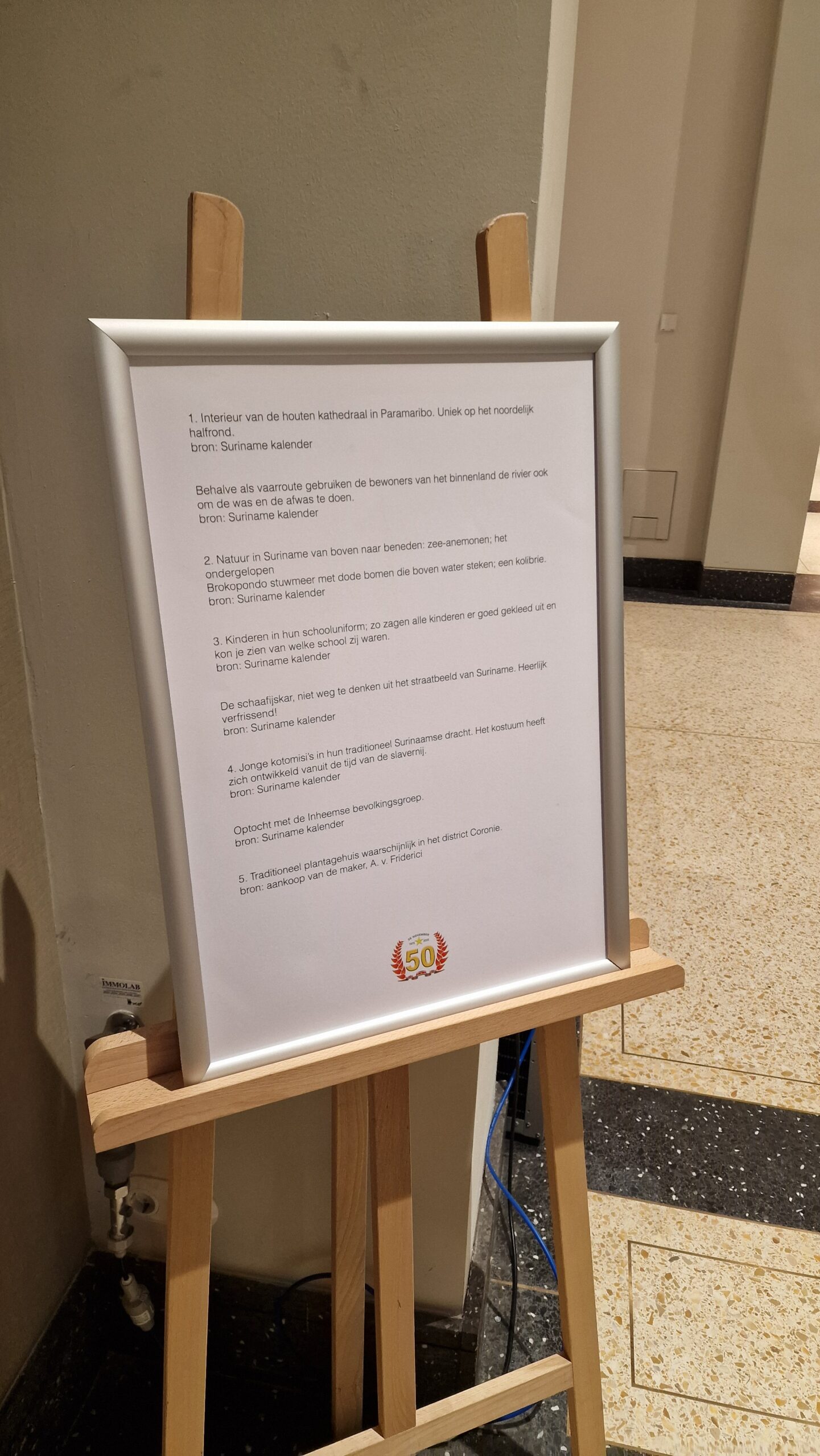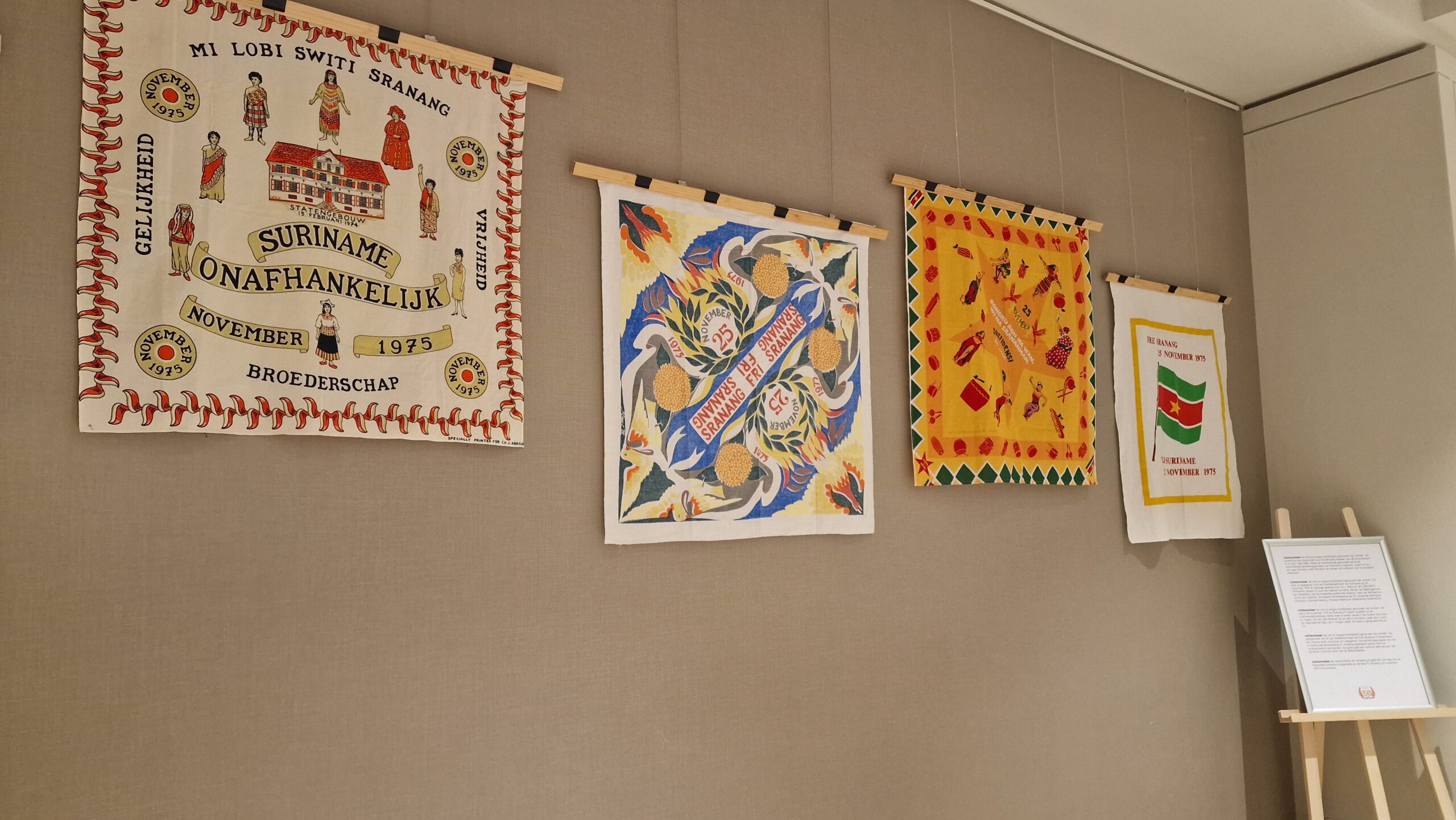 Erfgoed Leiden is in de archieven gedoken en heeft artikelen gevonden in Leidse media over de onafhankelijkheid. Die onafhankelijkheid werd door Surinamers in zowel Suriname zelf als in Nederland gevierd. Een compilatie daarvan is afgedrukt en ook te zien bij de tentoonstelling. Ook hangen er foto’s aan de muren. Verder zijn er ook herinneringen van Leidse Surinamers aan de Onafhankelijkheidsdag opgeschreven en door bezoekers te lezen.