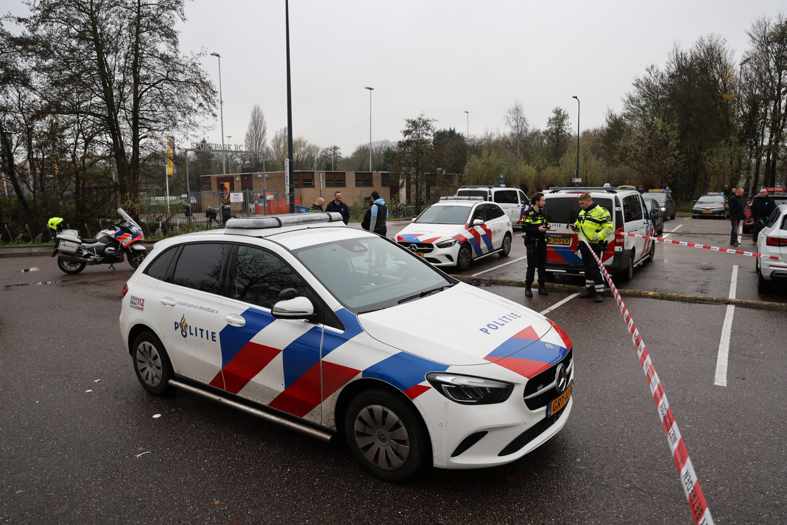 De steekpartij vond plaats op het parkeerterrein bij het CBR aan de Smaragdlaan in Leiden. Een slachtoffer werd in zijn been gestoken. Zijn broek zat onder het bloed.
