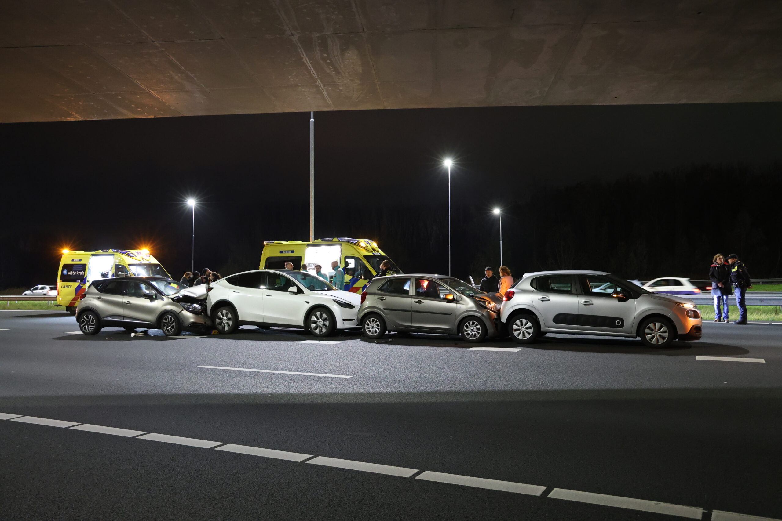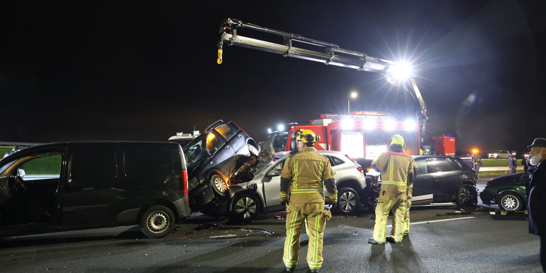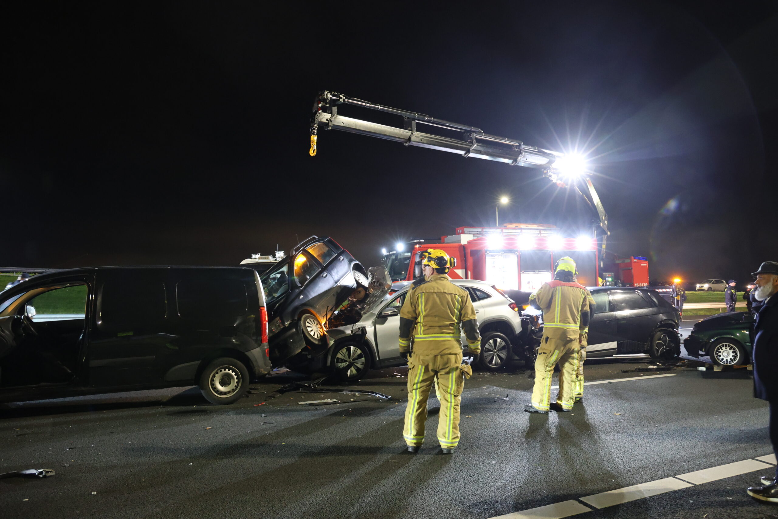 Het ging mis bij twee verschillende kettingbotsingen op de snelweg. Bij de ene botsten vier auto’s achterop elkaar, bij de tweede waren vijf auto’s betrokken. Een ervan kwam bovenop zijn voorganger terecht.