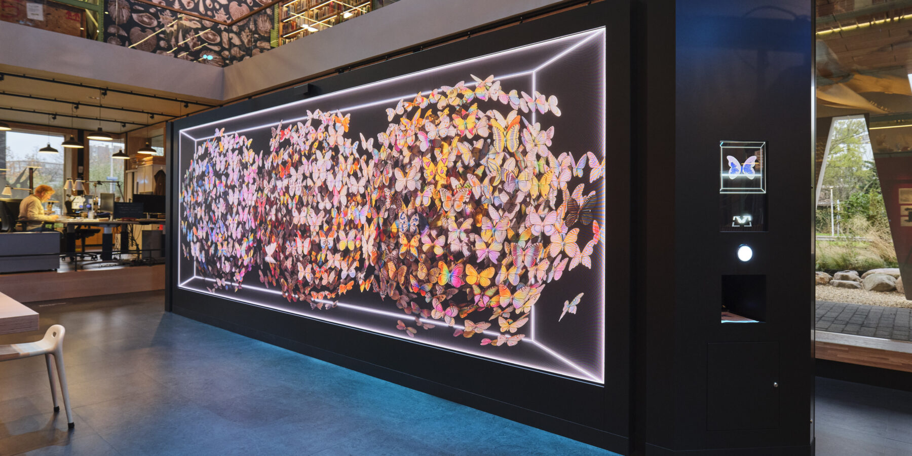 Het kunstwerk is gemaakt door Dominic Harris en is in langdurige bruikleen van de Moveo Art Collection. Bezoekers die een door henzelf gekleurde vlindertekening laten scannen, kunnen zien hoe een AI die verandert in een realistisch uitziende, bewegende vlinder. Alle vlinders samen vliegen in zwermen op een groot scherm.