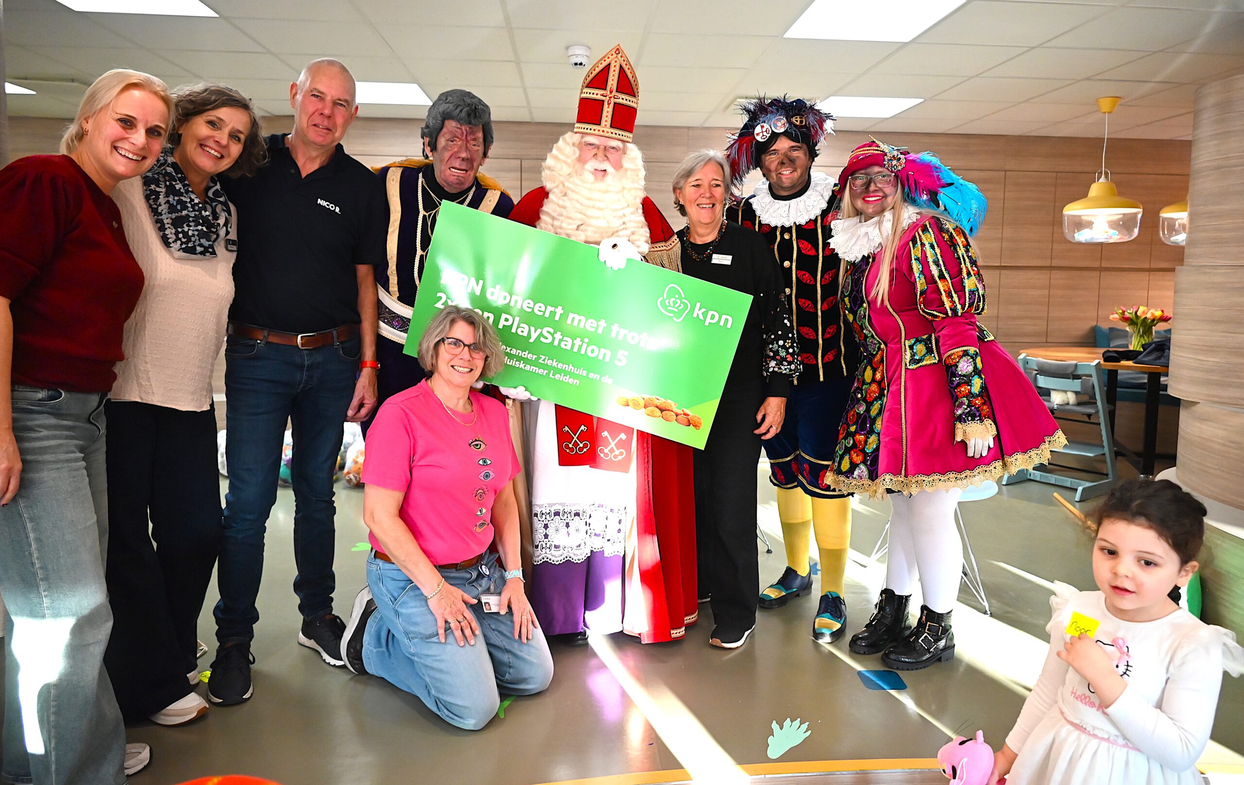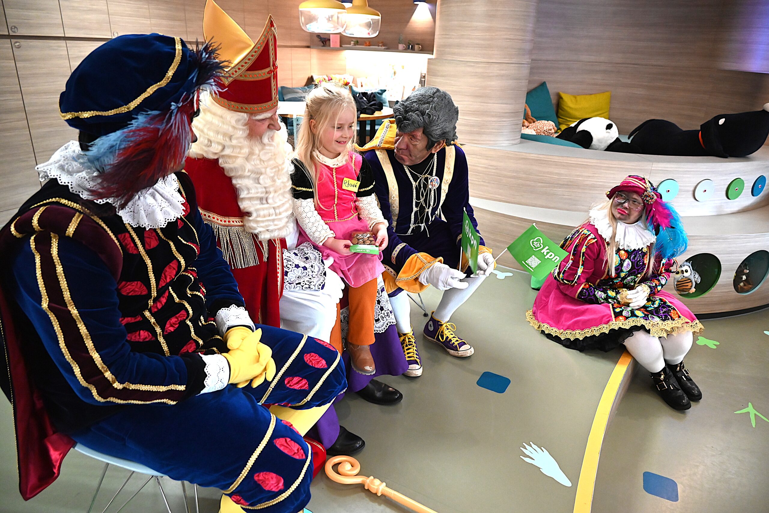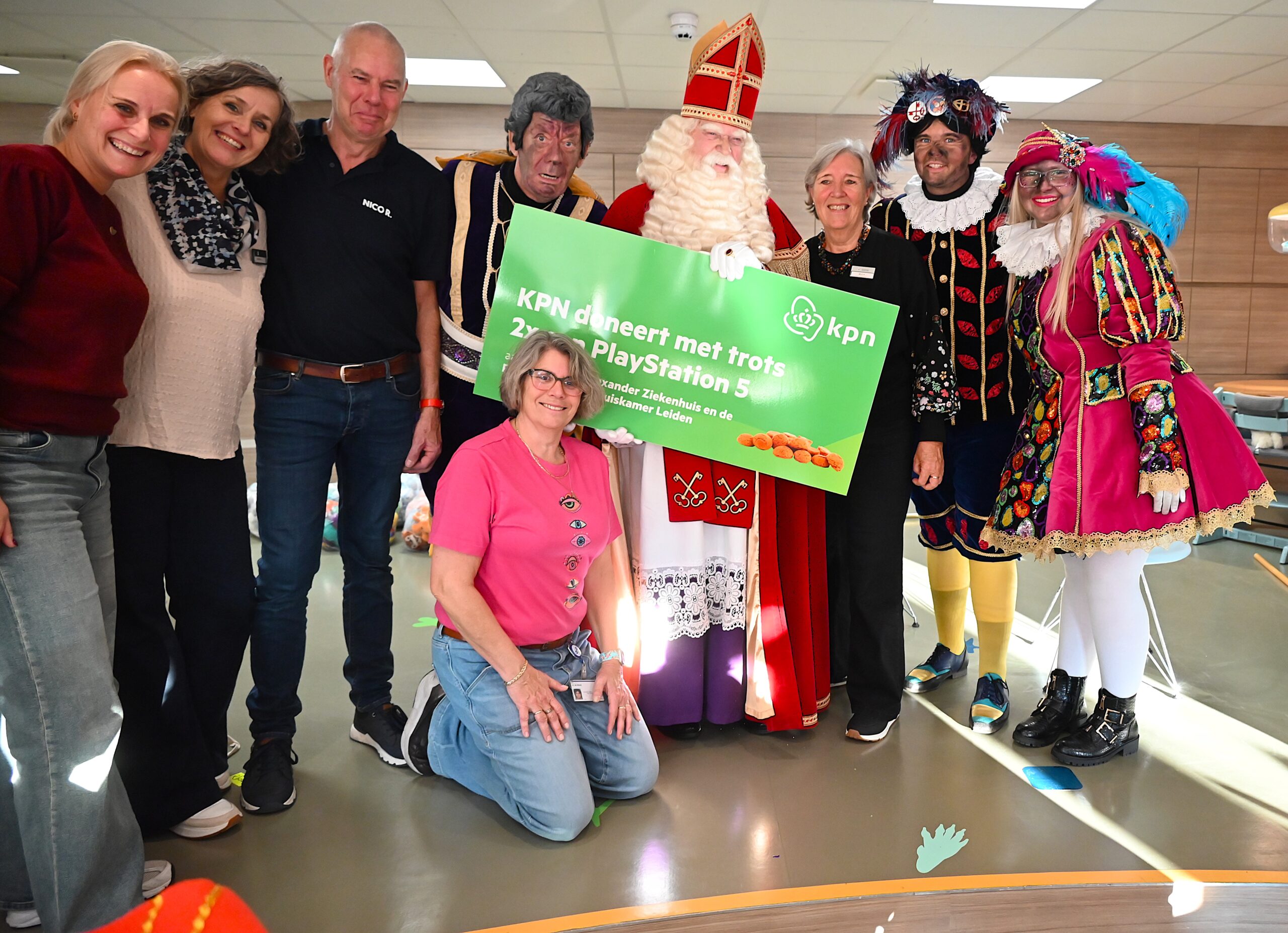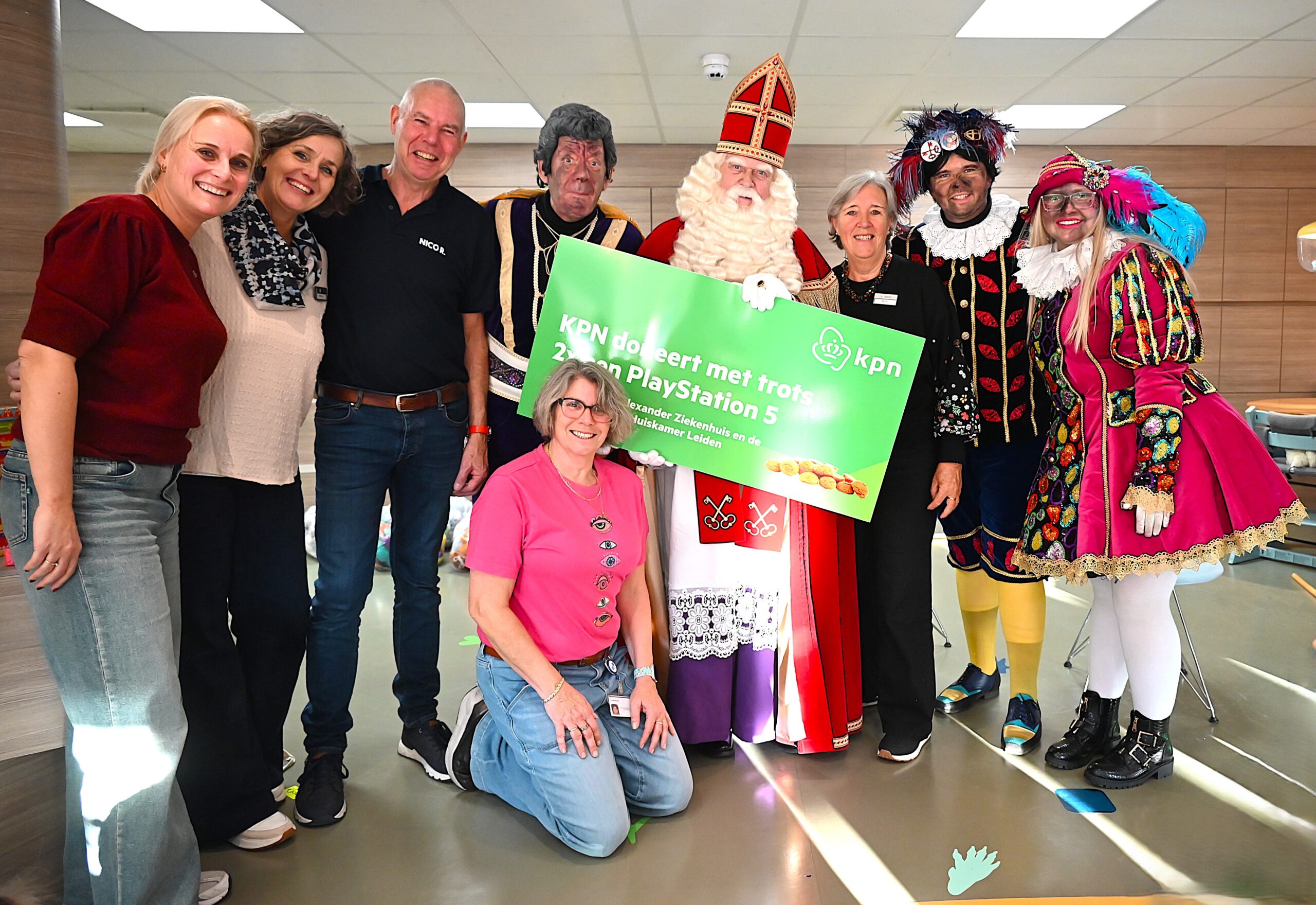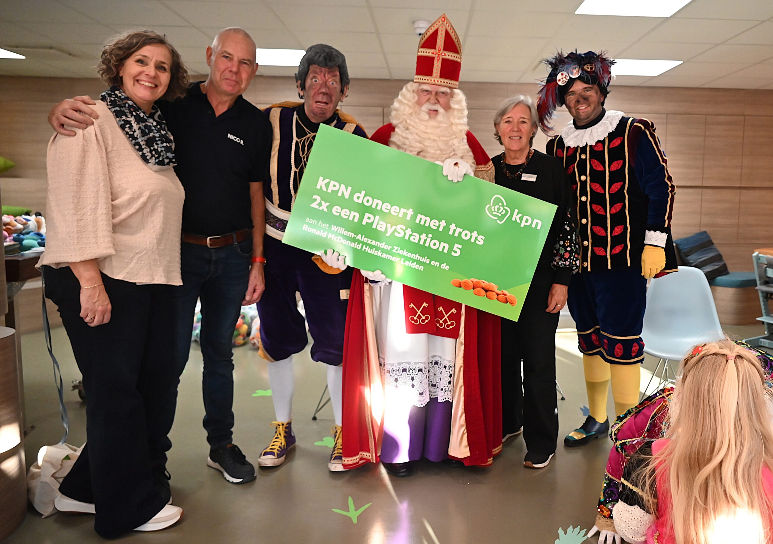 De Sint en zijn pieten kwamen woensdag naar de Ronald McDonald huiskamer in dat ziekenhuis. En ze brachten heel wat cadeautjes mee voor patiëntjes en hun broertjes en zusjes. Bij die cadeautjes kreeg de goedheiligman wat hulp van Nico Rijsbergen, die vaker zogenaamde ‘prikknuffels’ doneert aan het kinderziekenhuis. Ook sponsorde KPN twee Playstations, die gebruikt kunnen worden door de kinderen in het ziekenhuis.