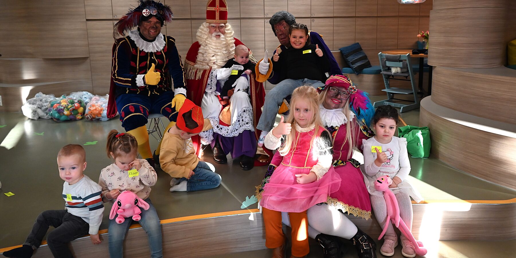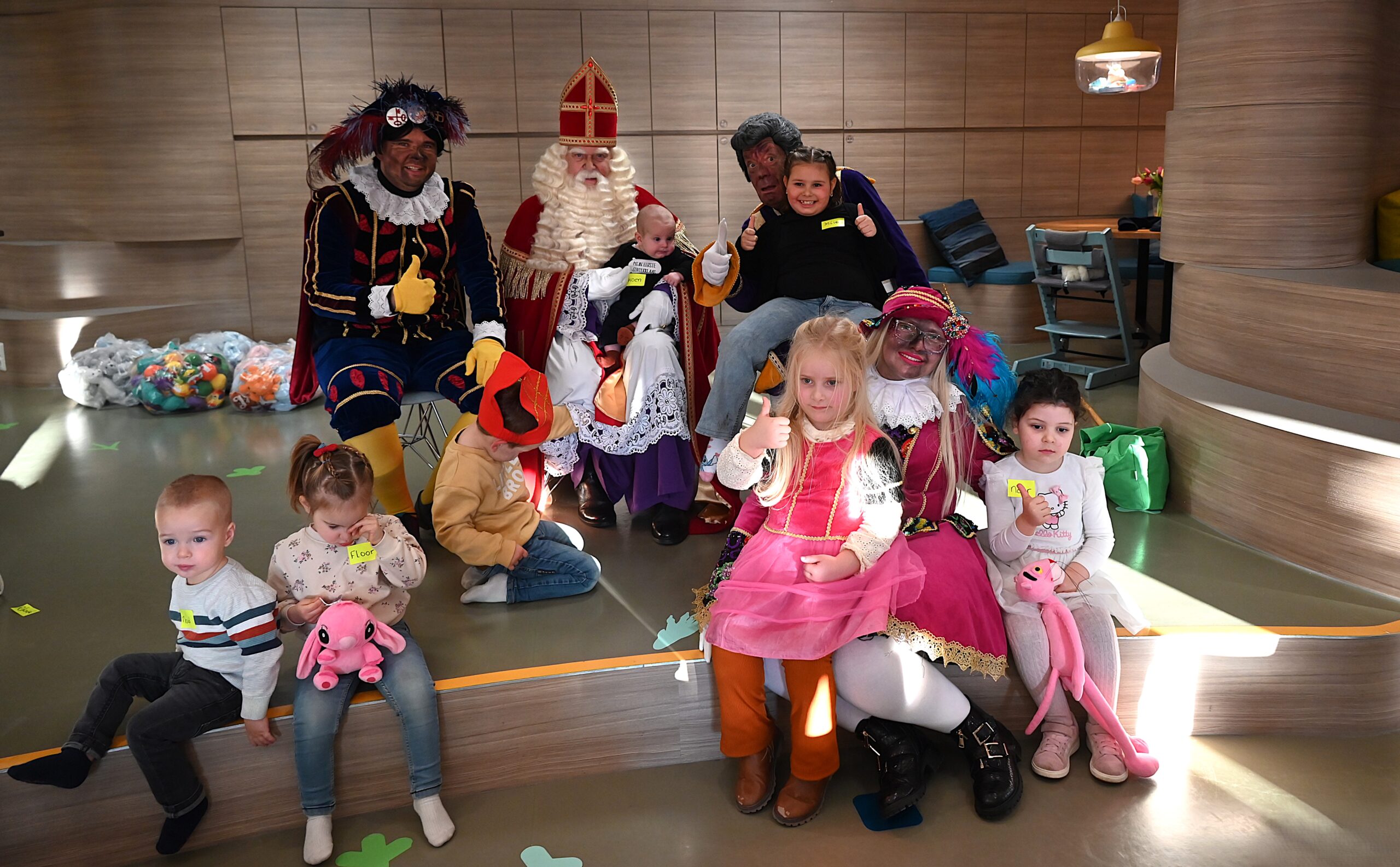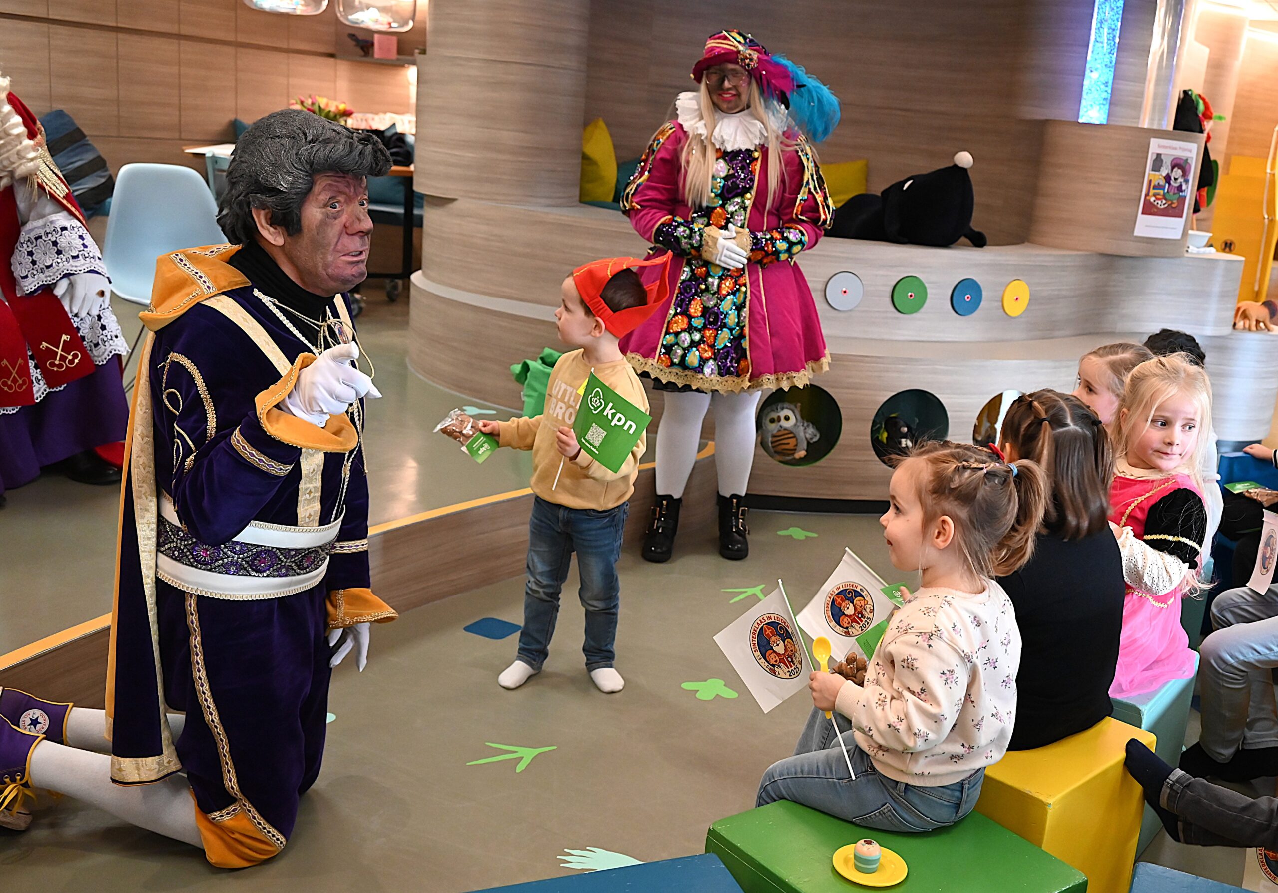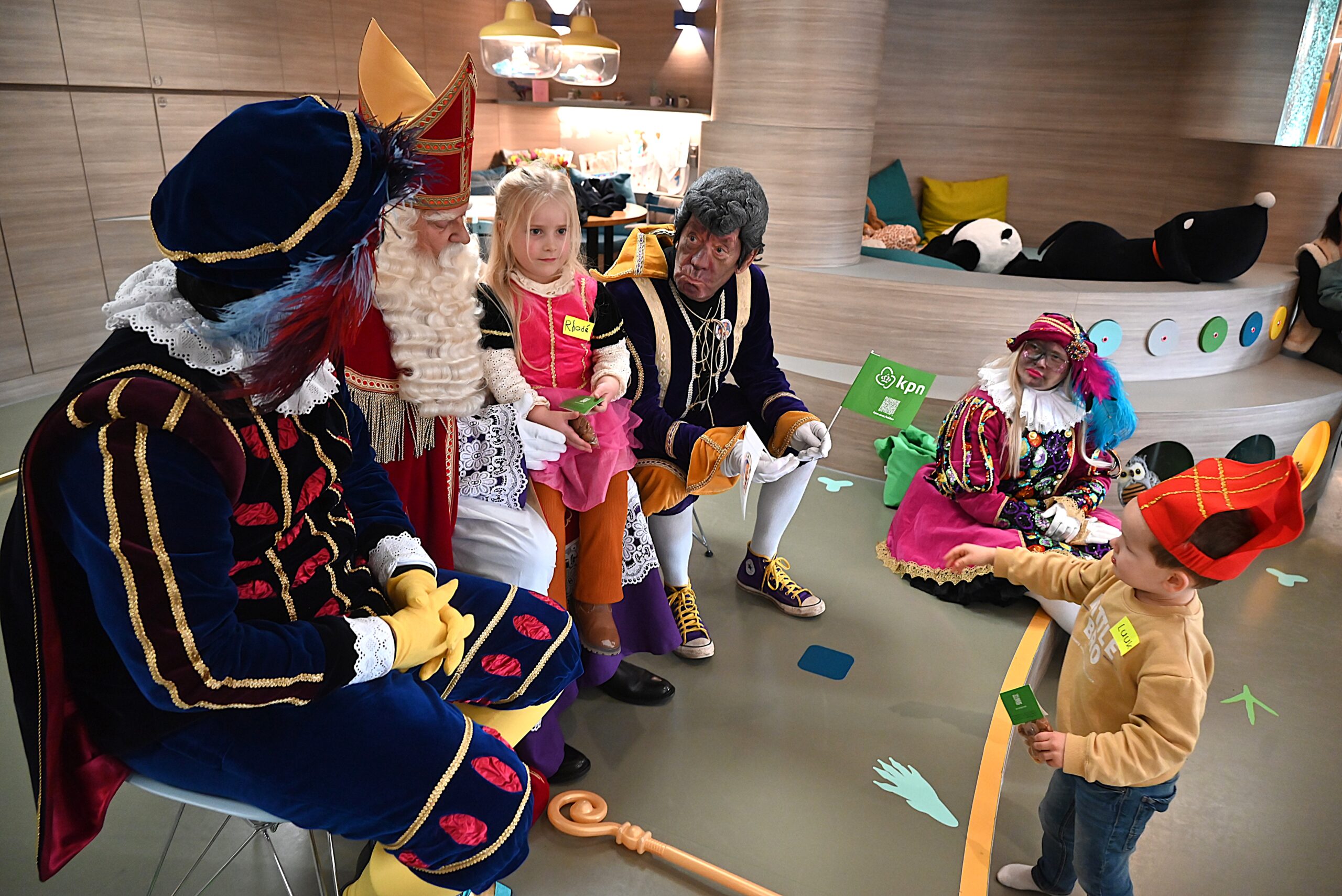 De Sint en zijn pieten kwamen woensdag naar de Ronald McDonald huiskamer in dat ziekenhuis. En ze brachten heel wat cadeautjes mee voor patiëntjes en hun broertjes en zusjes. Bij die cadeautjes kreeg de goedheiligman wat hulp van Nico Rijsbergen, die vaker zogenaamde ‘prikknuffels’ doneert aan het kinderziekenhuis. Ook sponsorde KPN twee Playstations, die gebruikt kunnen worden door de kinderen in het ziekenhuis.