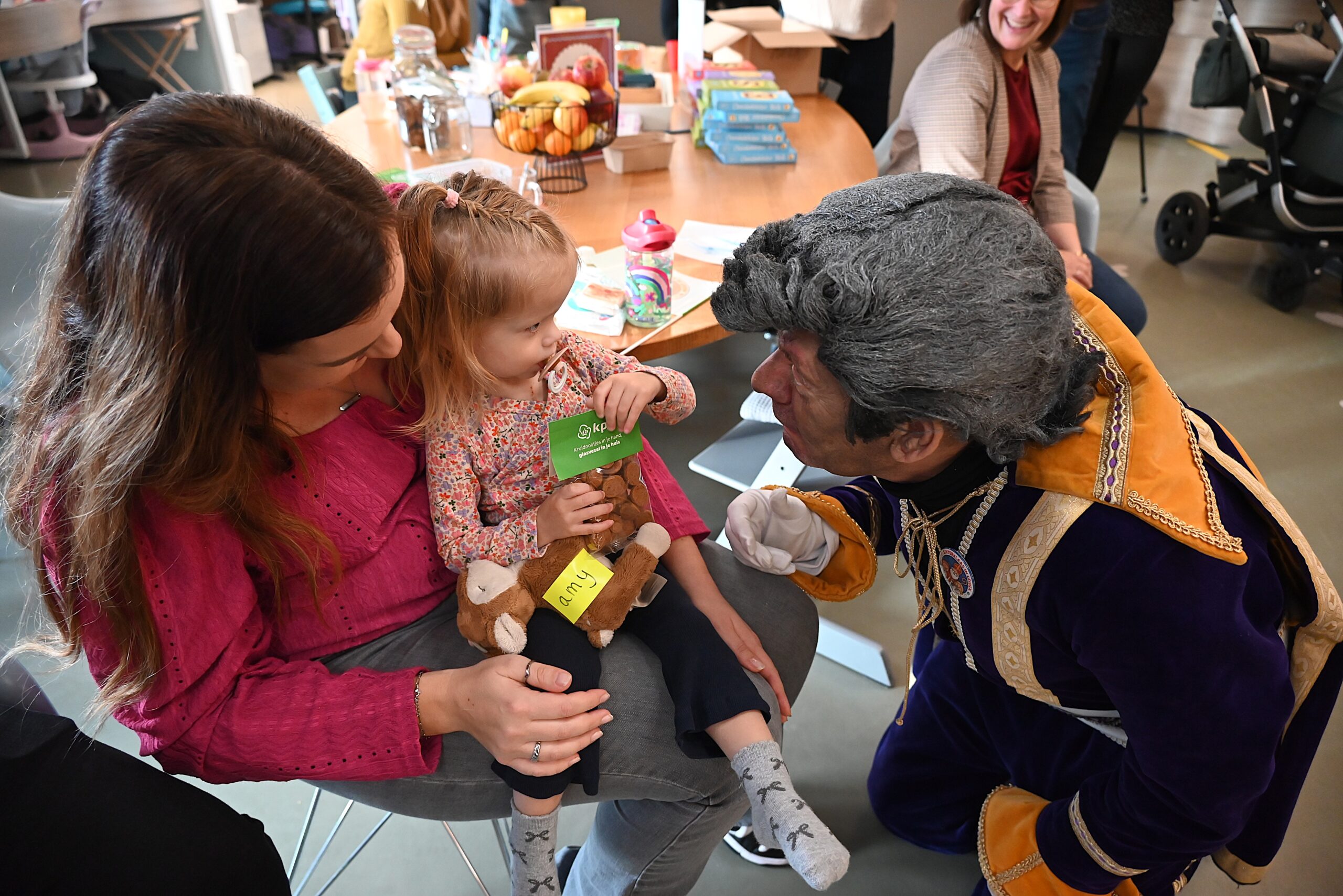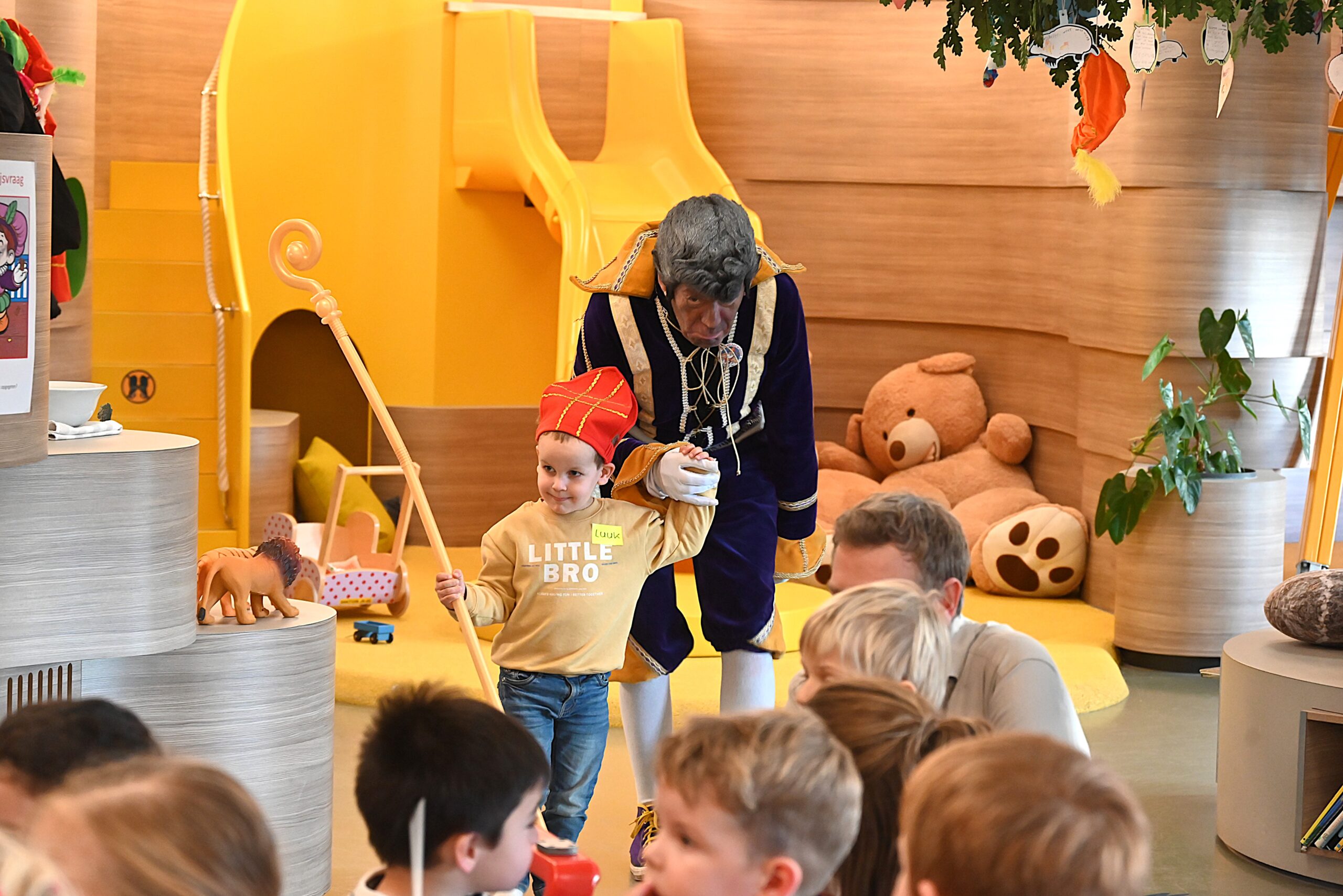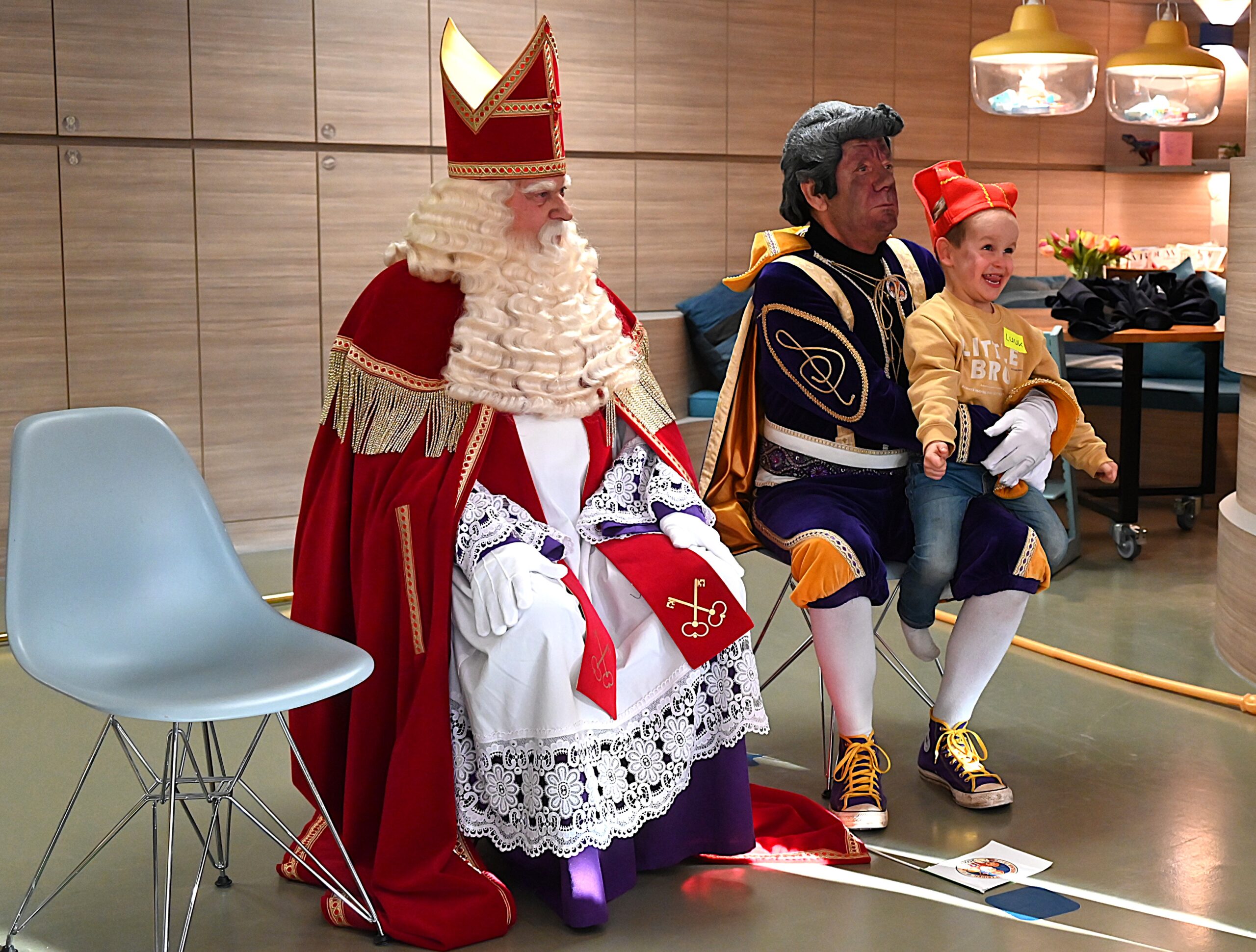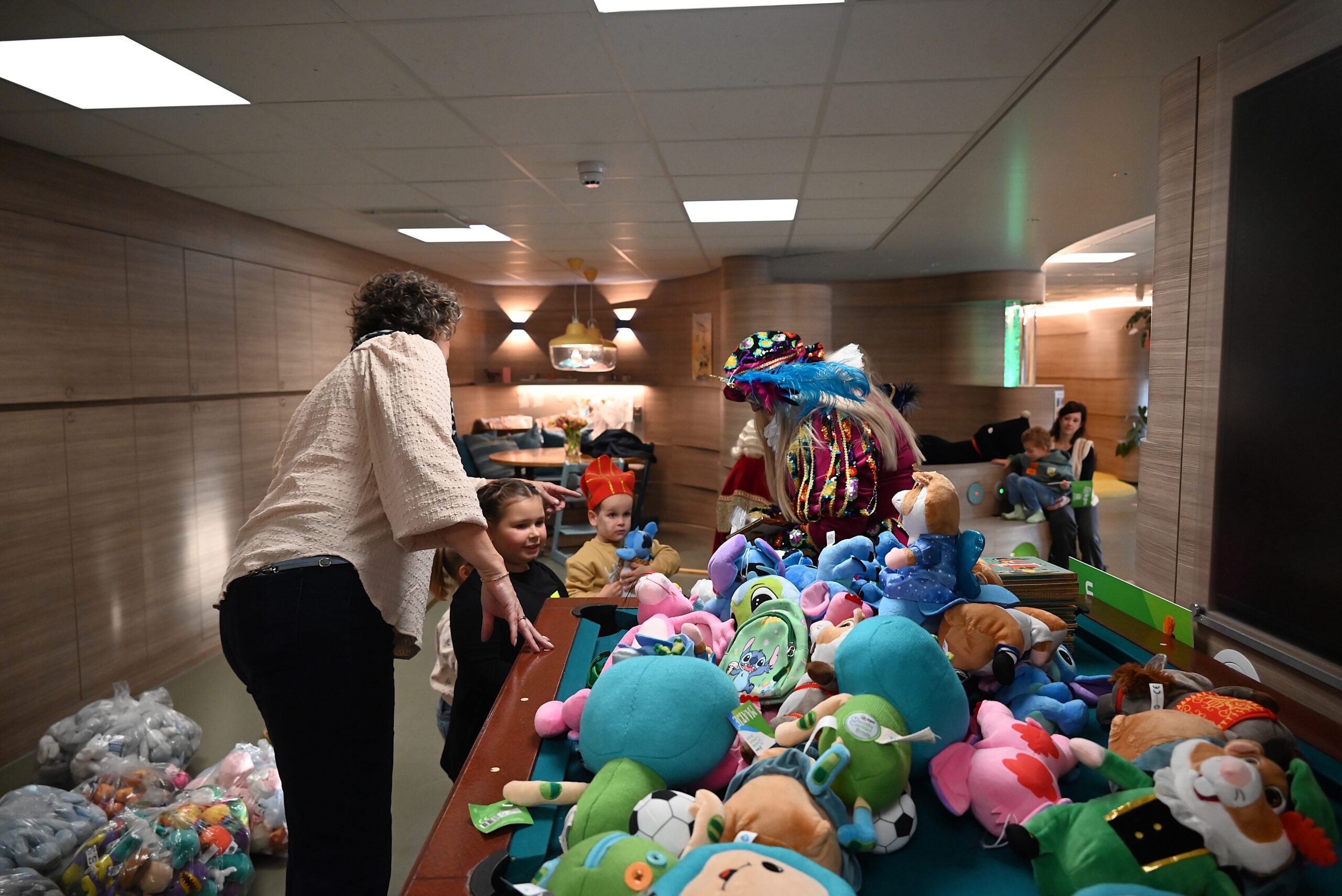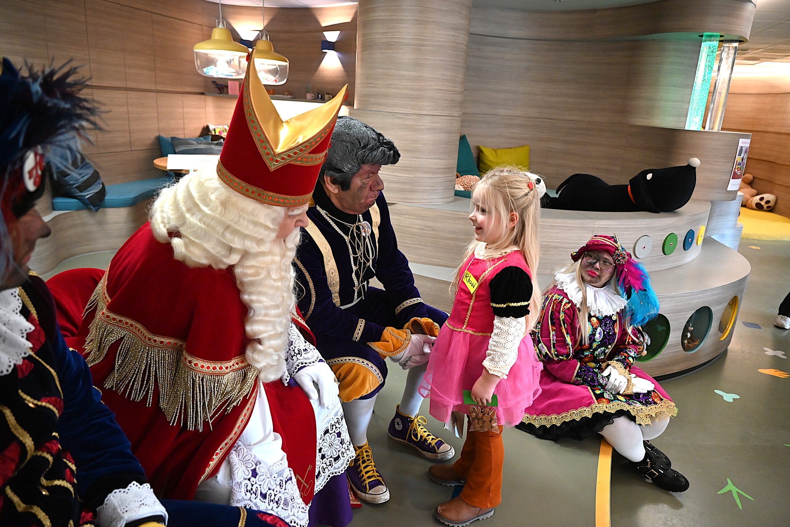 De Sint en zijn pieten kwamen woensdag naar de Ronald McDonald huiskamer in dat ziekenhuis. En ze brachten heel wat cadeautjes mee voor patiëntjes en hun broertjes en zusjes. Bij die cadeautjes kreeg de goedheiligman wat hulp van Nico Rijsbergen, die vaker zogenaamde ‘prikknuffels’ doneert aan het kinderziekenhuis. Ook sponsorde KPN twee Playstations, die gebruikt kunnen worden door de kinderen in het ziekenhuis.